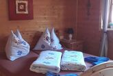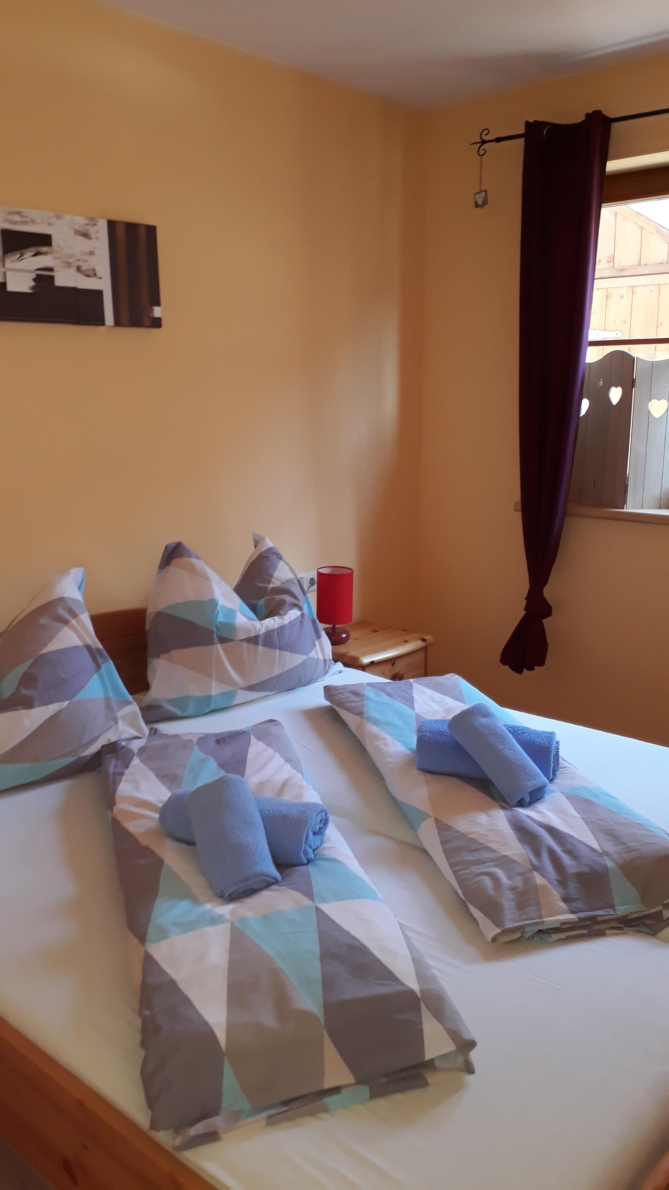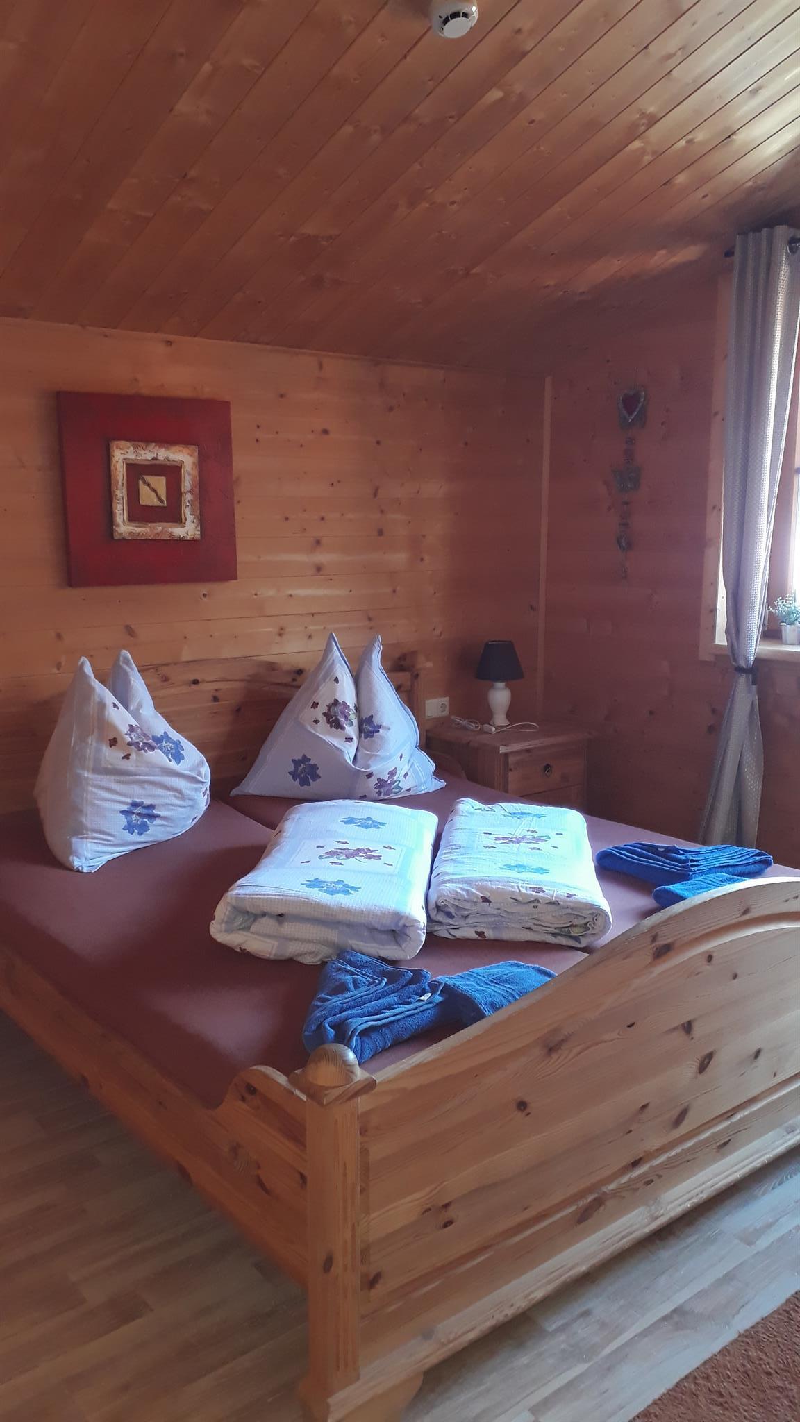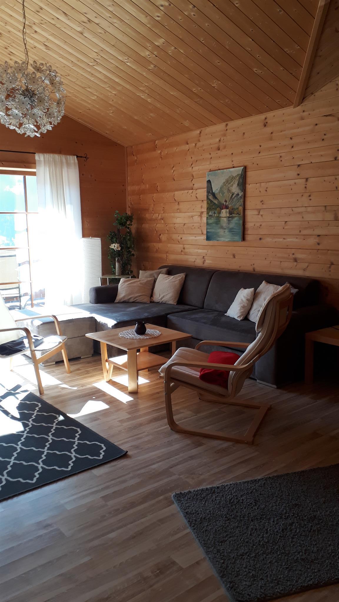 In gemütlicher Holzhausatmosphäre gelegene geräumige Ferienwohnung (95 m²) mit 3 Schlafzimmer, Duschbad mit WC, Gästetoilette, großer Wohn/Essbereich mit vollständig eingerichteter Einbauküche, Liegewiese, TV, Internetanschluß, 3 Balkone.