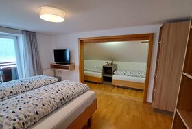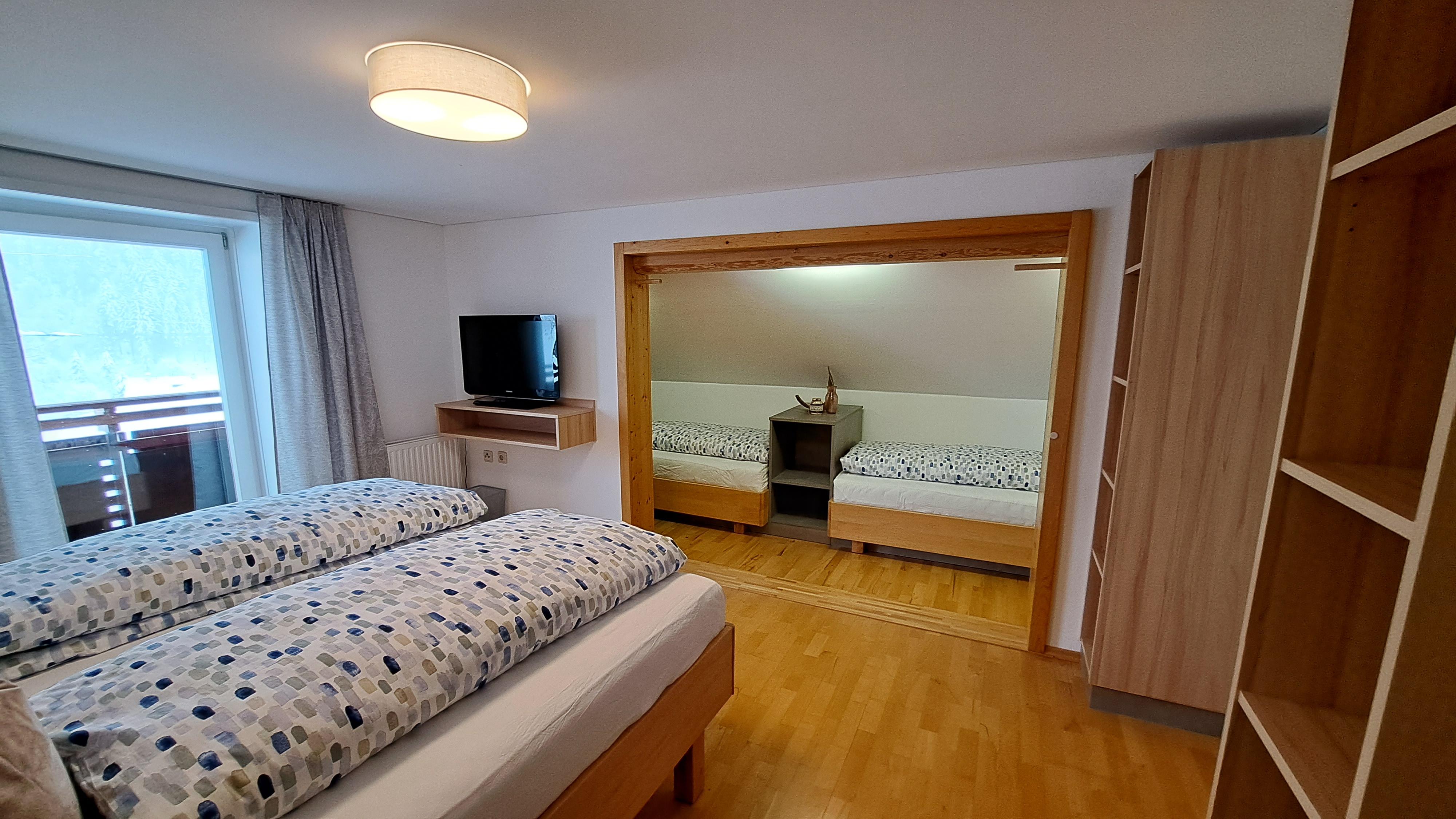 Es erwartet Sie eine neu renovierte ca. 80 m² große Wohnung mit voll ausgestatteter Küche mit Ess- und Wohnraum für das gemütliche Zusammensein, 1 x Doppelschlafzimmer, 1 x Doppelschlafzimmer plus 2 zusätzliche Einzelbetten, für Erwachsene geeignet (90x200), großem südseitigem Balkon, Badezimmer mit Dusche/WC, SAT-TV, gratis WLAN. Bei uns besteht die Möglichkeit, alle Betten auch als Einzelbetten zu benützen. Absperrbare Ski- sowie Fahrrad-Abstellmöglichkeit vorhanden.