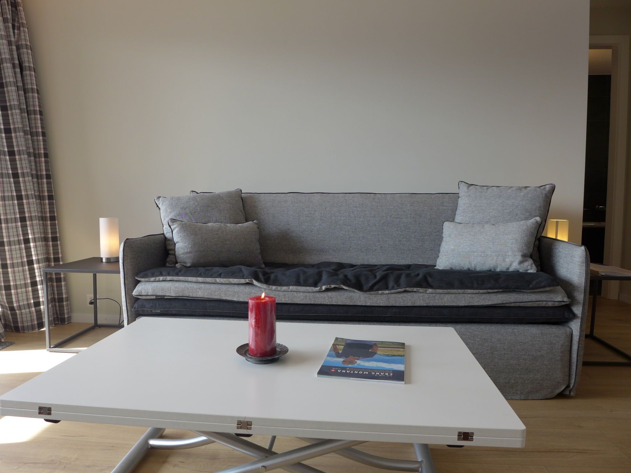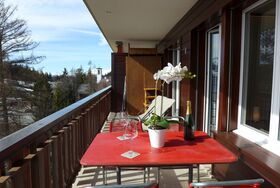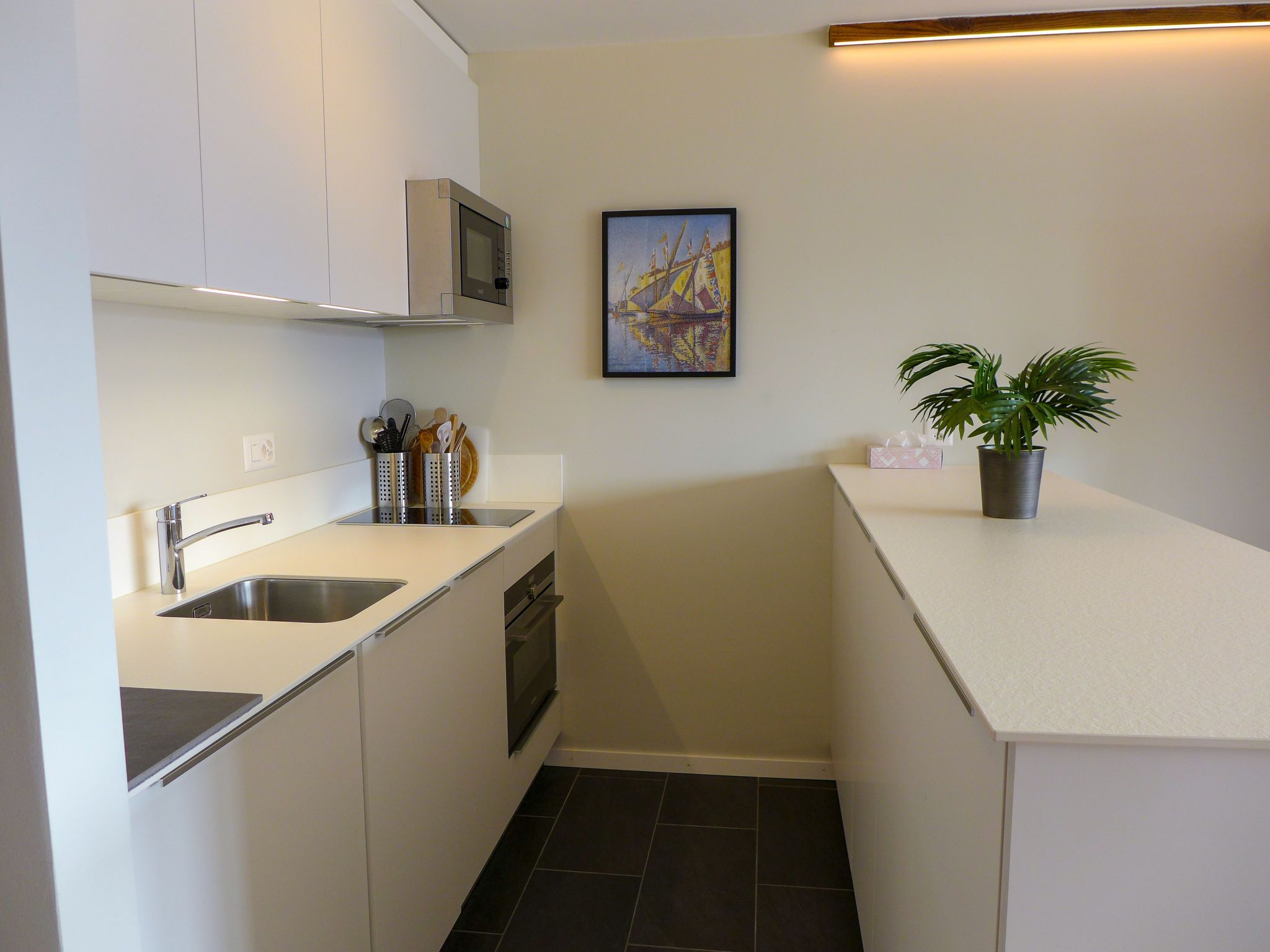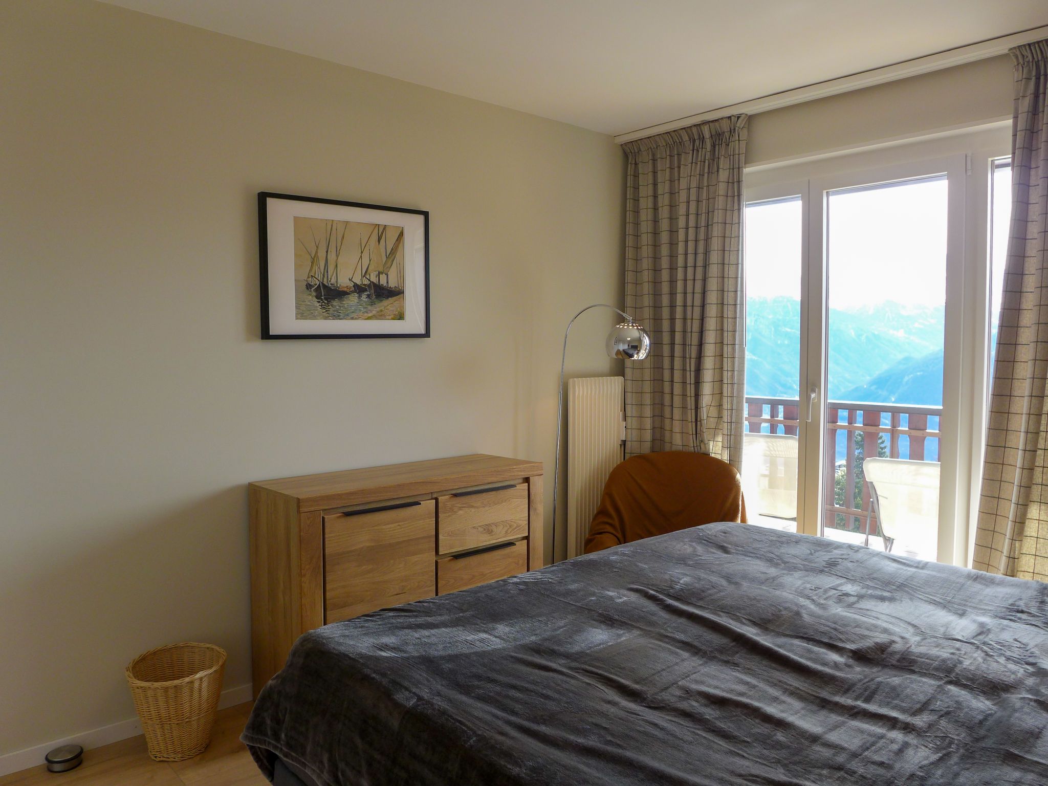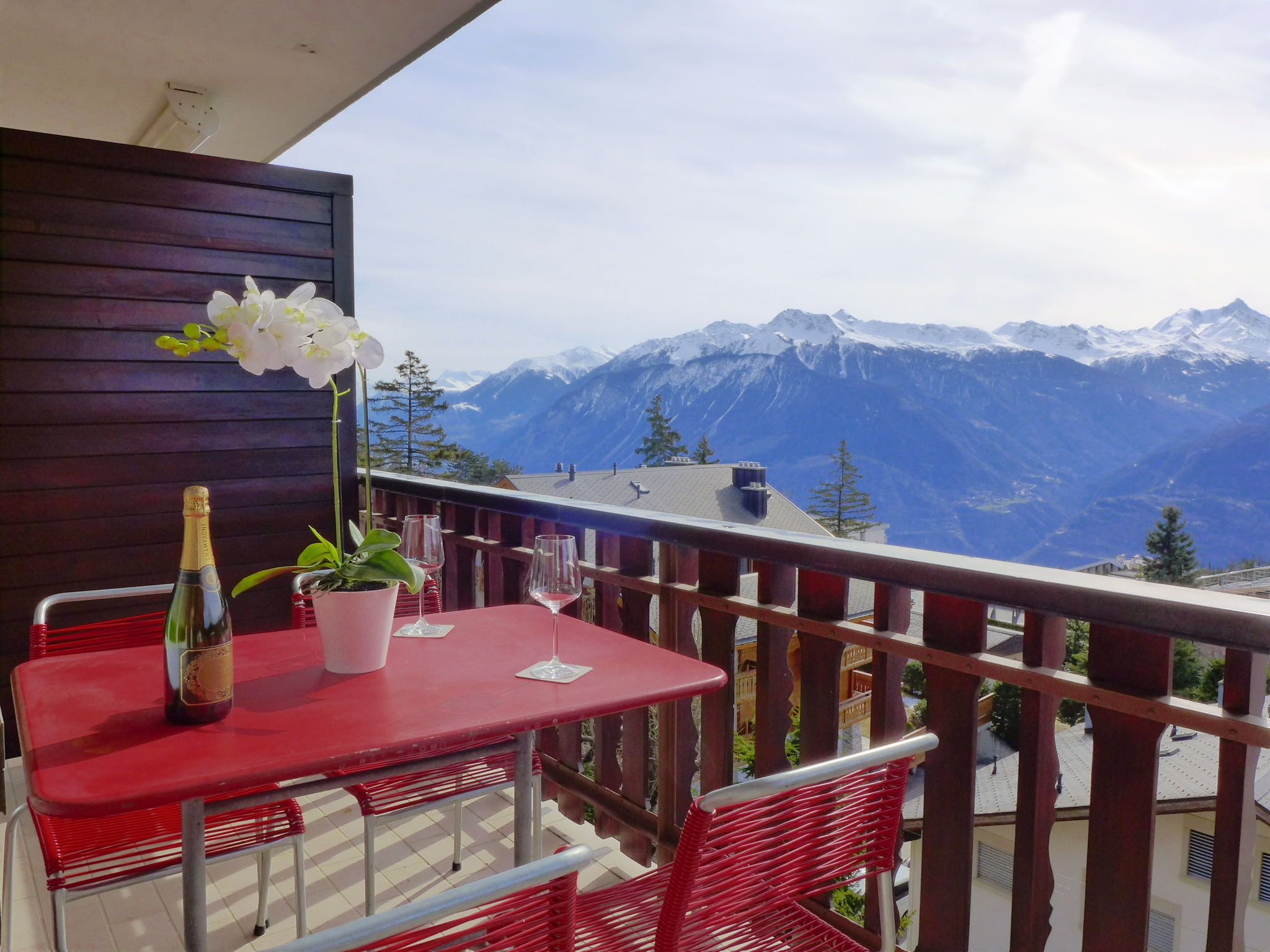 Elysée 29, 2-Zimmer-Wohnung 45 m2 im 1. Stock. Vollständig renoviert im Jahre 2023, komfortabel und schön eingerichtet: Wohn-/Esszimmer mit Kabel-TV. Ausgang zum Balkon. 1 Zimmer mit 1 franz. Bett (180 cm, Länge 200 cm). Ausgang zum Balkon. Offene Küche (Backofen, Geschirrspüler, 2 Glaskeramikplatten, Toaster, Wasserkocher, Mikrowelle, elektrische Kaffeemaschine, Kapseln für die Kaffeemaschine (Nespresso) extra, Racletteofen, Fondue Set (Chinoise, Käse)). Bad/WC. Grosser Balkon, Südlage. Balkonmöbel. Sehr schöne Sicht auf die Berge und die Landschaft. Zur Verfügung: Haartrockner. Internet (Wireless LAN). Bitte beachten: Nichtraucher-Unterkunft.