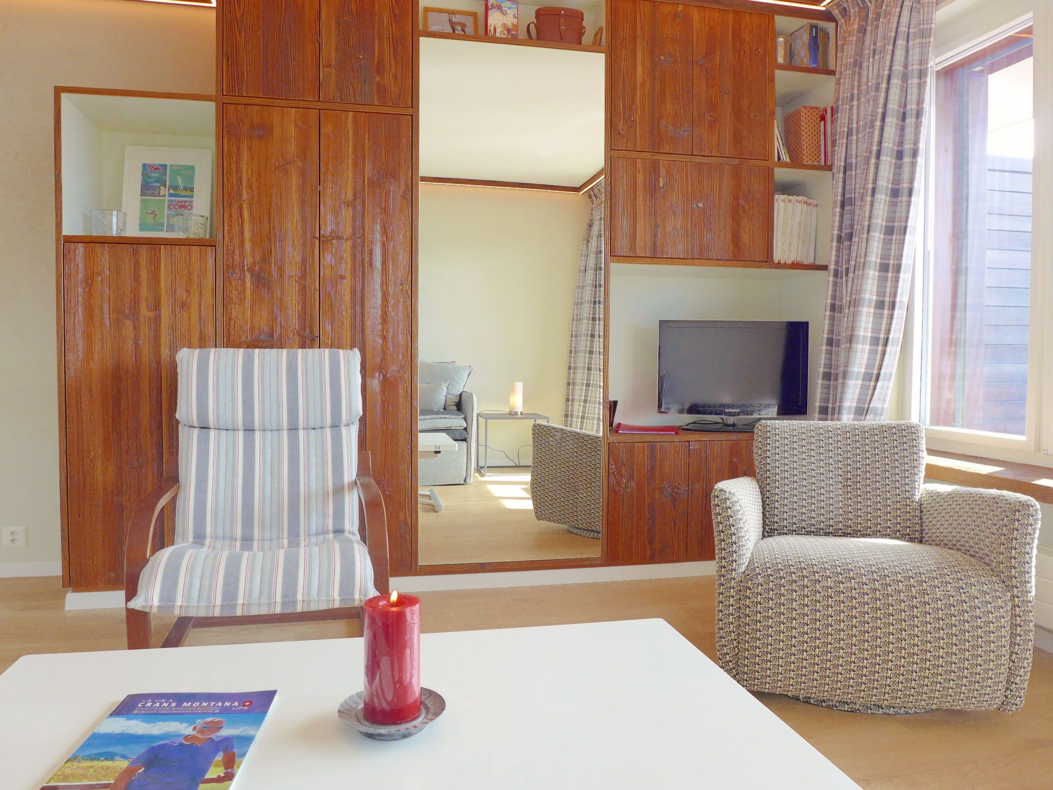 Residenz Elysée. Im Ortsteil Arolles, 200 m vom Zentrum von Montana, ruhige Lage, 200 m vom Waldrand. Im Hause: Fahrstuhl, Skiraum, Zentralheizung. Parkplatz (beschränkte Anzahl) beim Haus. Einkaufsgeschäft, Lebensmittelgeschäft, Bar, Bäckerei, Café, Bushaltestelle Ycoor 200 m. Skisportanlagen 300 m, Skiverleih, Eisfeld 200 m. Bekannte Seen in der Umgebung sind gut erreichbar: Lac Ycoor 300 m, Lac Grenon 600 m, Lac Moubra 1.4 km.