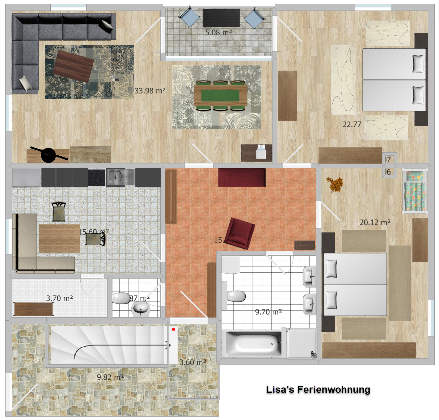 Lisa's Ferienwohnung - Wohnung 125qm für max. 4 Pers. mit zwei Schlafzimmern
