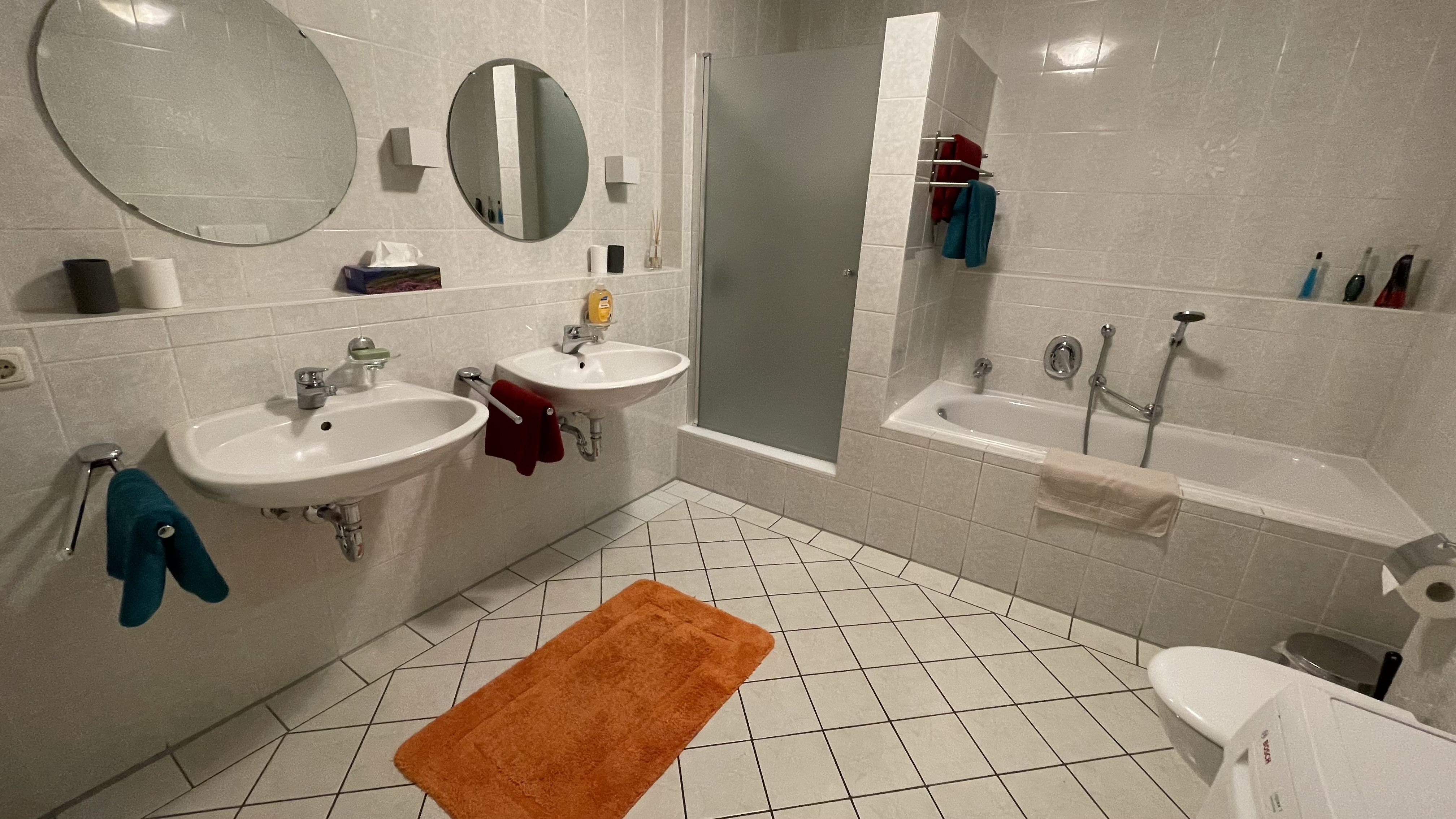 Weiterhin gibt es ein großes Bad mit Dusche und Wanne, sowie ein separates Gäste-WC.