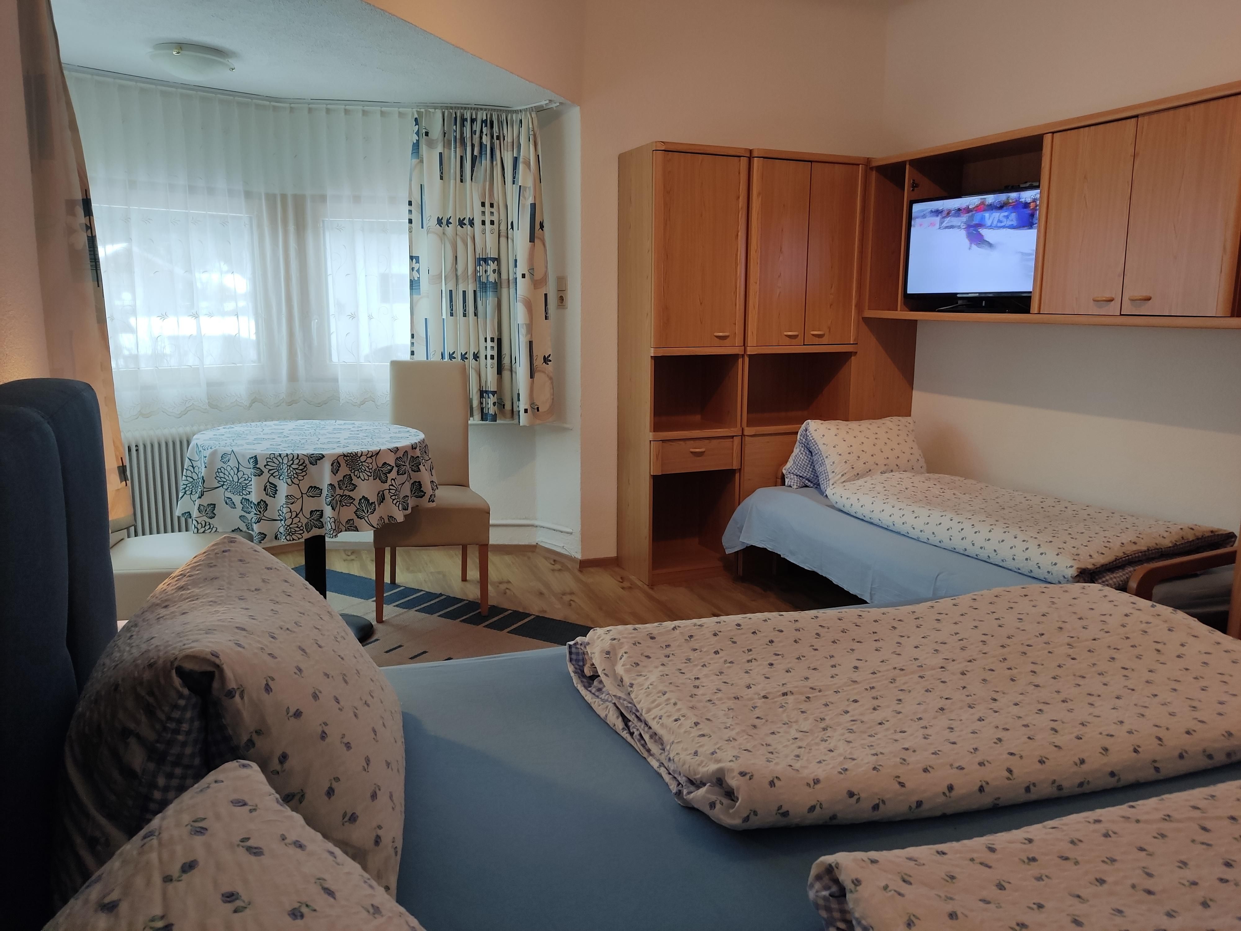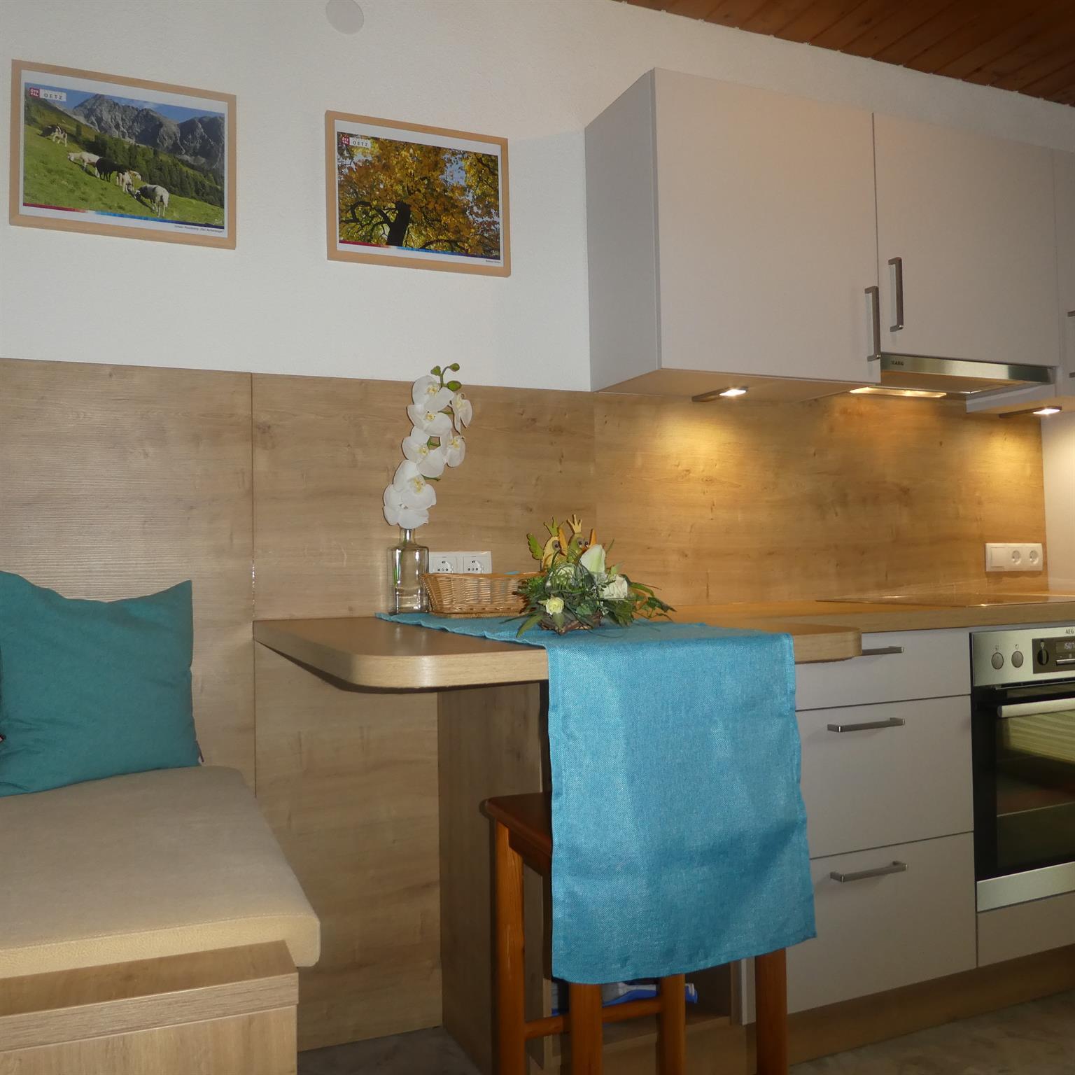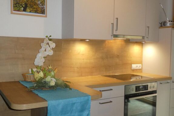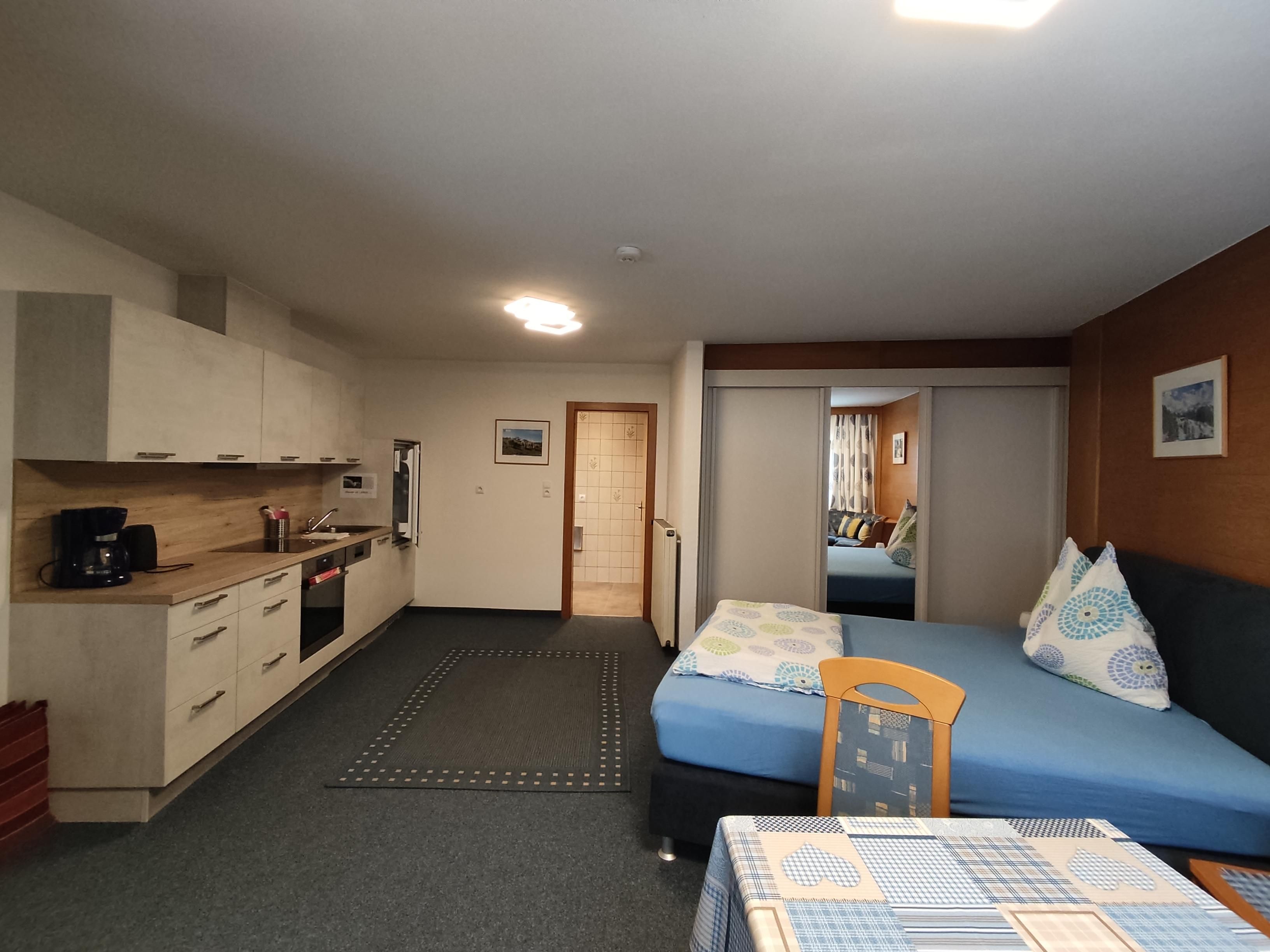 Geeignet für 2 Erw. + max 2 Kinder bestehend aus Wohnküche mit E-Herd, Backofen, 4 Cerankochfeldern, Geschirrspülmaschine, Kühlschrank, Kaffeemaschine, Wasser- und Eierkocher, Toaster, gemütlicher Sitz-Essecke, großer Balkon. Schlafzimmer mit Erker und Couch, SAT-FLAT-TV, Dusche/WC, Vorraum und bei Bedarf separates Einzelzimmer direkt nebenan. Das Einzelzimmer ist nicht mit der Wohnung verbunden.