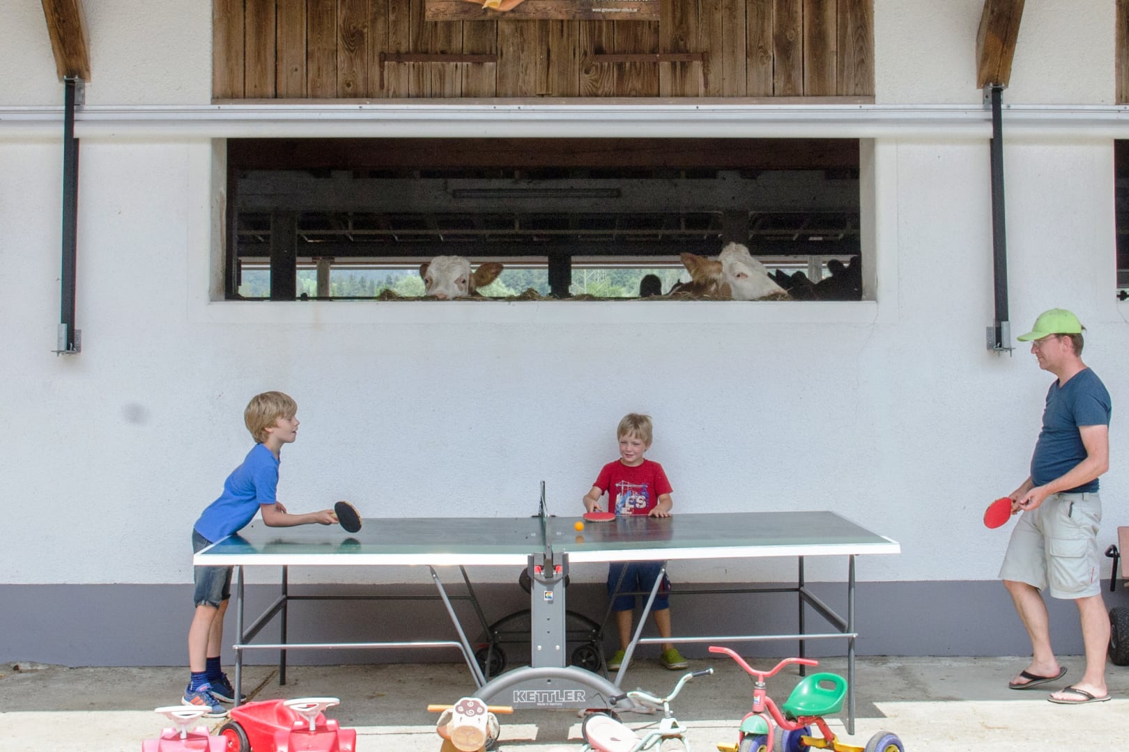 DER HOF - Kühe, Kälber, Zwergziegen, Schwein, Katzen, Hasen, Hühner, Enten hautnah erleben - streicheln, füttern oder im neuen Laufstall einfach nur beobachten. Der große Garten mit Schaukeln, Rutschen, Go-Karts, Tischfußball, Tischtennis ... Alles was das Herz begehrt!