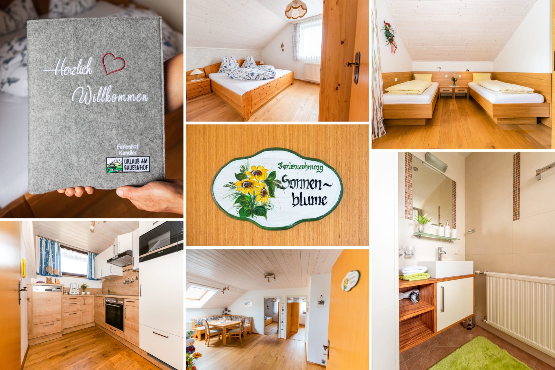 DIE FERIENWOHNUNGEN - die Wohnung Sonnenblume (4-8 Pers.), großzügig und neu möbiliert, und die Wohnung Abendsonne (2-4 Pers.) gemütlich und traditionell, beide mit Balkon, lassen Ihren Urlaub zur Erholung werden. Die gemütliche Wohnung Morgensonne (2-3 Pers.) ist perfekt für einen Aufenthalt zu zweit. Und zum Frühstück gibt es frische Lebensmittel direkt vom Bauernhof.