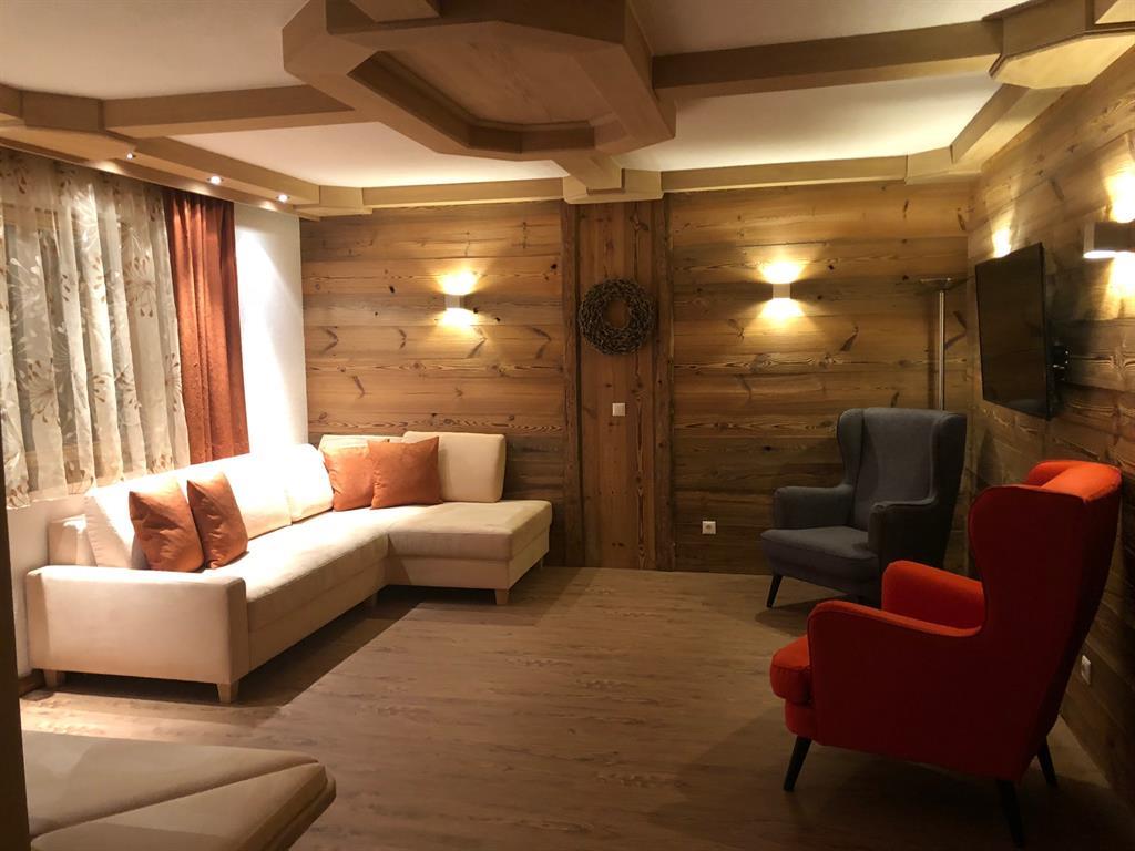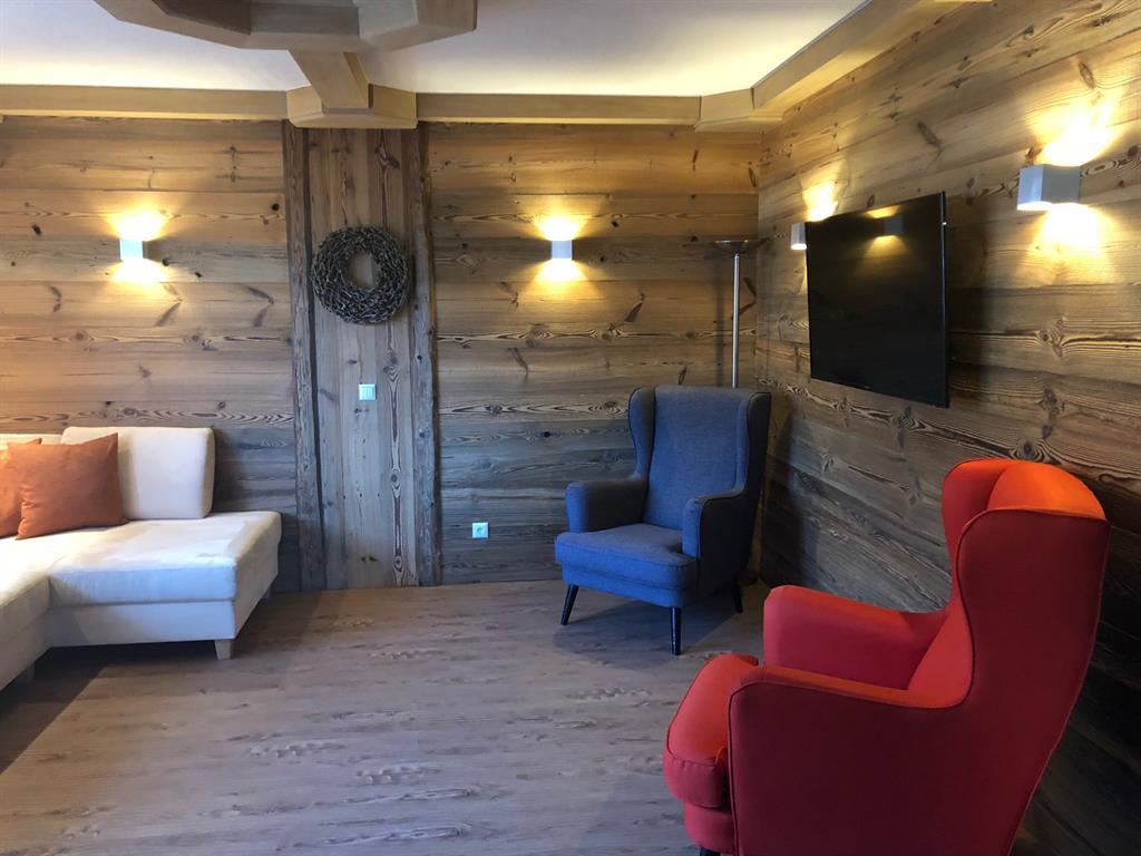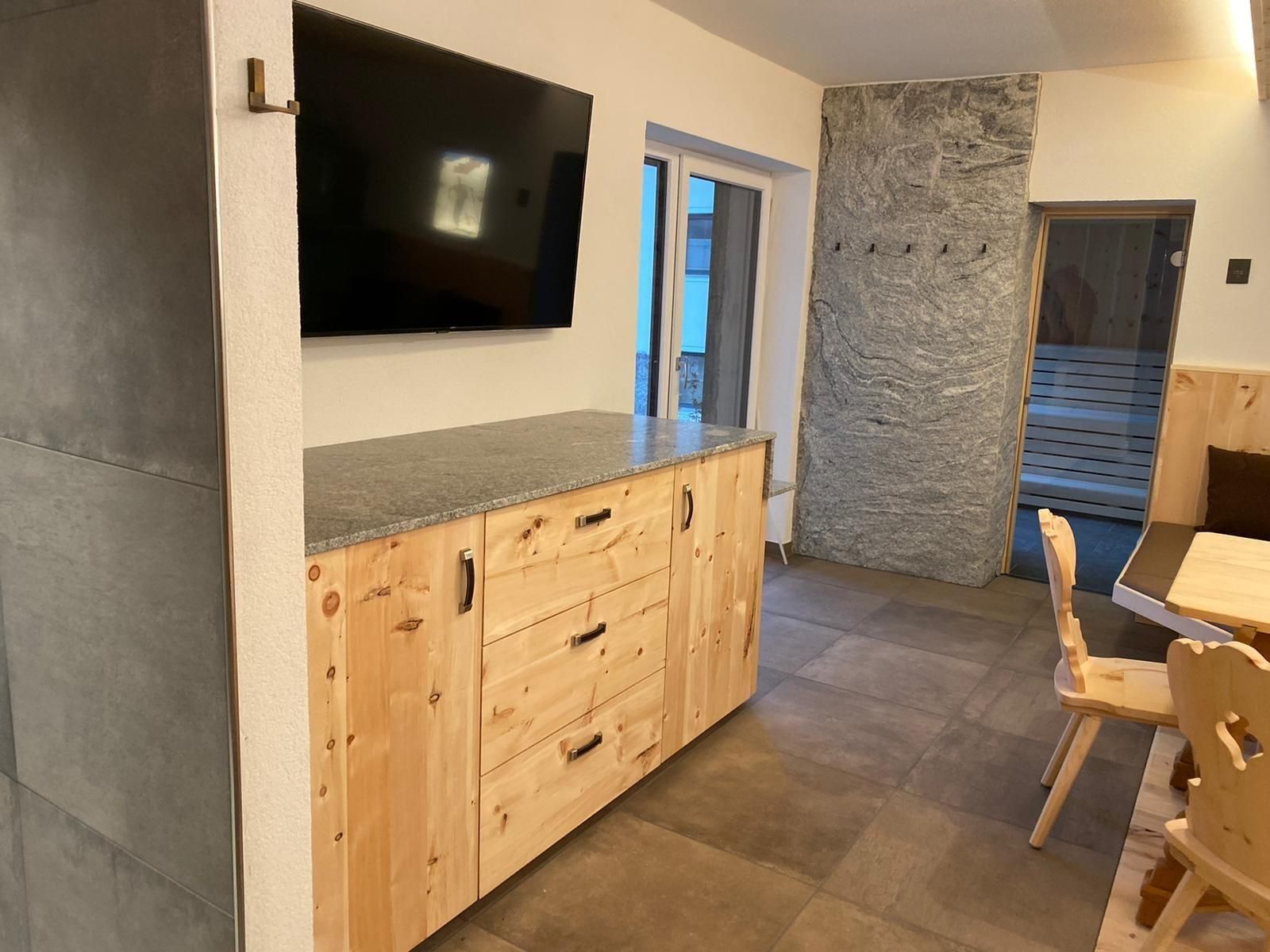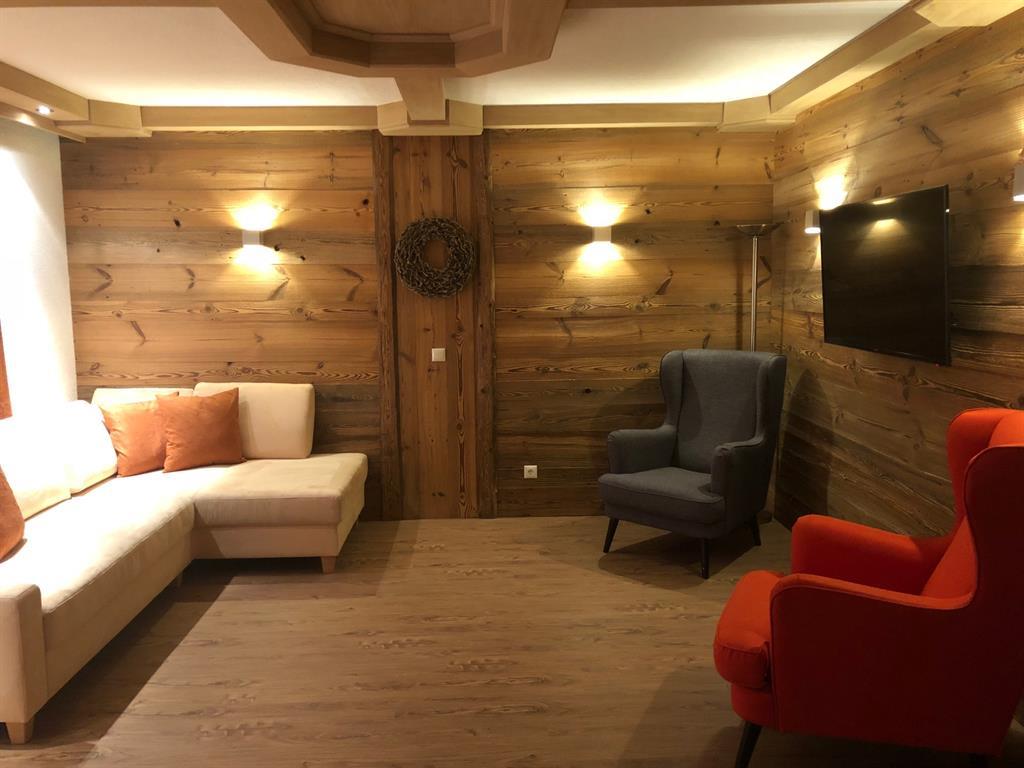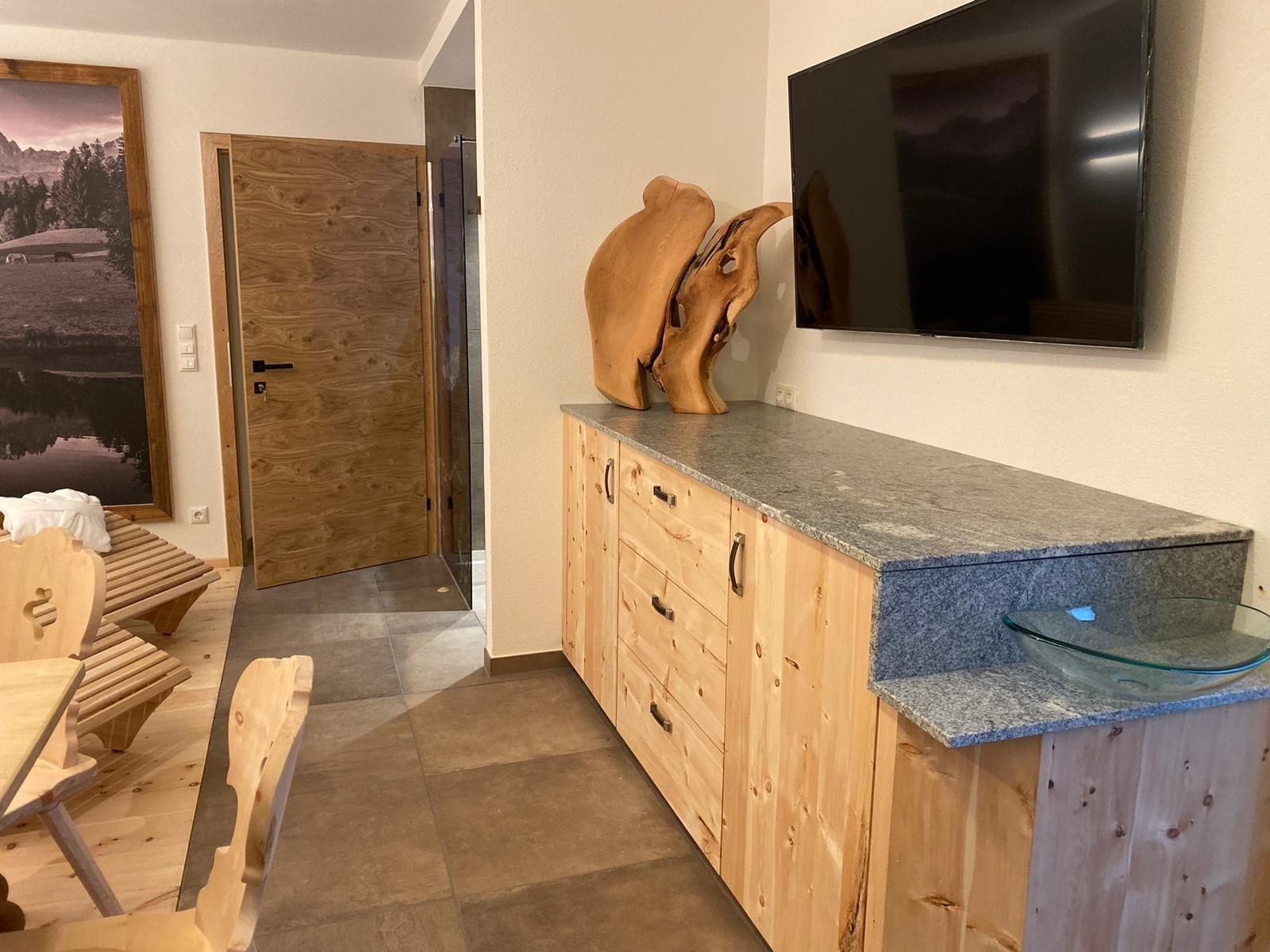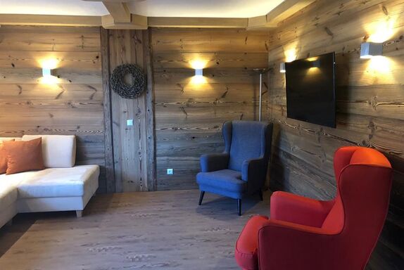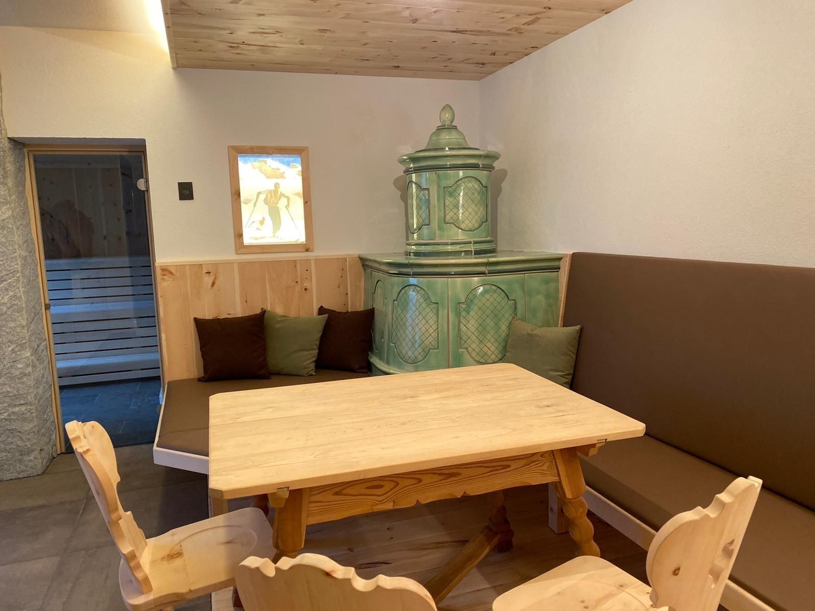 Genießen Sie Ihre Auszeit in unserer Panorama-Zirben Sauna mit Ausblick auf die Kitzbühler Alpen und gemütlichem Ruheraum der keine Wünsche offen lässt.