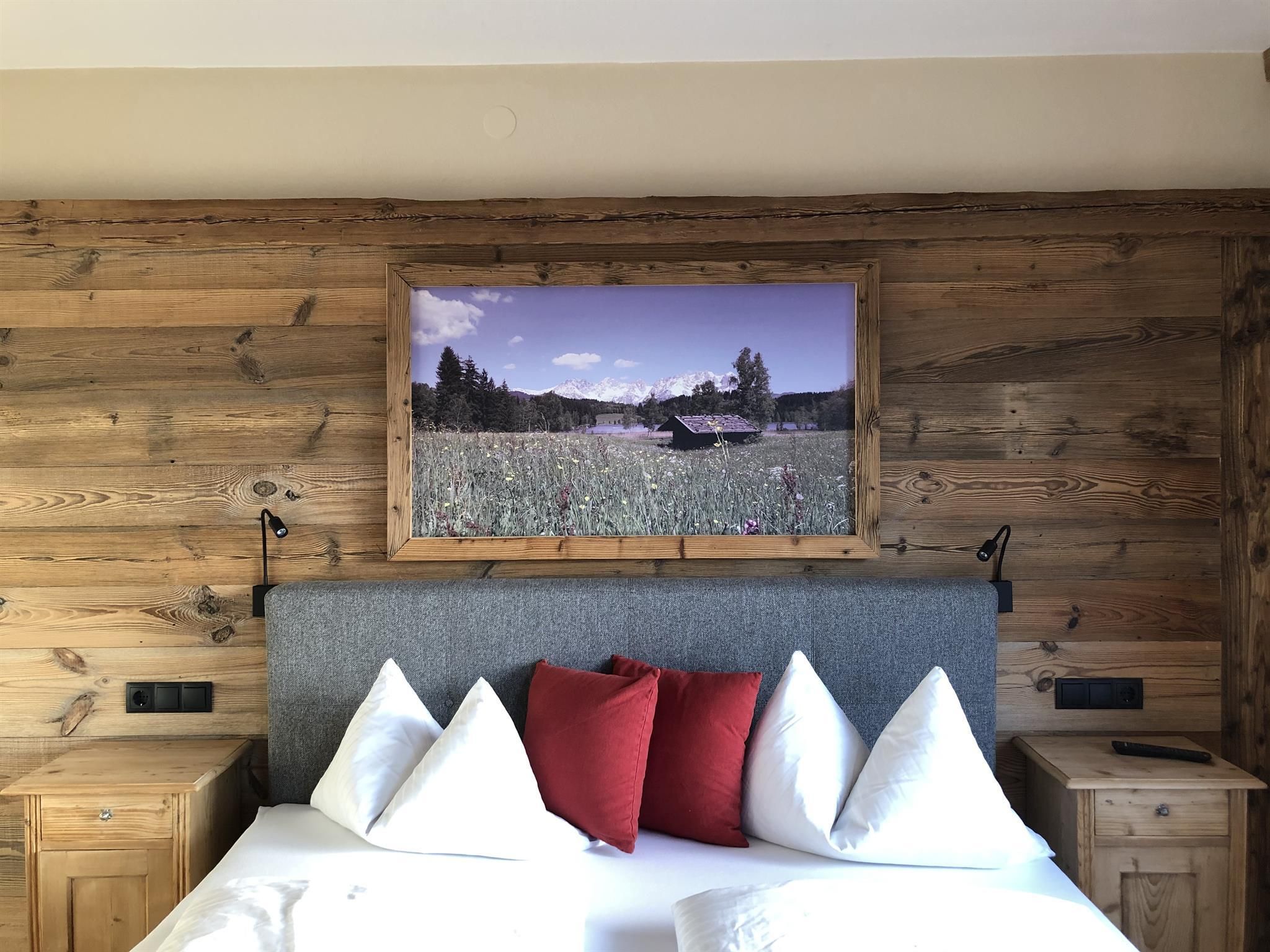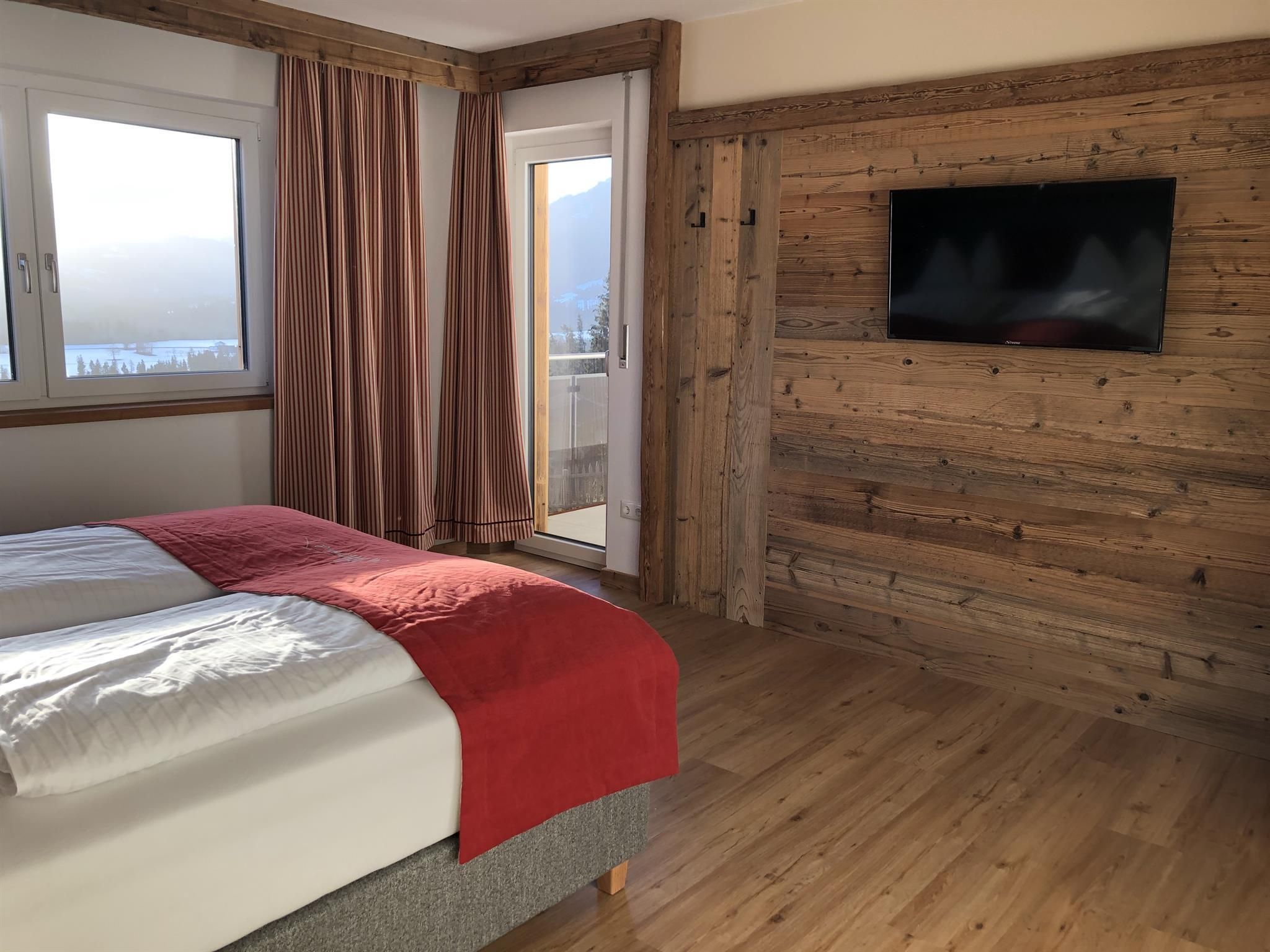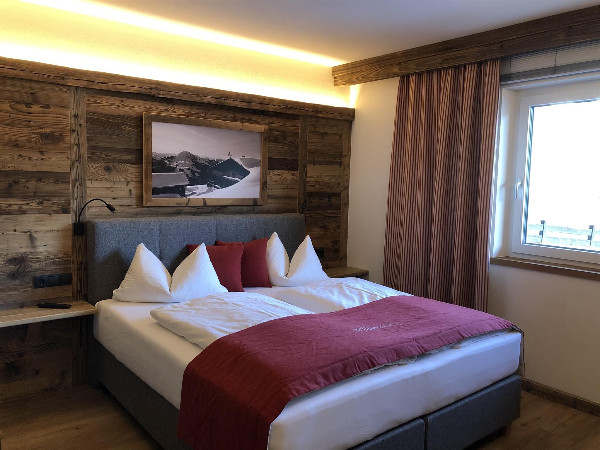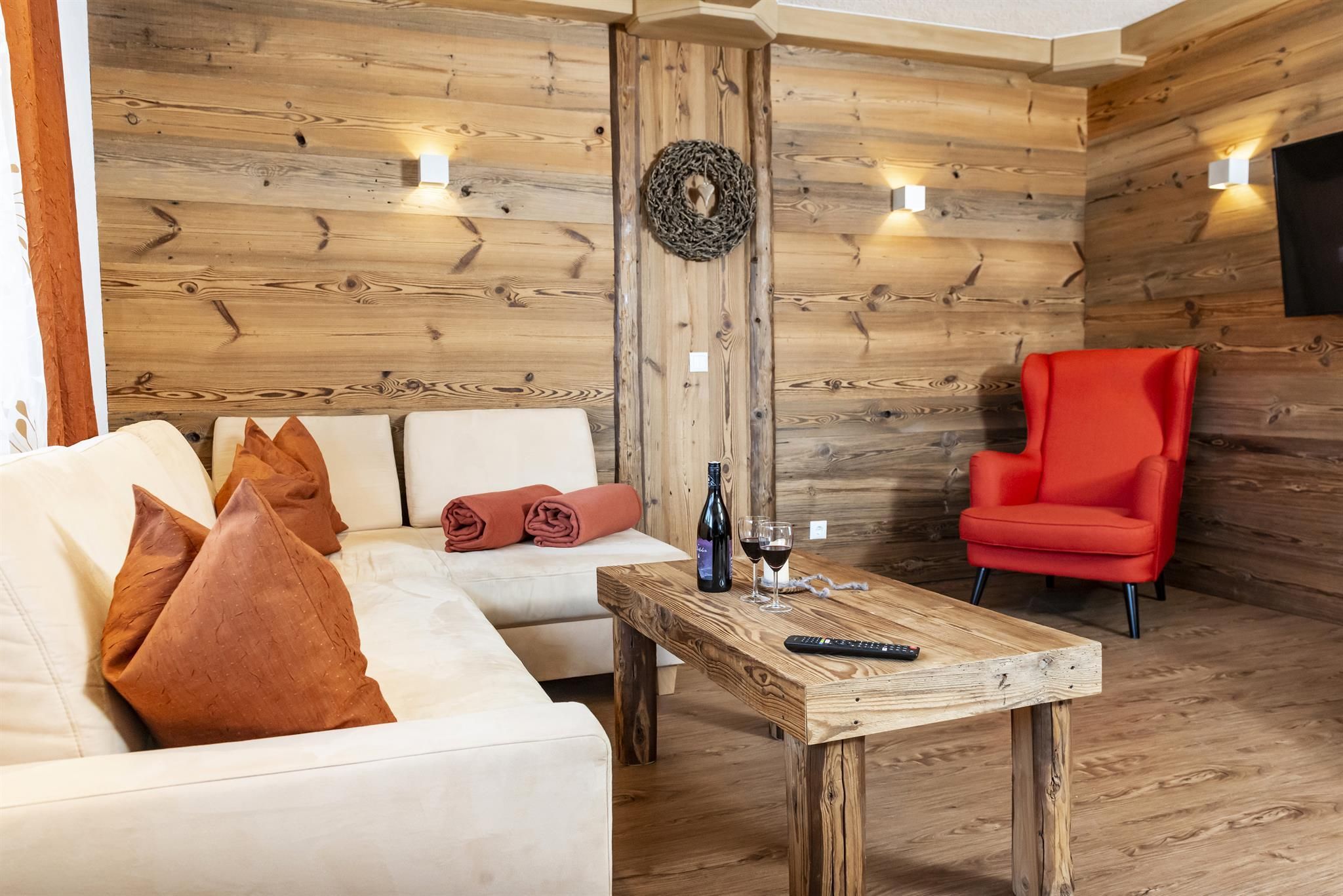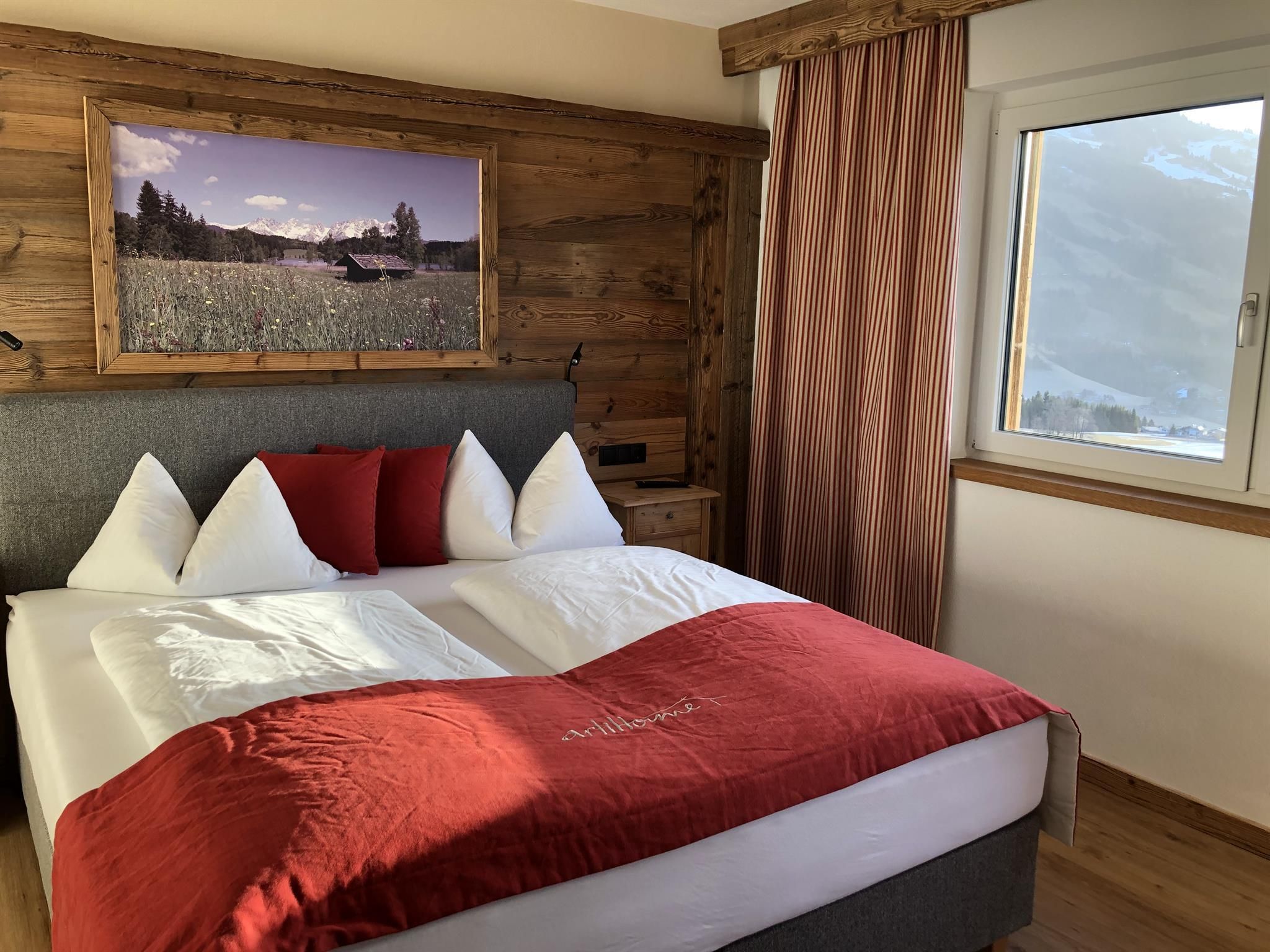 Genießen Sie Ihre Auszeit in unserer Panorama-Zirben Sauna mit Ausblick auf die Kitzbühler Alpen und gemütlichem Ruheraum der keine Wünsche offen lässt.