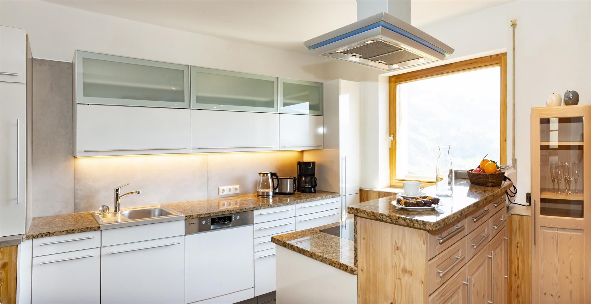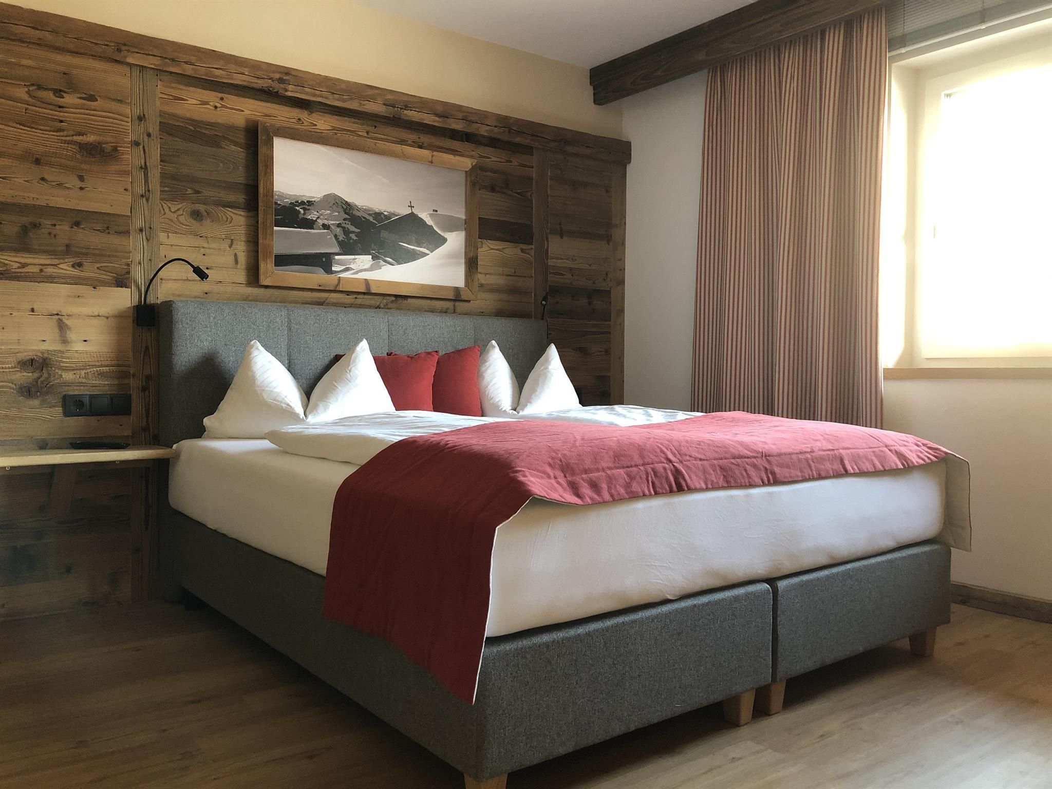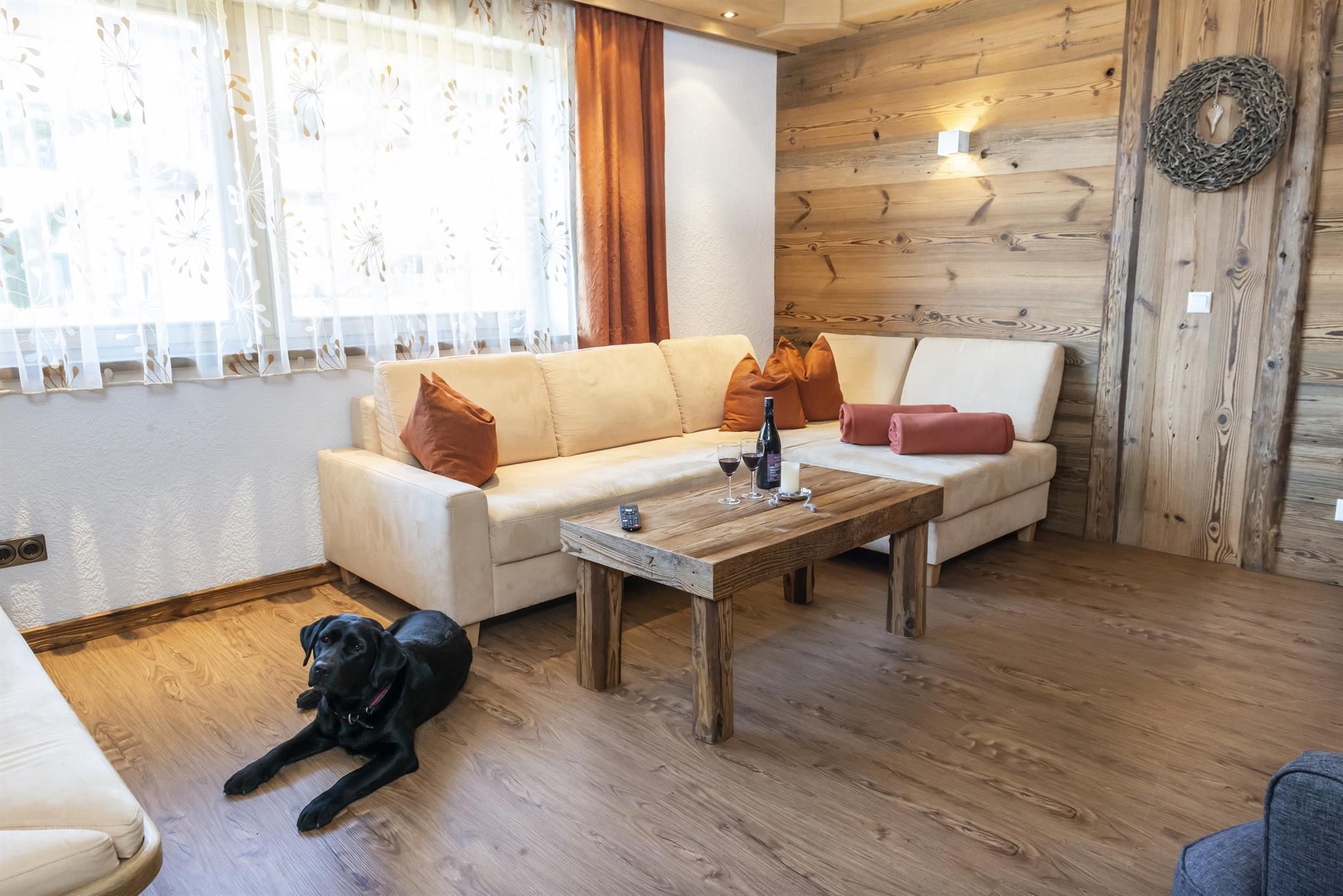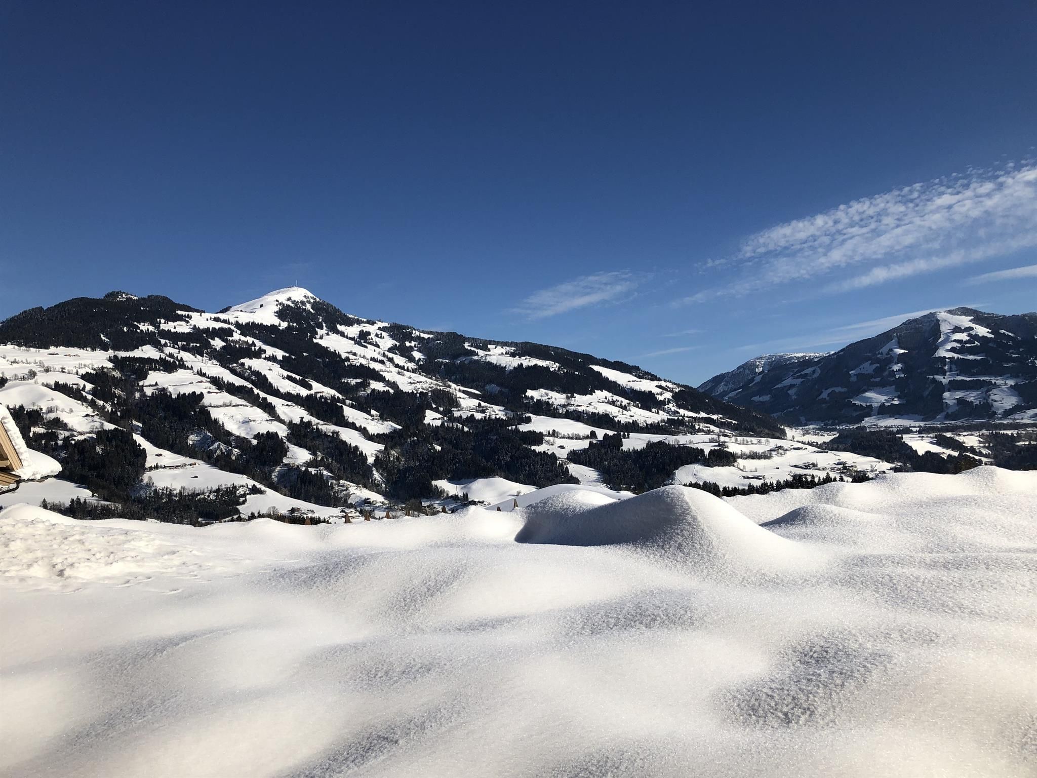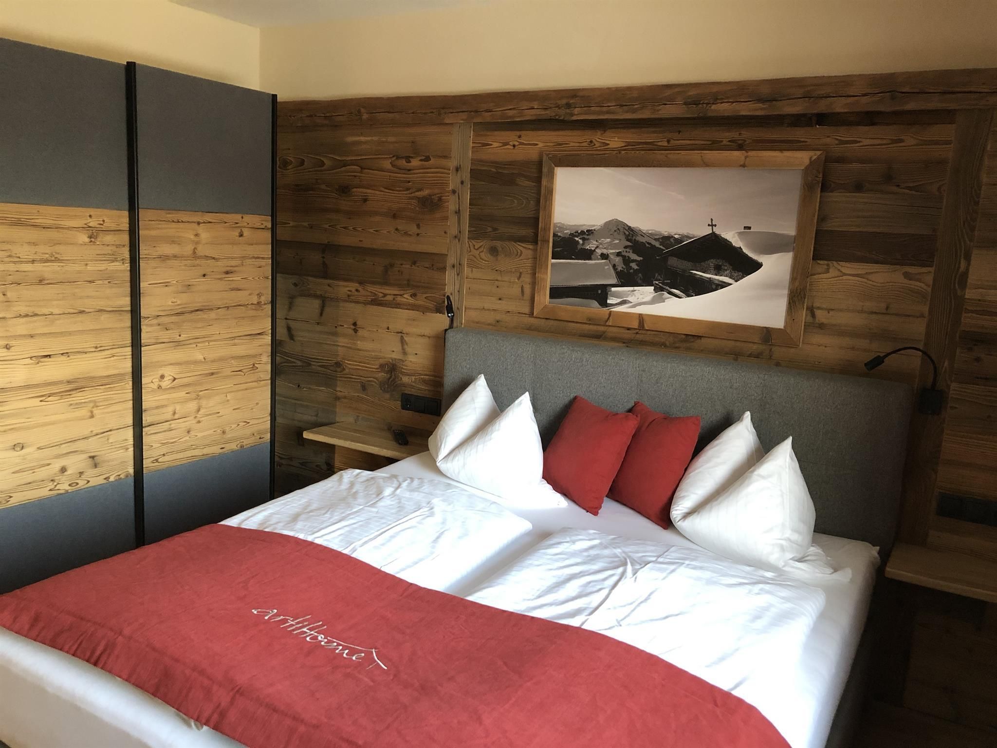 Genießen Sie Ihre Auszeit in unserer Panorama-Zirben Sauna mit Ausblick auf die Kitzbühler Alpen und gemütlichem Ruheraum der keine Wünsche offen lässt.