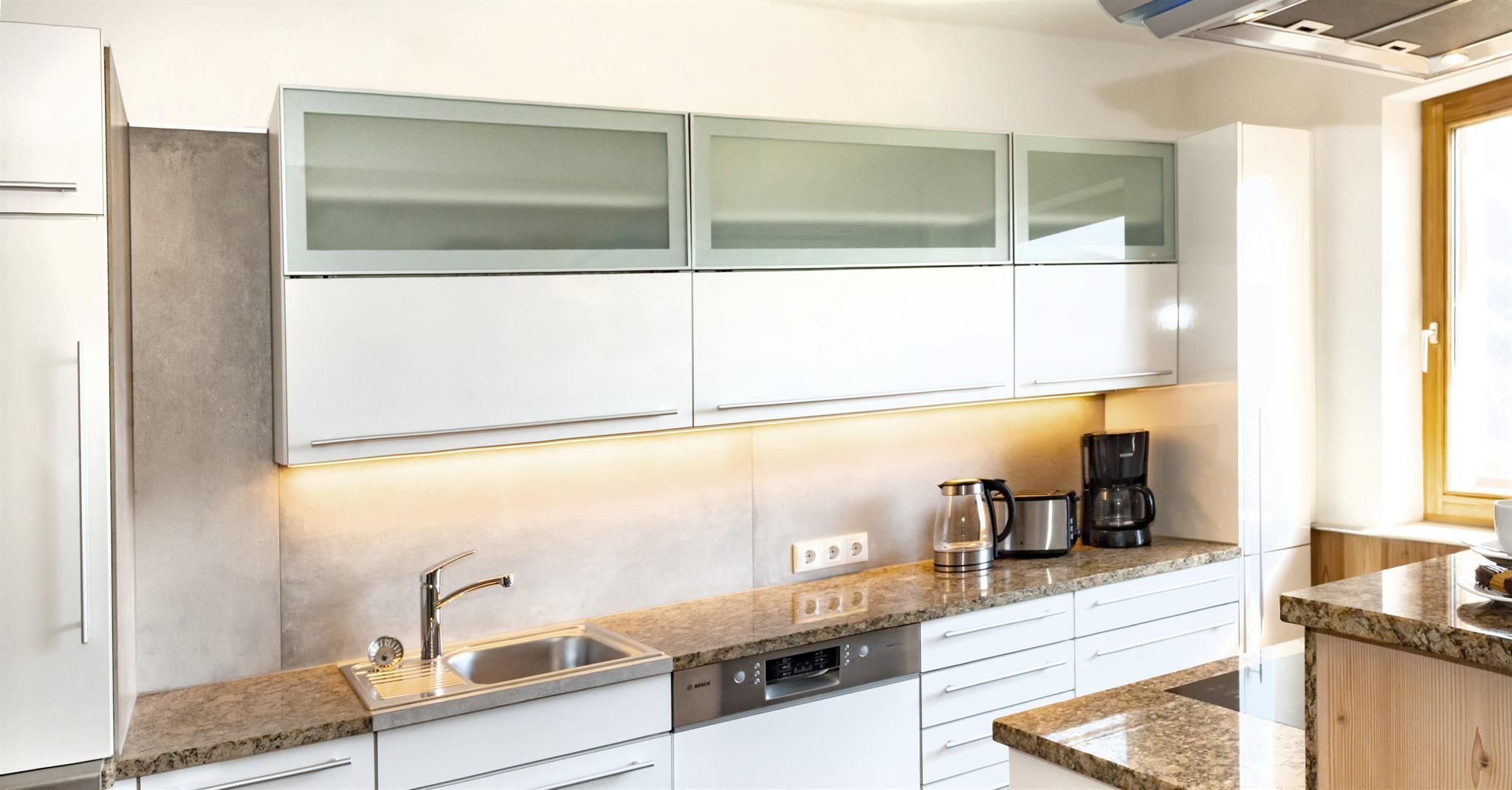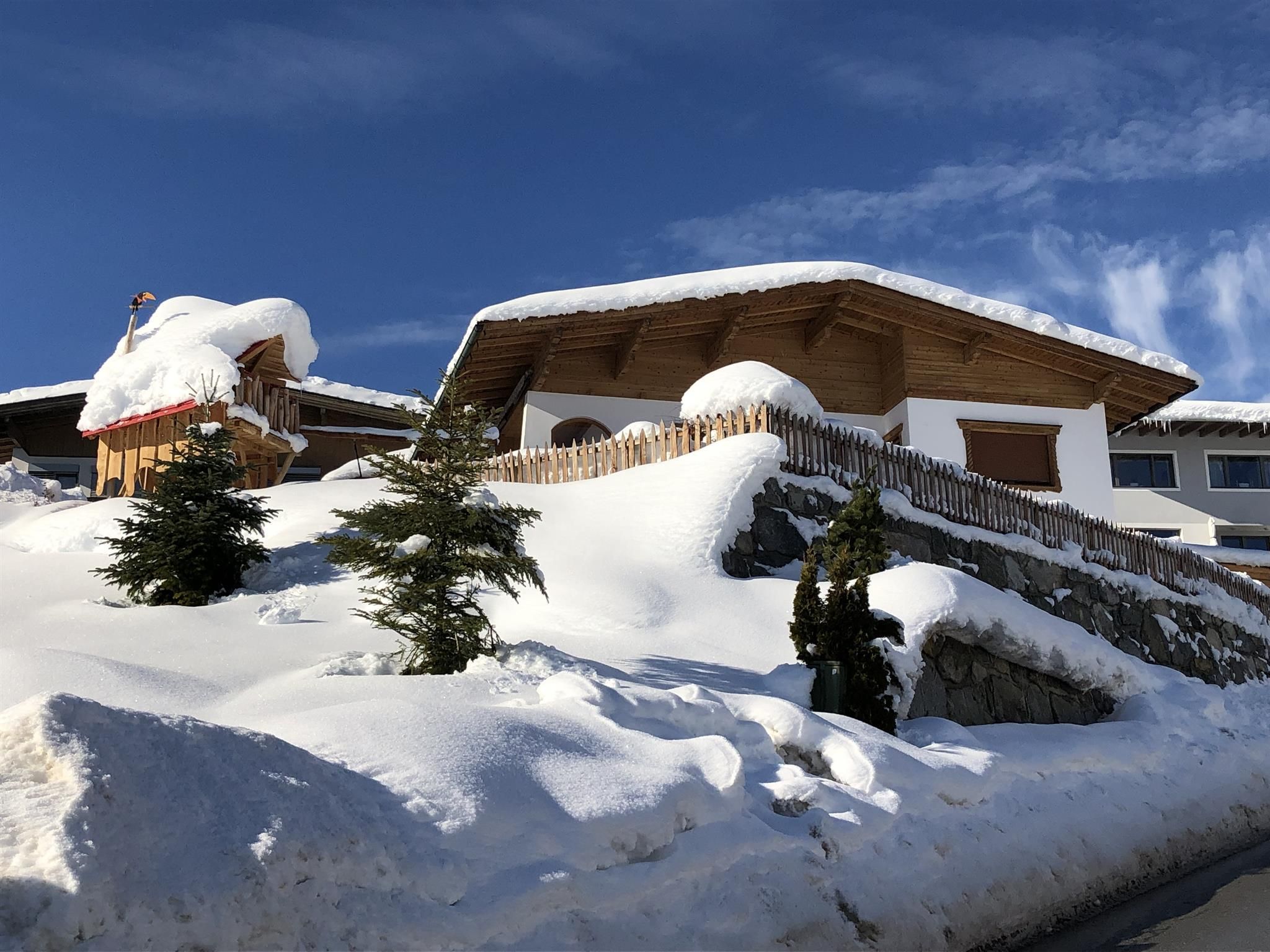 In der unteren Etage stehen Ihnen ein 4-Bett Zimmer, ein 2-Bett Zimmer und ein 3-Bett Zimmer zur Verfügung. Alle Schlafzimmer haben Ausblick auf die umliegende Bergwelt. Des weiteres ein großes Bad mit Toilette und ein Skiraum mit Waschmaschine und Durchgang zum Carport. Zum Haus gehören eine große überdachte Terrasse mit Sitzmöglichkeiten und ein großer Garten mit Kinderspielhaus, ebenso ein Carport für 3 Autos.