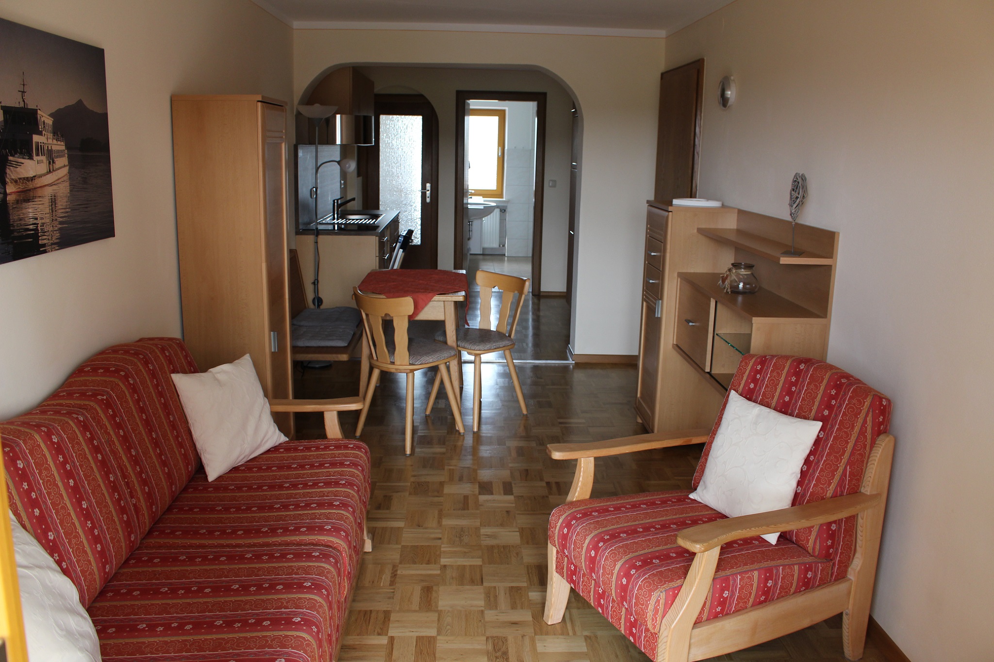 In der hell eingerichteten Ferienwohnung mit Holzparkettboden finden Sie ein bequemes Wohnzimmer mit Sofa, eine eigene kleinen Küche, ein nordseitiges Schlafzimmer mit einem Doppelbett, ein Bad mit Badwanne und Dusche, sowie ein separates WC vor. Vom dazugehörigen Balkon aus haben Sie einen wunderschönen Blick in die Chiemgauer Berge.
