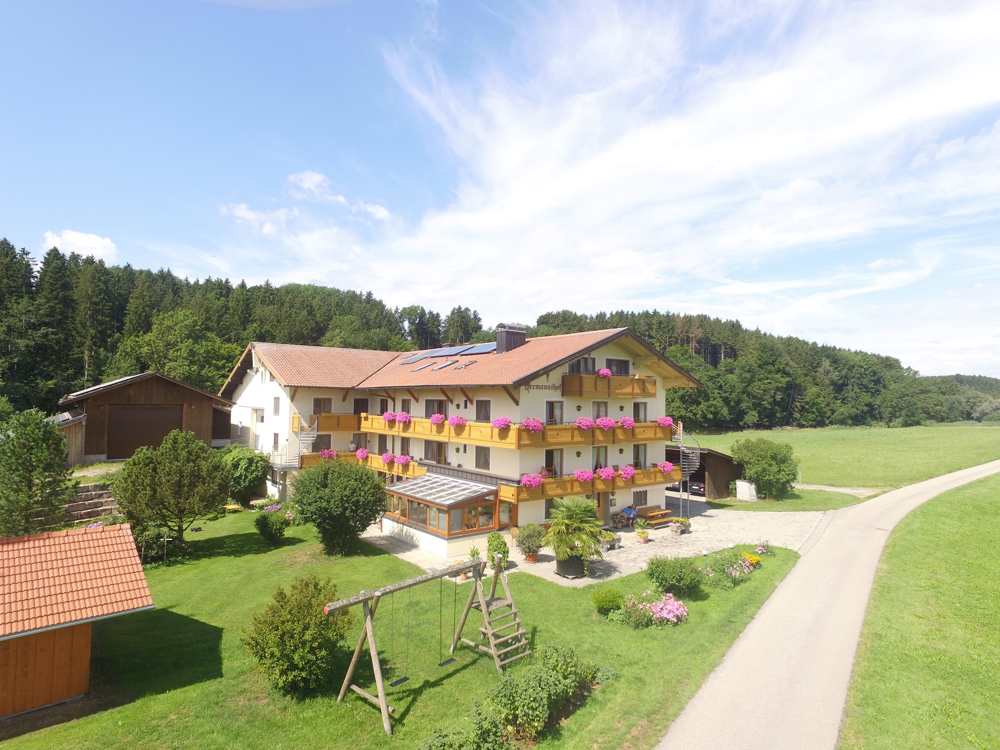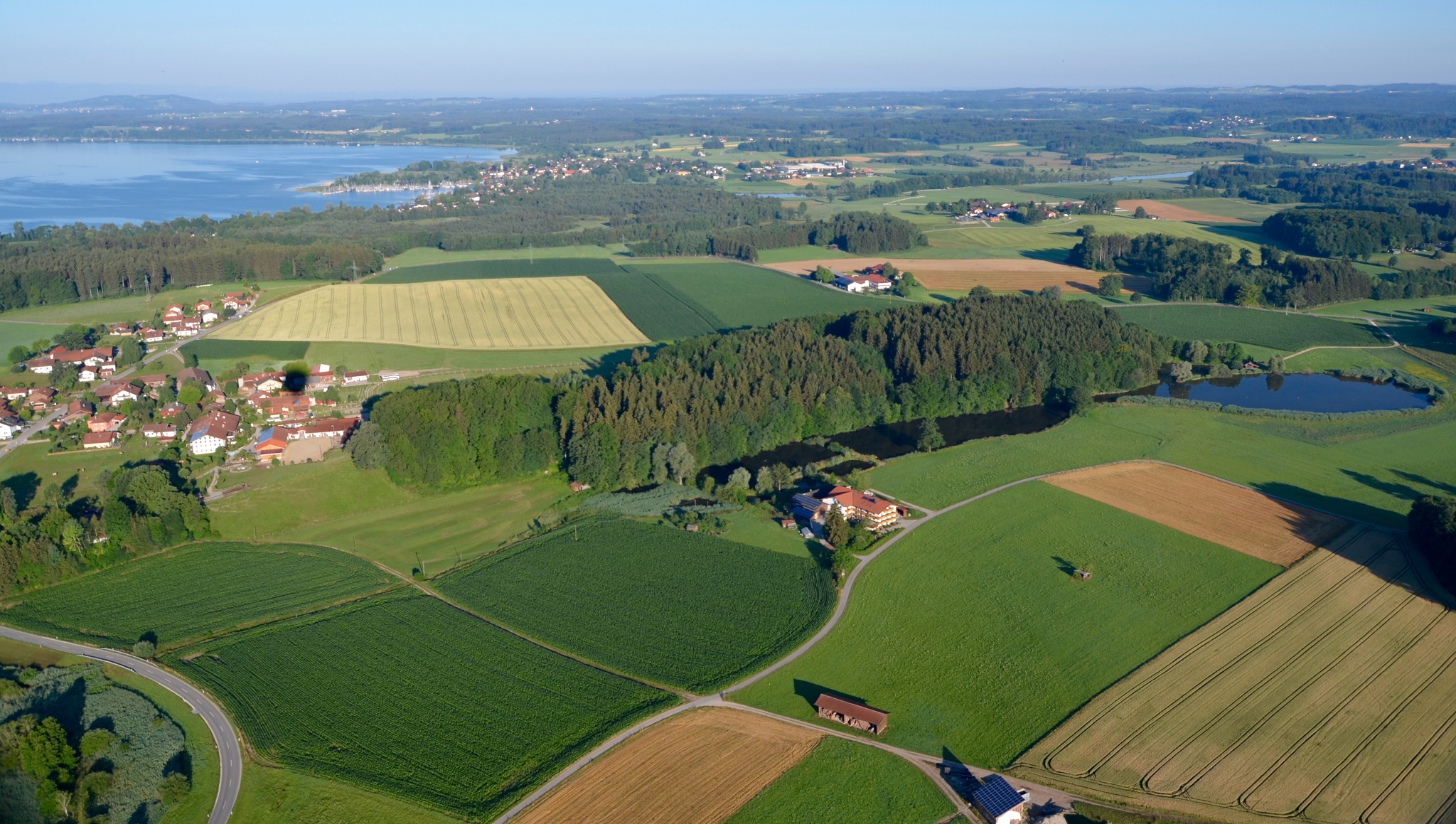 Unser Gästehaus liegt nahe dem Chieminger Ortsteil Thauernhausen, etwa 2 km vom Chiemsee und 7 km vom Ortszentrum von Chieming entfernt. Wir liegen in sehr ruhiger Lage, das nächste Haus befindet sich mehrere 100 m entfernt. Unsere Zimmer und Ferienwohnungen bieten Ihnen einen wunderschönen Ausblick auf die Landschaft und Berge der Umgebung.