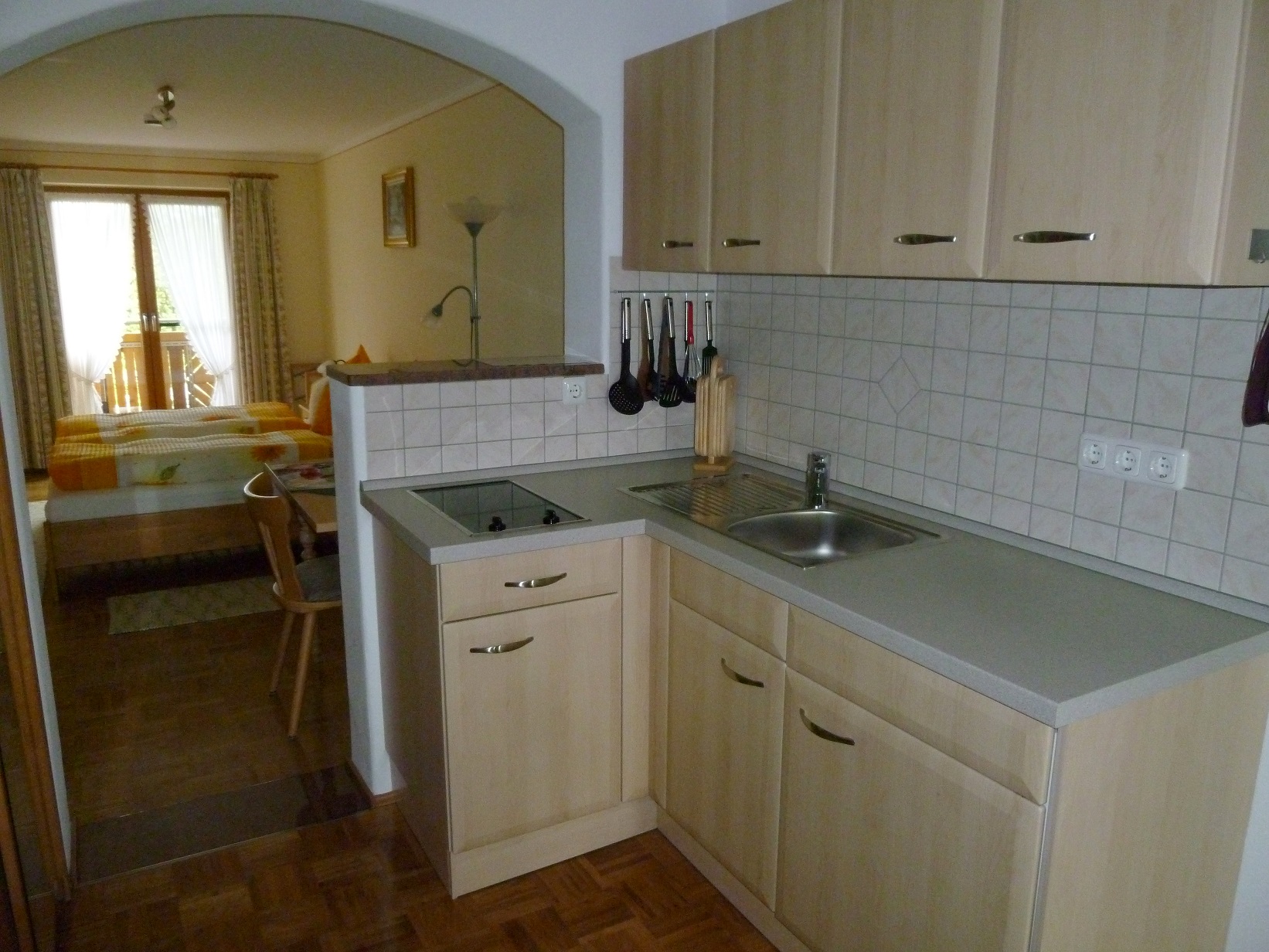 In der 2. Etage finden sie ein heimelig eingerichtetes Appartement mit Parkettboden, einer kleinen Wohnküche und einem südseitigen Schlafzimmer, sowie Balkon mit Blick auf die Chiemgauer Berge. Zusätzlich finden Sie ein Bad mit Badewanne und Dusche und einem separaten WC vor.