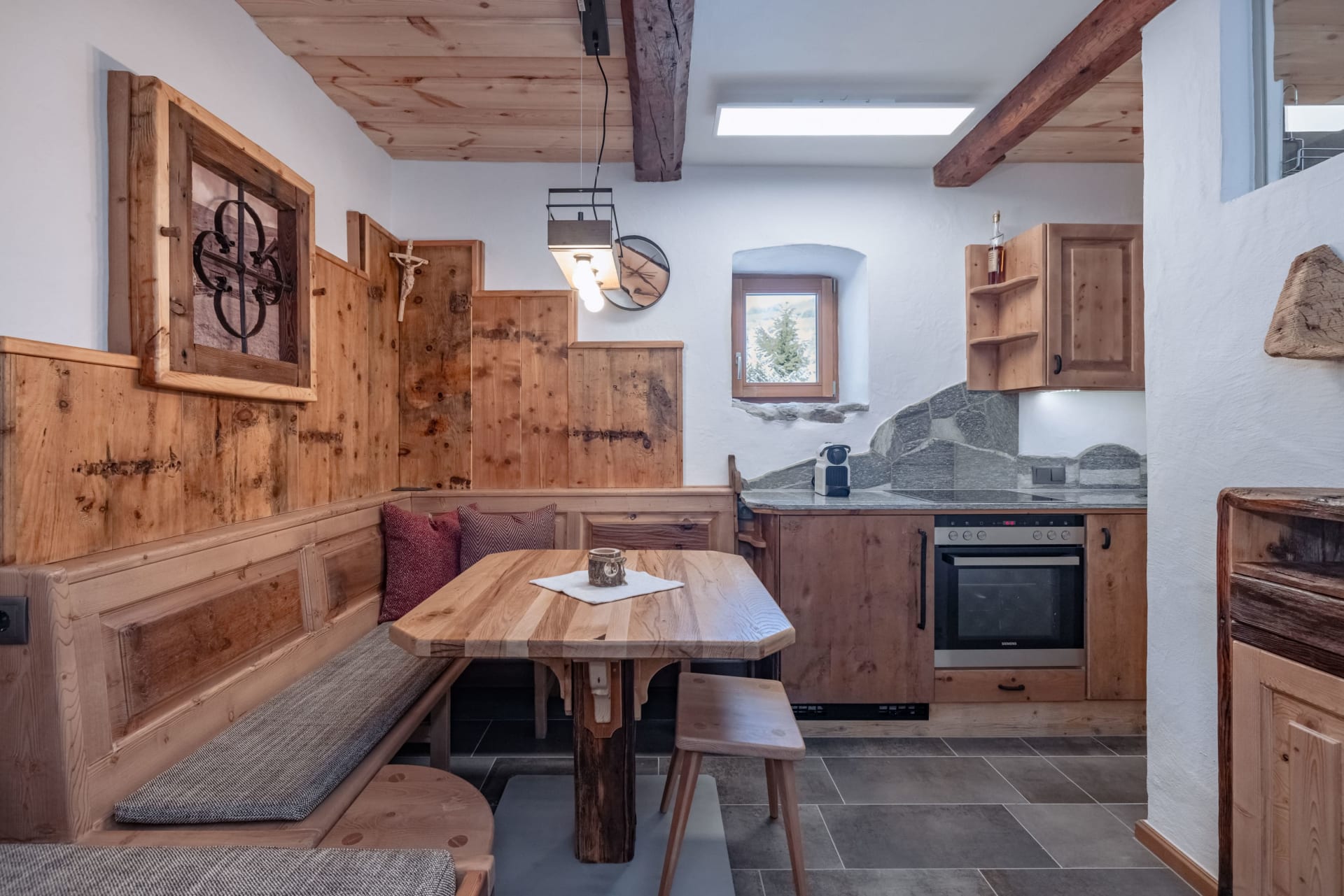 Mit einer größe von 42 m² bietet dieses Almdomizil Platz für 2 Personen. Die Komplettausstattung der Küche und ein modern eingerichtetes Bad im unteren Geschoss und das offene Schlafzimmer mit Doppelbett inklusive Flachbild-TV und Kuschelecke im Obergeschoss bieten Gemütlichkeit und Komfort auf harmonische Weise.
