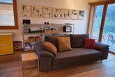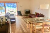 Sonniges Wohnzimmer: modern und praktisch eingerichtet mit Sofa, Flachbild-TV und WLAN.