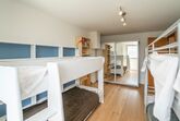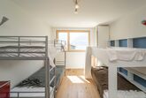Drei Schlafzimmern: ein Schlafzimmer mit Doppelbett, ein Schlafzimmer mit Schlafsofa, ein Schlafzimmer mit zwei Etagenbetten. Bettwäsche vorhanden.