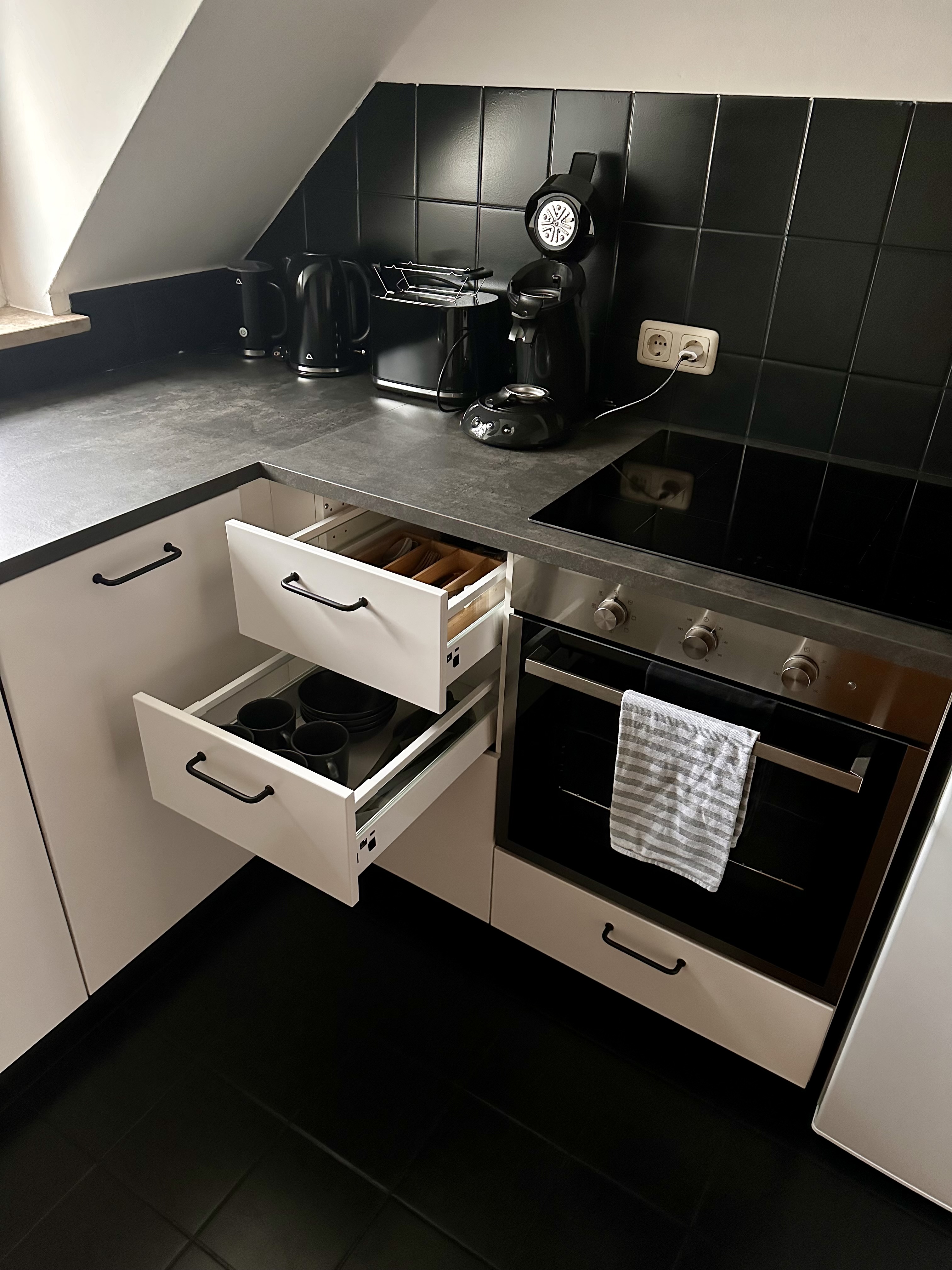 Das 42 qm große Apartment hat ausreichend Platz für drei Erwachsene (King-size Bett und Schlafcouch mit hervorragendem Topper). Die Küche ist vollausgestattet mit Elektrogeräten (Kühlschrank mit Gefrierfach, Spülmaschine, Backofen, Herd, Kaffeemaschine, Milchaufschäumer, Wasserkocher und Toaster). Der möblierte Südbalkon lädt zum Entspannen ein.