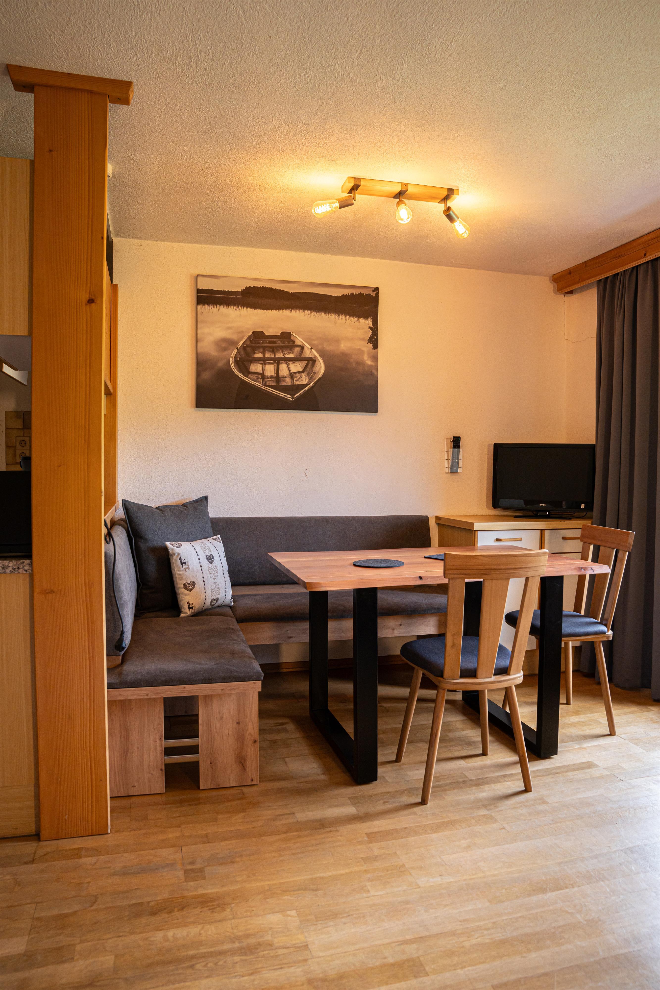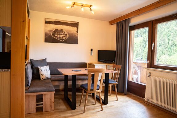 Kochnische mit Koch- und Essgeschirr, Kühlschrank, Kaffeemaschine, SAT-TV und SAT - Radio, Schlafcouch /en, Bettwäsche, Tischwäsche und Handtücher vorhanden, Sitzecke, Dusche und separates WC, Balkon
