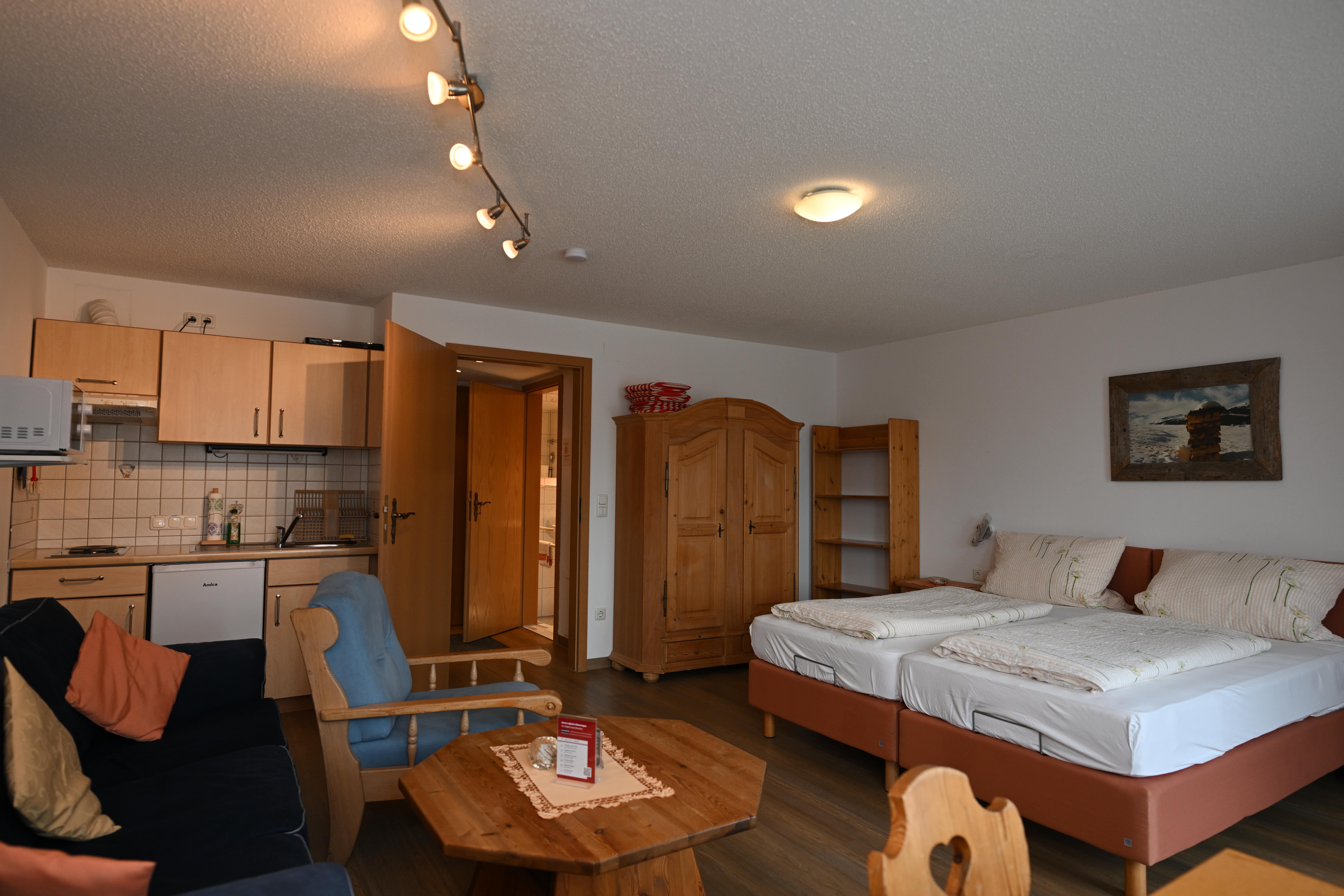 Die Appartements sind im alpenländischen Stil eingerichtet - gemütlich und gediegen. In allen Wohnungen sind Betten und Wäsche für die angegebene Personenzahl vorhanden. Gleich nebenan betreibt unsere Familie ein à la Carte Restaurant mit regionaler Küche. Hausgäste bekommen hier 10% Ermäßigung auf Ihren Verzehr.