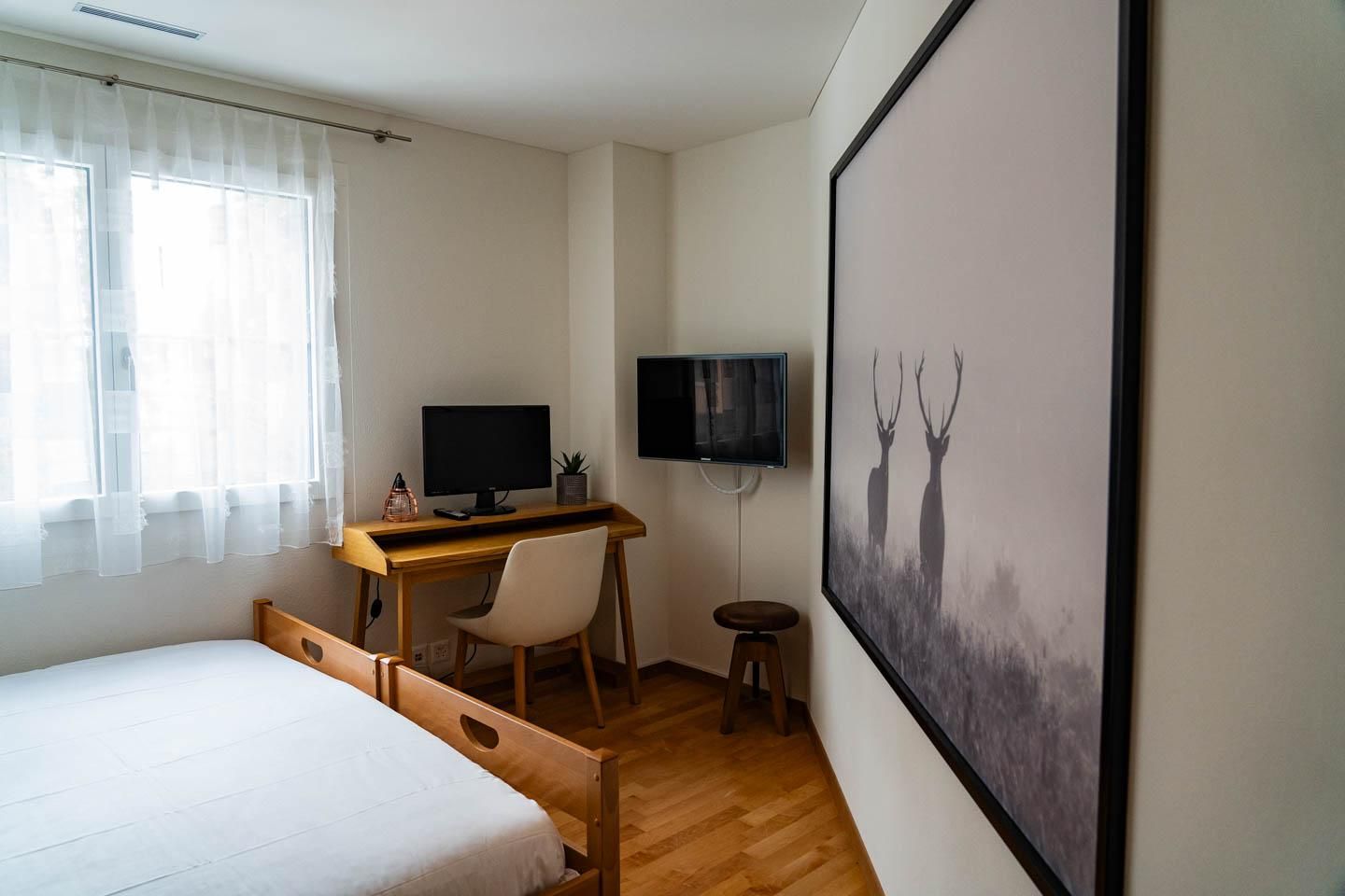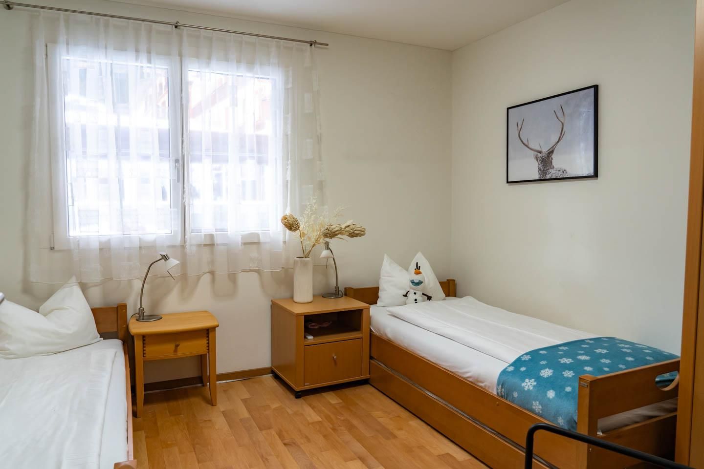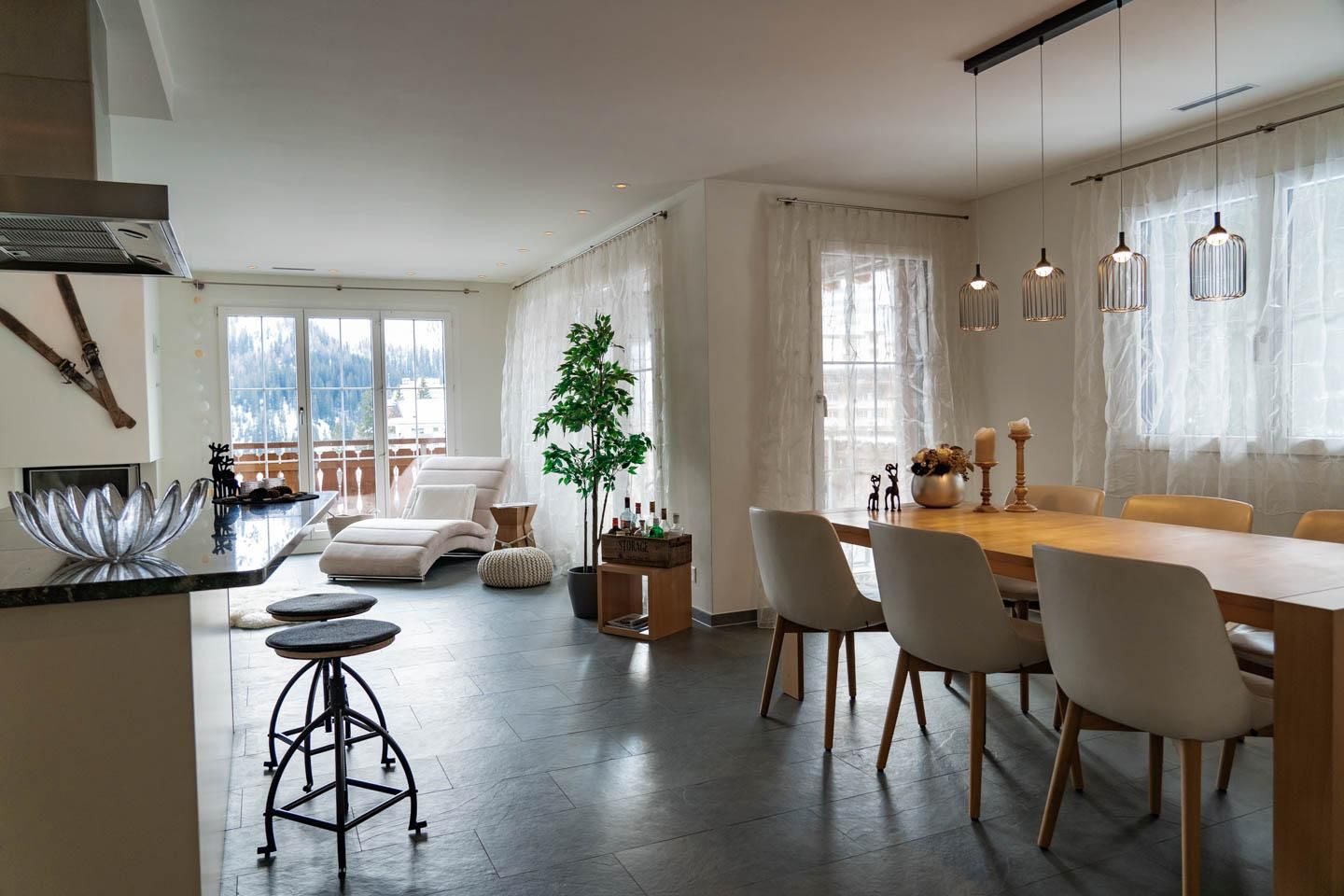 Die schöne Wohnung befindet sich in der 3. Etage der luxuriösen Residenz Waldhotel. Sie bietet 3 Schlafzimmer, 2 davon mit 1.80 Betten und ein Zimmer mit 2 90 x 200 Betten. Es gibt ein grosses Bad mit Dusche und Badewanne sowie eine Gästetoilette. Der offene Wohnraum bietet genügend Platz für gemeinsame Stunden. Der Südbalkon bietet einen unverbauten Ausblick auf die Aroser Alpen. In der Wohnung befindet sich ebenfalls einen Haushaltsraum mit Waschmaschine und Tumbler. Es stehen 2 Parkplätze bereit, ausserdem gibt es im Haus einen Skiraum.