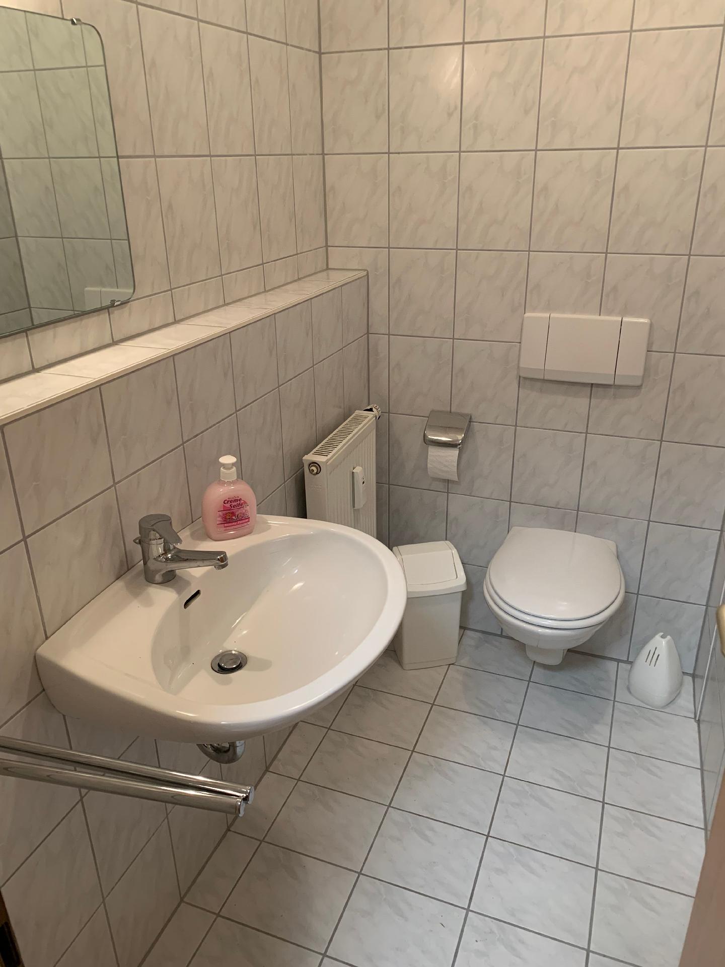 Bad mit Wanne, Essecke für 2-3 Personen und einer Süd Terrasse.