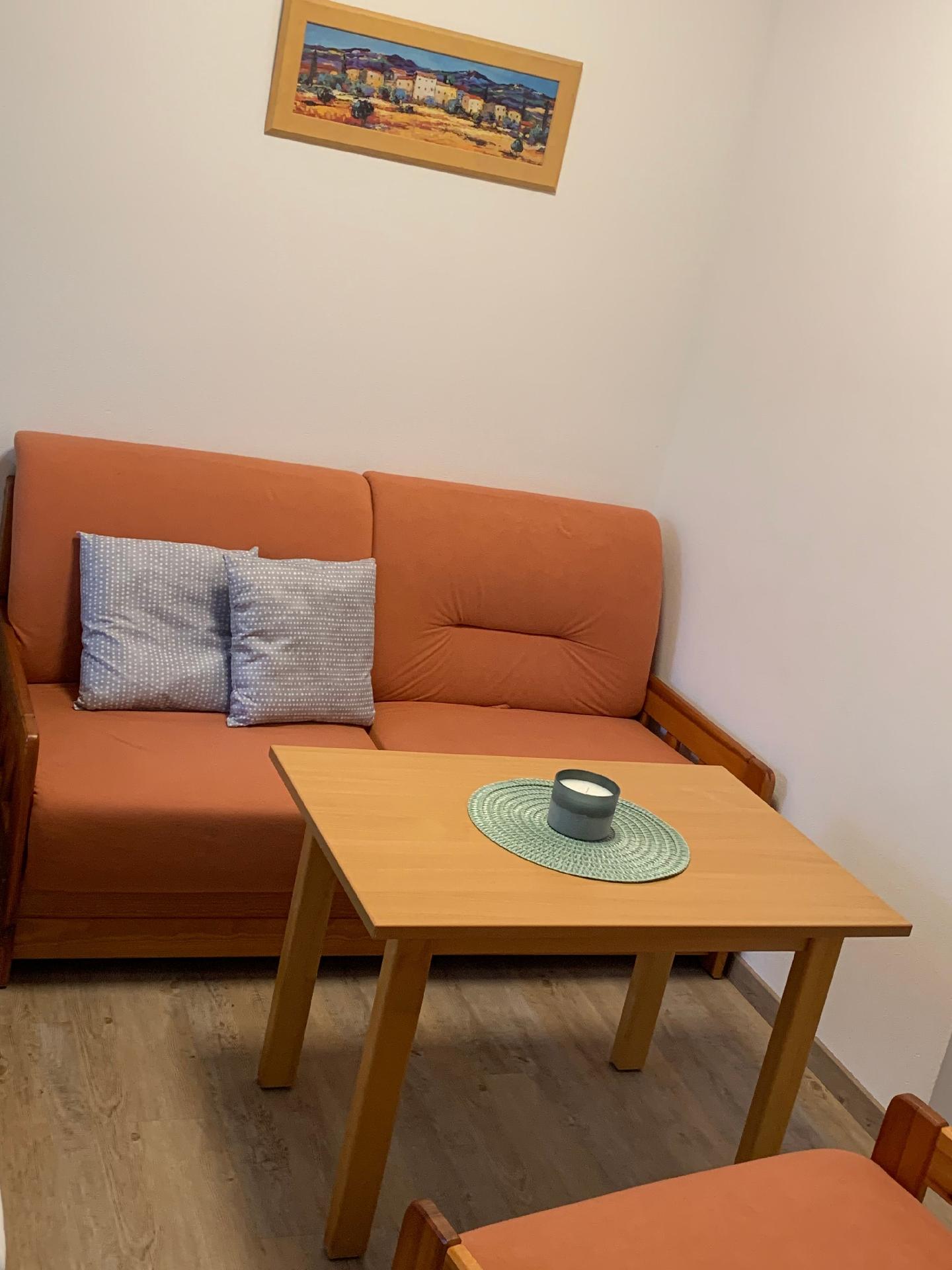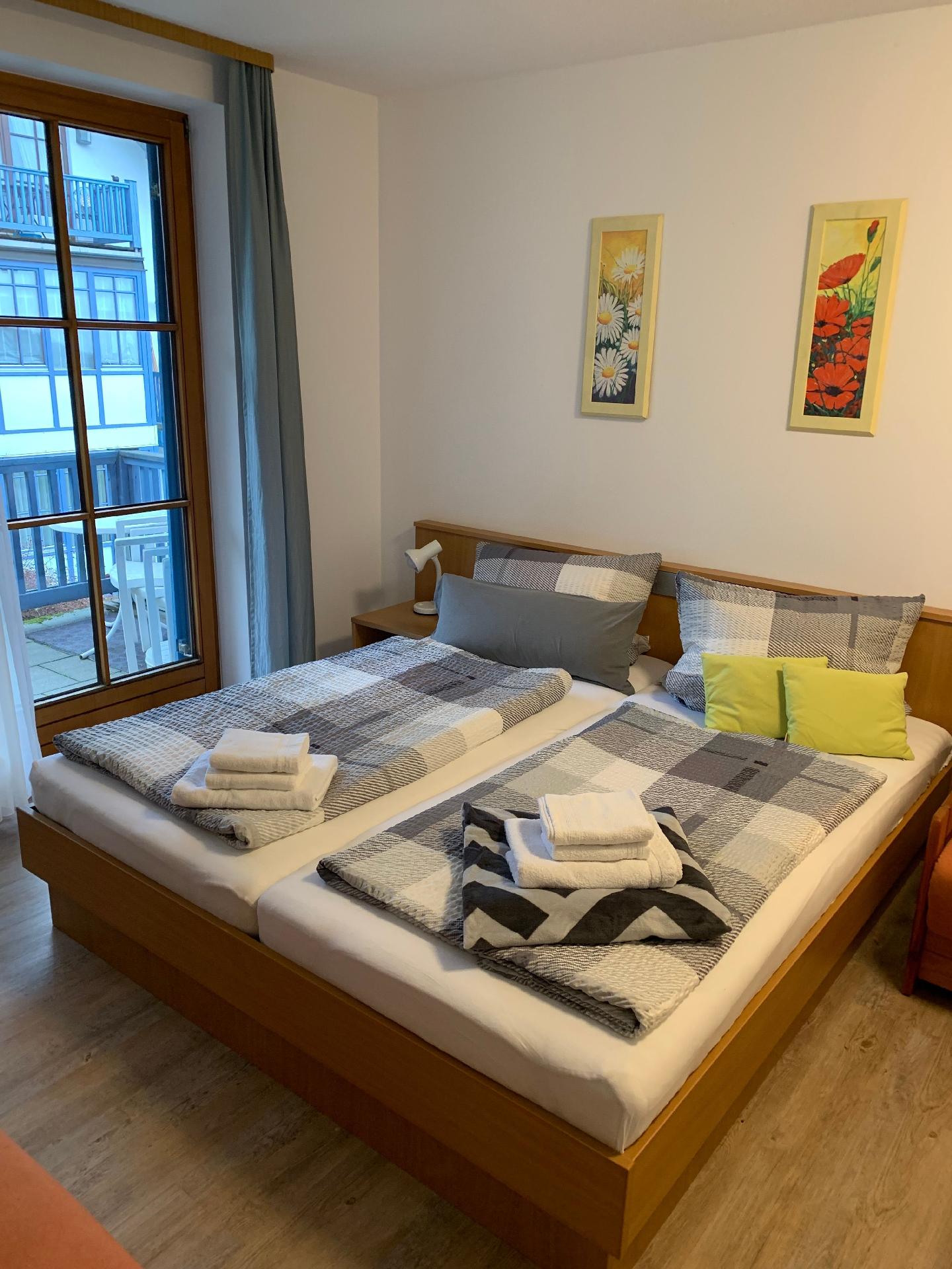 Unsere Wohnung Fewo 11 ist ausgestattet mit einem Doppelbett, 180 x 200 cm, einer Küchenzeile,Sofa, TV,