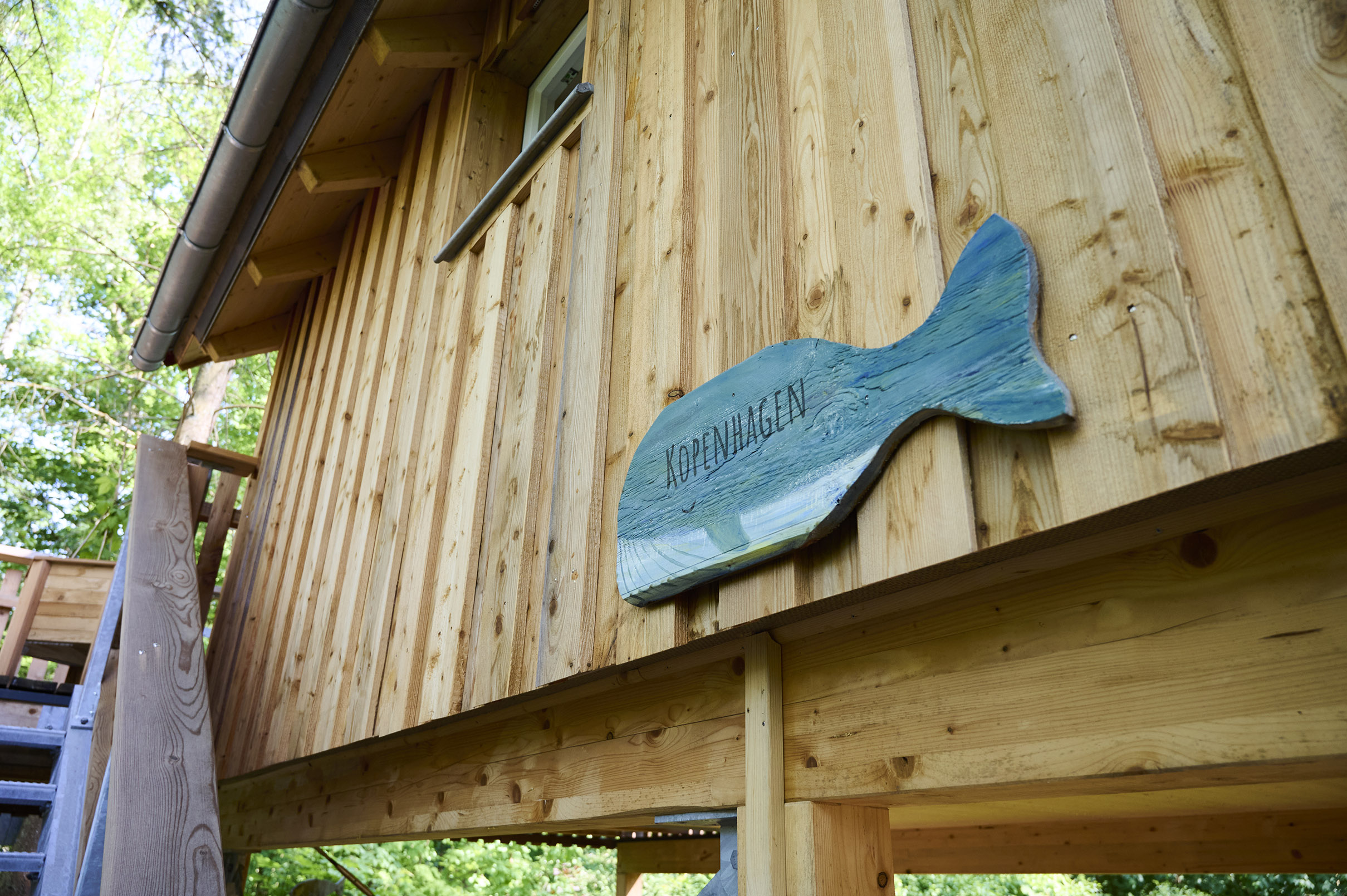 Das Stelzenhaus Kopenhagen ist im skandinavian Style eingerichtet, weiß und Holz mit schönen Details, einfach zum wohlfühlen. Platz ist für vier Personen in zwei Doppelstockbetten, auch hier kann ein Reisebettchen und ein Hochstuhl dazugestellt werden. Ein kleines Bad mit Waschbecken und Trockentoilette ist da und zum Duschen kann man in den Sanitärblock oder ins Waldbad, welches direkt vor Eurer Nase liegt. Ins Kopenhagen dürfen auch Haustiere mit für einen kleinen Aufpreis. Es gibt einen Tisch mit 4 Stühlen für den Aufenthalt innen und eine Terrasse für den Aufenthalt bei schönem Wetter. Hier könnt Ihr das leckere Frühstück, mit regionalen Produkten genießen. Danach könnt Ihr ins kühle, Nass springen, Eintritt zum Waldbad ist inbegriffen. Auch zur Therme ist es nicht weit, die ist sehr empfehlenswert mit Sauna und Außen- und Innenbecken. Wasserkocher, Spiele, Wanderkarten und Lesestoff ist vorhanden und das nette Städtchen lädt zum bummeln und verweilen ein.