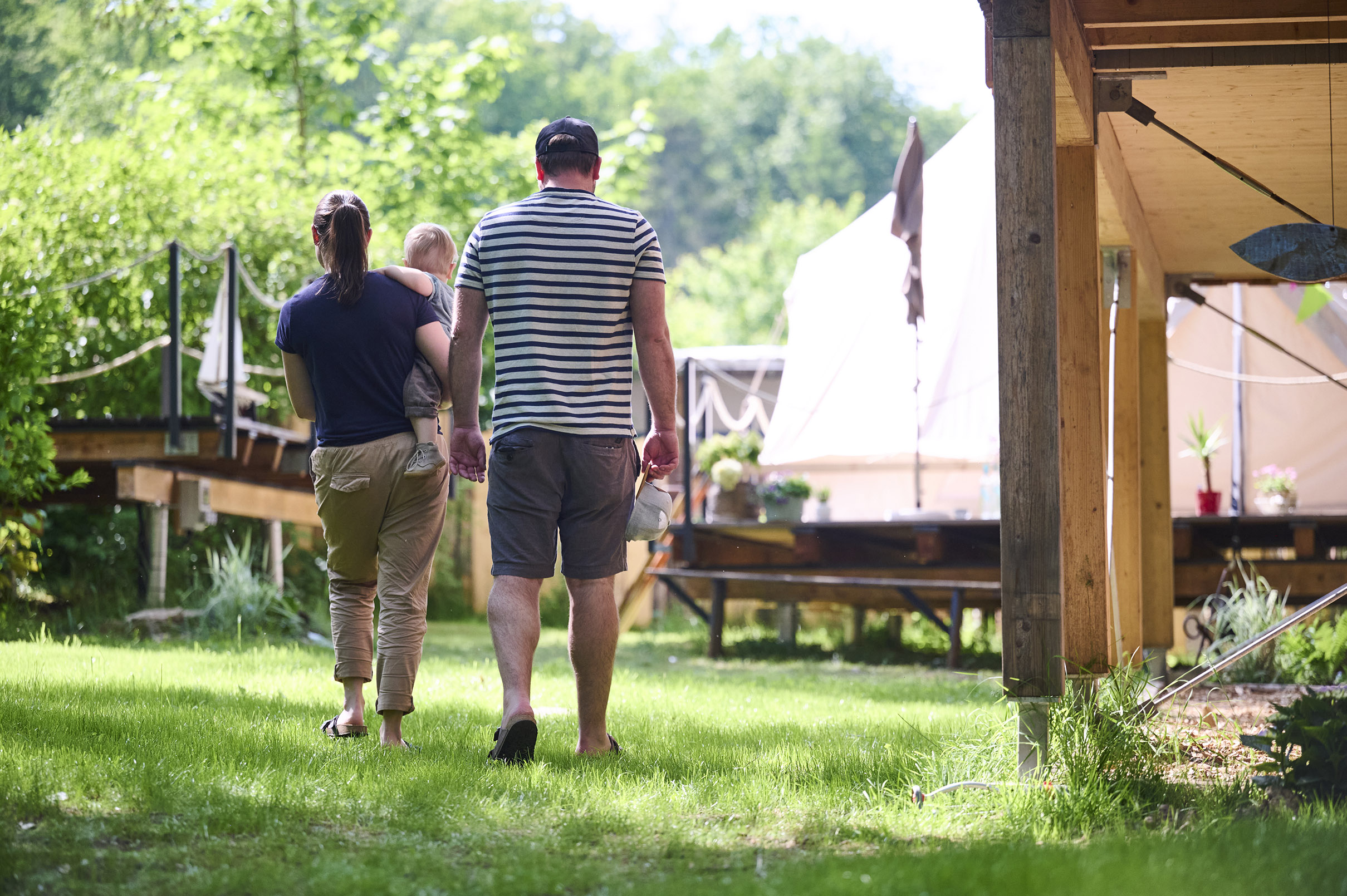 Unser Glampingzelt Heldbergs ist 24 qm groß und eingerichtet mit coolen Möbeln und bequemen Betten. Es gibt eine schöne Terrasse und eigenes Bad mit Waschbecken und Trockentoilette. Zum Duschen geht man in den Sanitärblock oder direkt ins Waldbad. Auch hier ist das Übernachten einfach ein tolles Erlebnis. Wald und Ruhe genießen und mit den Kindern die Natur erkunden. Mit einem Zustellbett ist auch immernoch genügend Platz in diesem großen Zelt. Das Zelt steht erhöht auf einem Holzpodest und ist beschattet von großen Bäumen.
