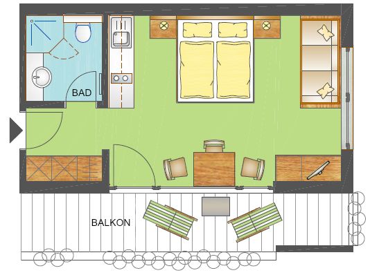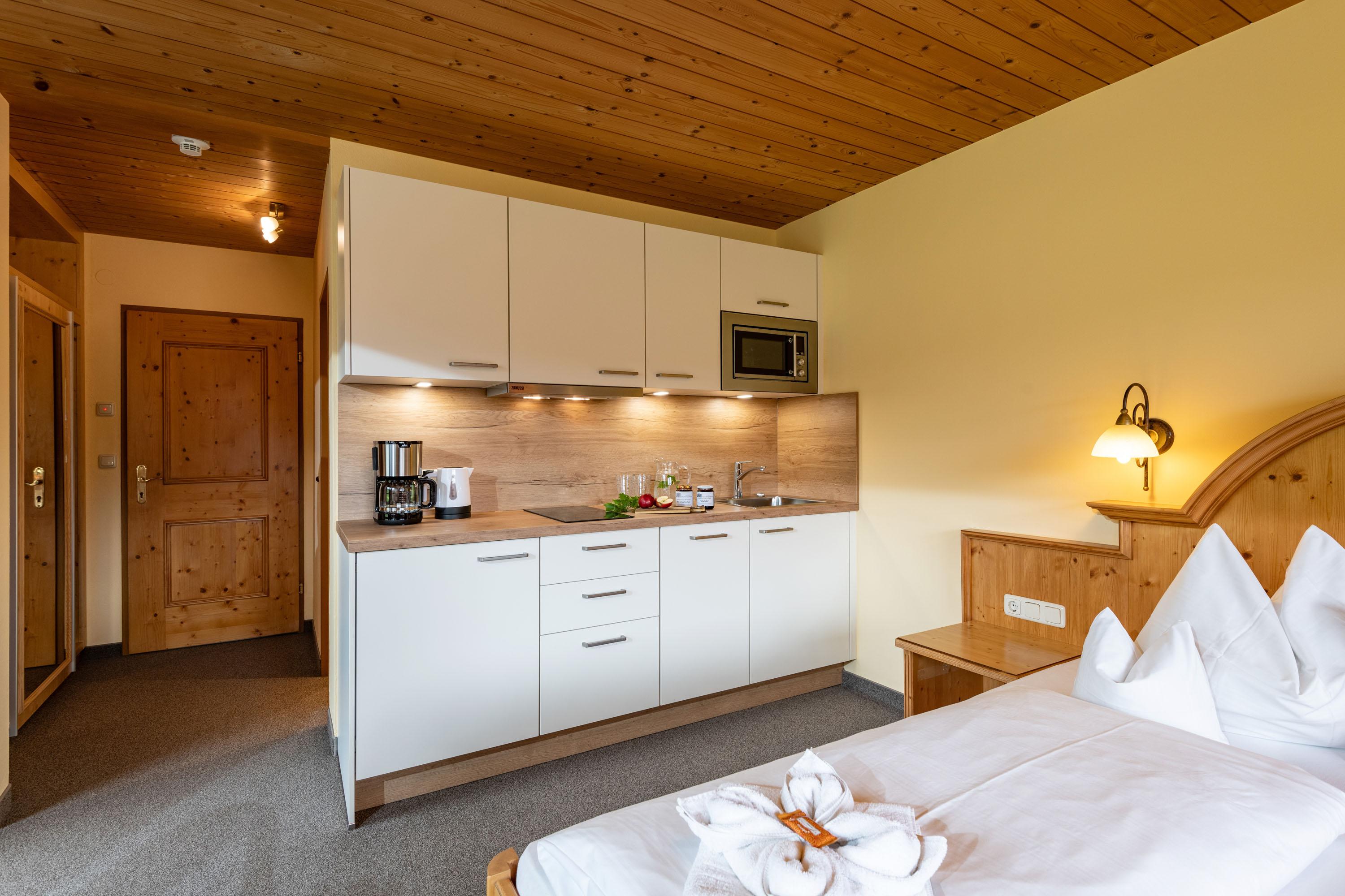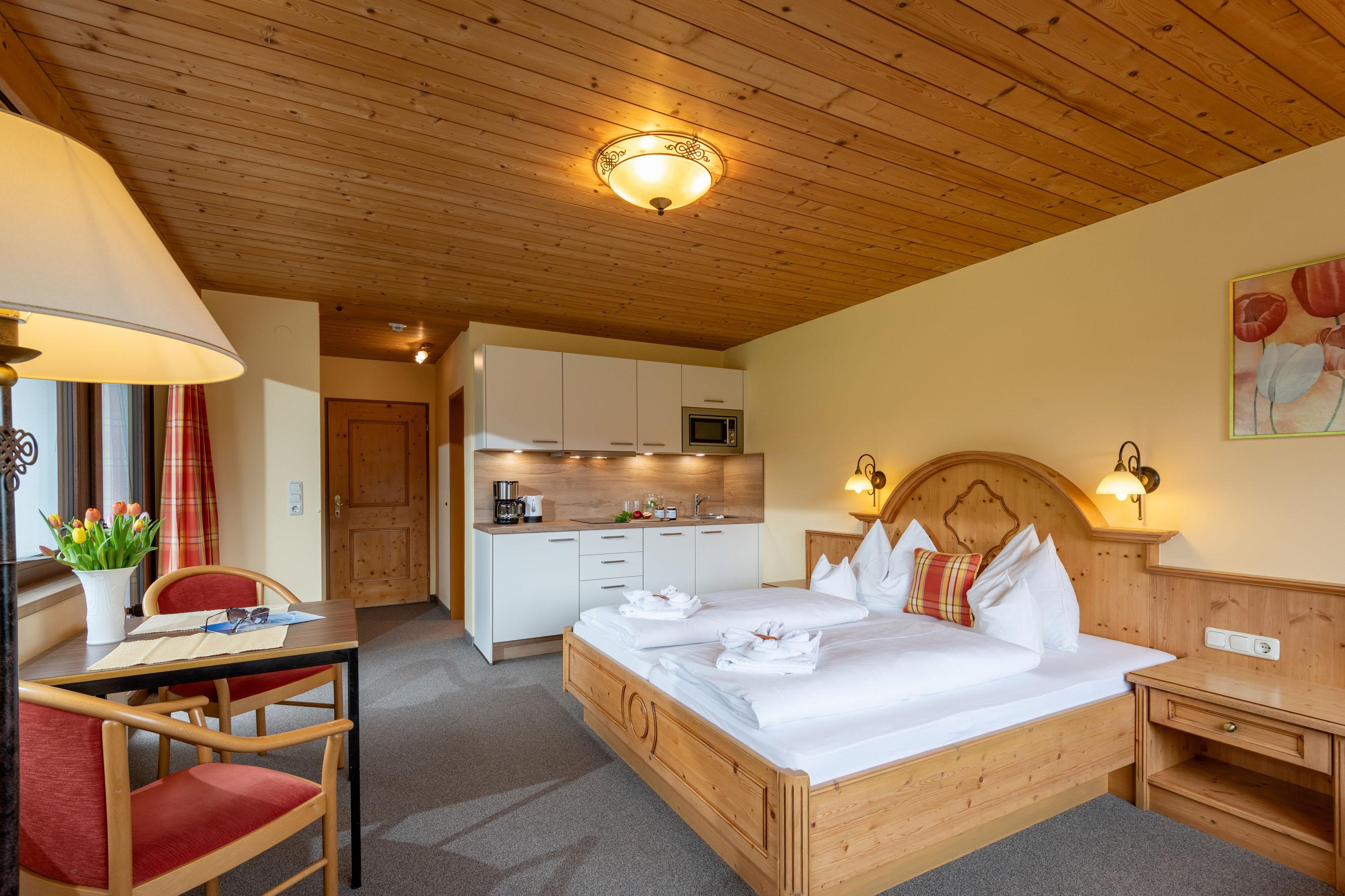 Studio 4 mit 30² geeignet für 1-3 Personen, modern ausgestattete Ferienwohnung mit Balkon. Zimmerservice bzw. Zwischenreinigung auf Anfrage. Buchbar mit Frühstücksbuffet oder Halbpension.