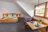 Zimmer Goldeck ca. 20 m2, Doppelzimmer im 1. Obergeschoss mit Dusche und WC, südseitig, Balkon, Nespressomaschine, keine Kochmöglichkeit vorhanden