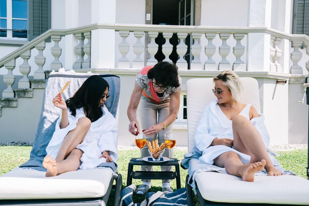 Im Innenbereich erwartet die Gäste eine Vielzahl an Annehmlichkeiten, die jedermanns Aufenthalt so angenehm wie möglich machen sollen. Es gibt eine private Bibliothek mit Balkonzugang, einen Frühstücks- und Aufenthaltsraum mit direktem Zugang zum Garten. Für Unterhaltung ist ebenfalls gesorgt: Ein TV-Raum und eine Hausbar, inklusive einer Auswahl an gekühlten Getränken und Snacks, stehen zur Verfügung. Workshops, Seminare und Sitzungen können im kleinen Konferenzraum mit moderner Präsentationstechnik für bis zu 10 Personen durchgeführt werden. Das Wohnzimmer lädt mit einem Esstisch für bis zu 12 Personen und einer gemütlichen Frühstücksecke zum Verweilen ein.