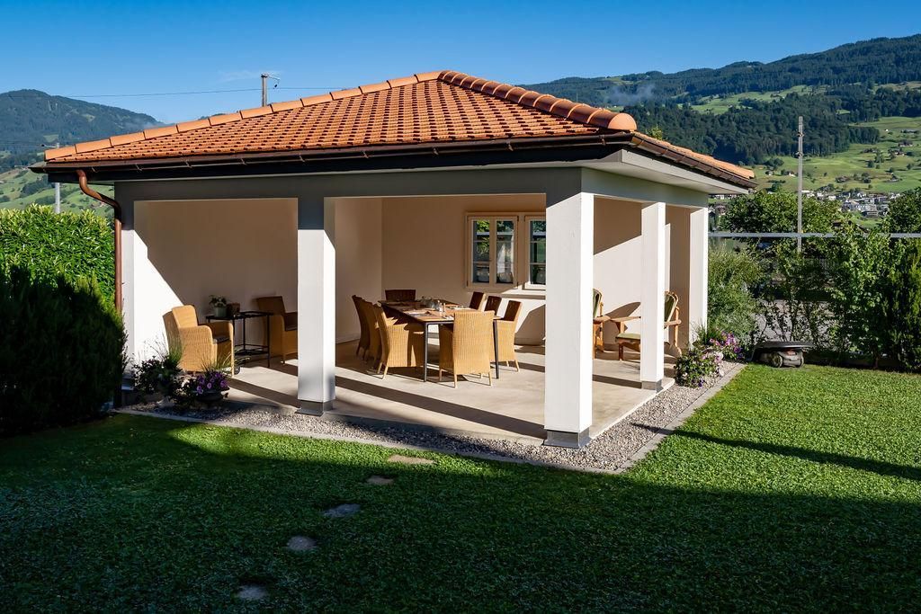 Auch der Außenbereich des Anwesens überzeugt mit beeindruckenden Features. Eine geräumige Gartenlaube bietet die Möglichkeit, in den wärmeren Monaten das Frühstück im Freien zu genießen oder in der kühlen Brise ein Buch zu lesen. Für Gäste, die mit dem Auto anreisen, gibt es drei kostenlose Parkplätze direkt am Haus sowie zwei zusätzliche Parkmöglichkeiten in der benachbarten Einstellhalle gegen Gebühr.