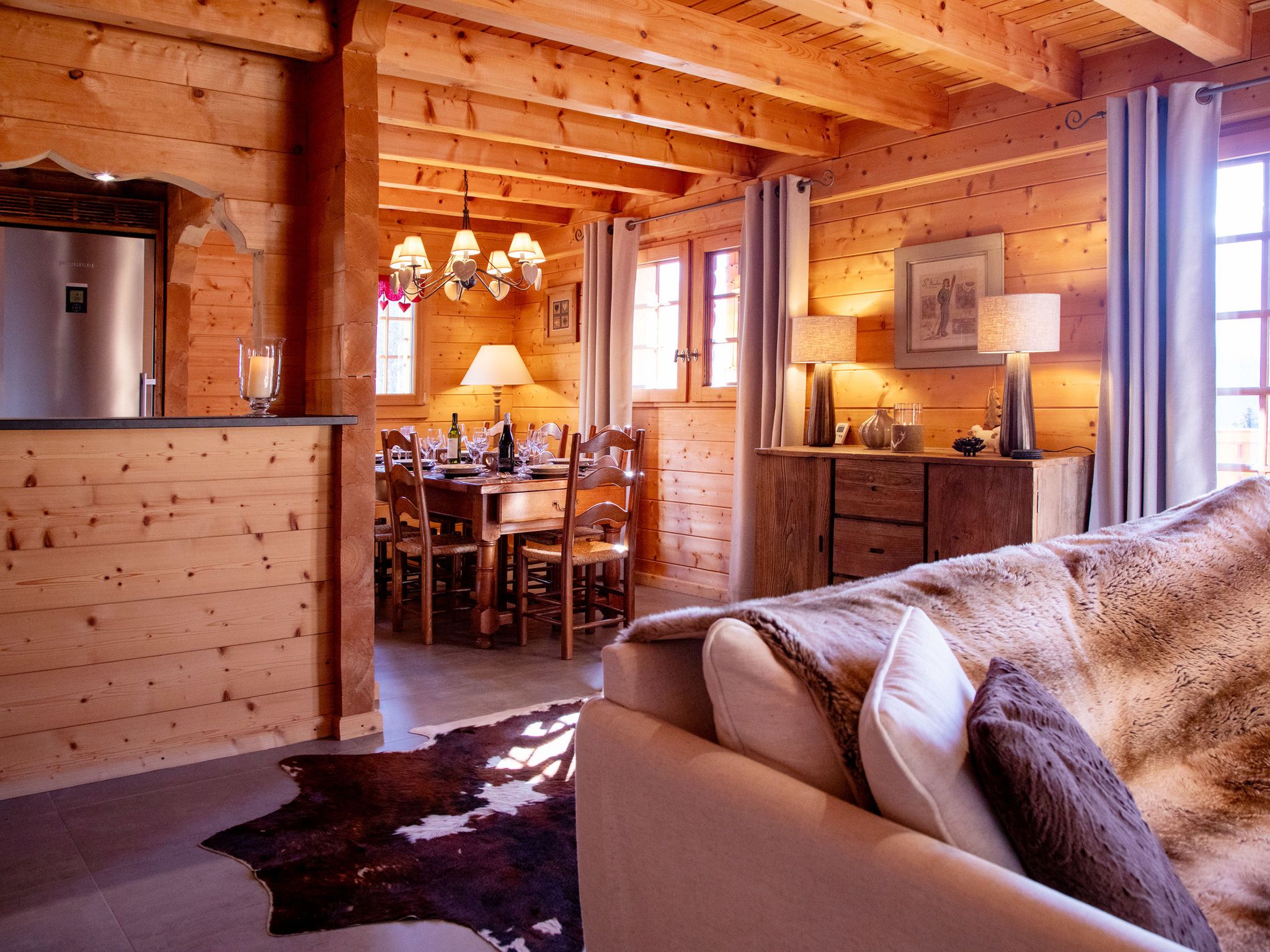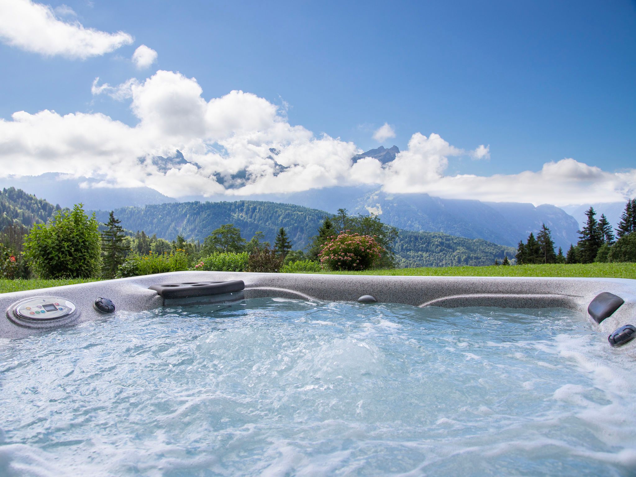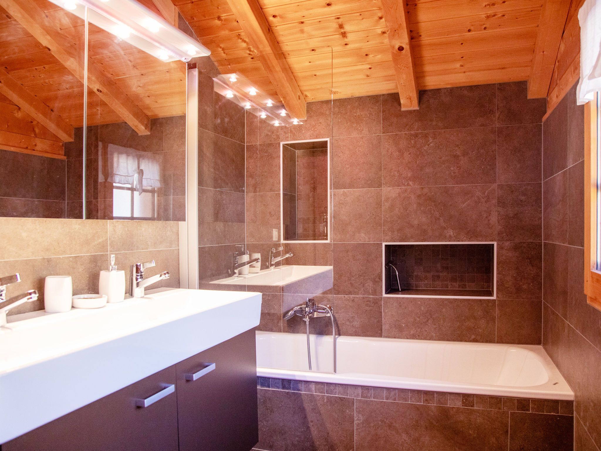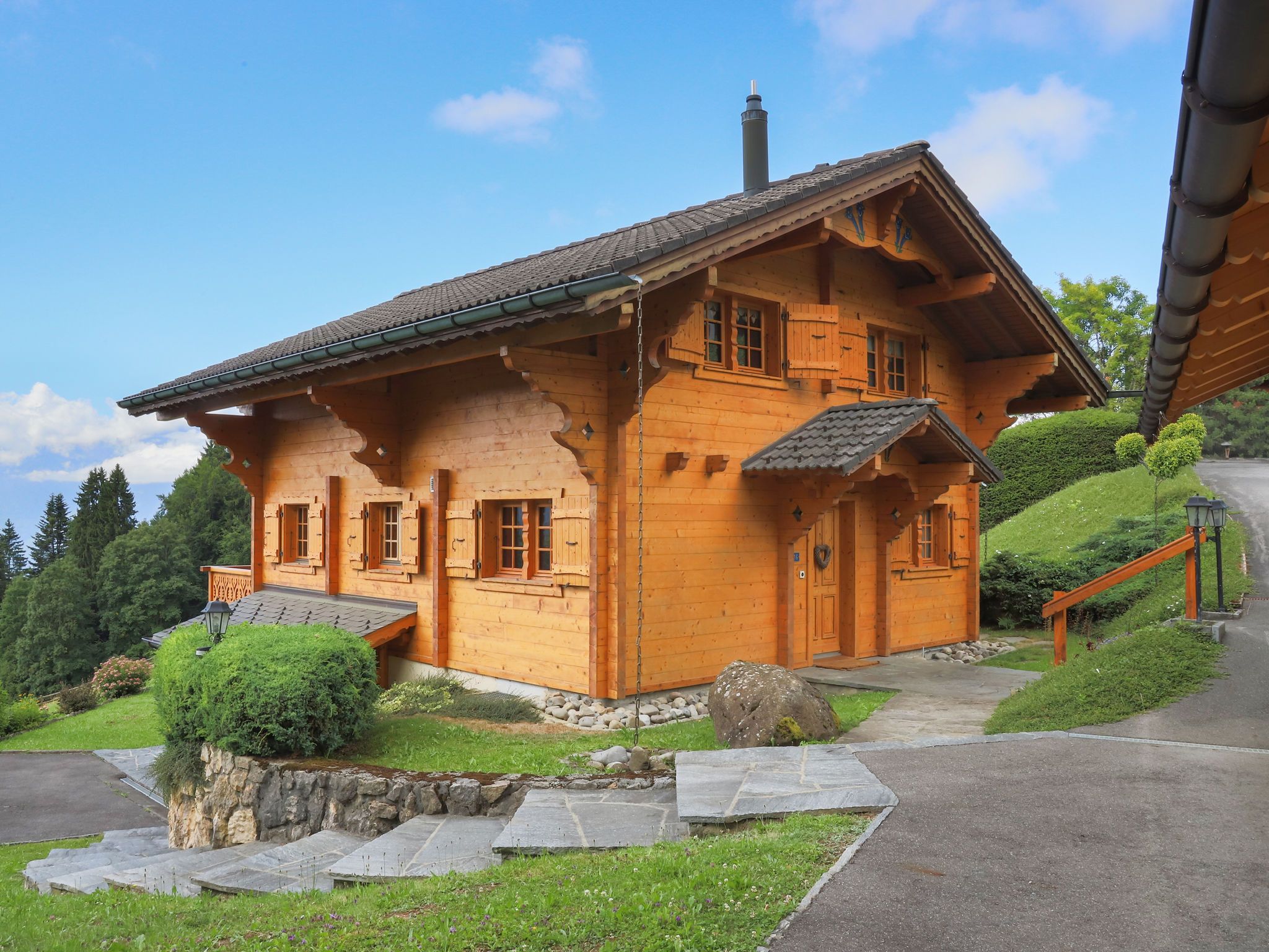 Chalet Nirvana, 7-Zimmer-Chalet 200 m2 auf 3 Stockwerken, Südlage. Objekt geeignet für 6 Erwachsene + 2 Kinder. Sehr komfortabel und geschmackvoll eingerichtet: Wohn-/Esszimmer mit offenem Kamin, Esstisch und TV (Flachbildschirm). Ausgang zum Balkon. Salon. Offene Küche (Backofen, Geschirrspüler, 6 Induktionskochplatten, Toaster, Wasserkocher, Tiefkühler, elektrische Kaffeemaschine, Kapseln für die Kaffeemaschine (Nespresso) extra, Dampfgarer, Racletteofen). Dusche/WC. Unteres Geschoss: Salon mit TV (Flachbildschirm). Ausgang zum Garten, Richtung Süden. 1 Zimmer, ohne Schrank mit 1 Doppelbett (1 x 160 cm). Ausgang zum Garten, Richtung Süden. Dusche/WC. Obergeschoss: 1 Zimmer mit 1 Doppelbett (1 x 180 cm). Ausgang zum Balkon, Richtung Süden. 1 Kinderzimmer mit 2 Betten (90 cm, Länge 190 cm). 1 Zimmer mit 1 franz. Bett (1 x 160 cm). Ausgang zum Balkon, Richtung Süden. Bad/WC. Grosser Balkon, Südlage, kleiner Balkon, Südlage, grosser, Garten, Südlage. Balkonmöbel, Gartengrill, Liegestühle. Sehr schöne Sicht auf die Berge. Zur Verfügung: Waschmaschine, Wäschetrockner, Haartrockner. Internet (WLAN, gratis). Parkplatz, Garage (1 Auto). E-Ladestation. Bitte beachten: Nichtraucher-Haus.
