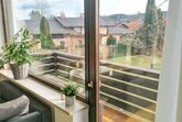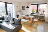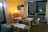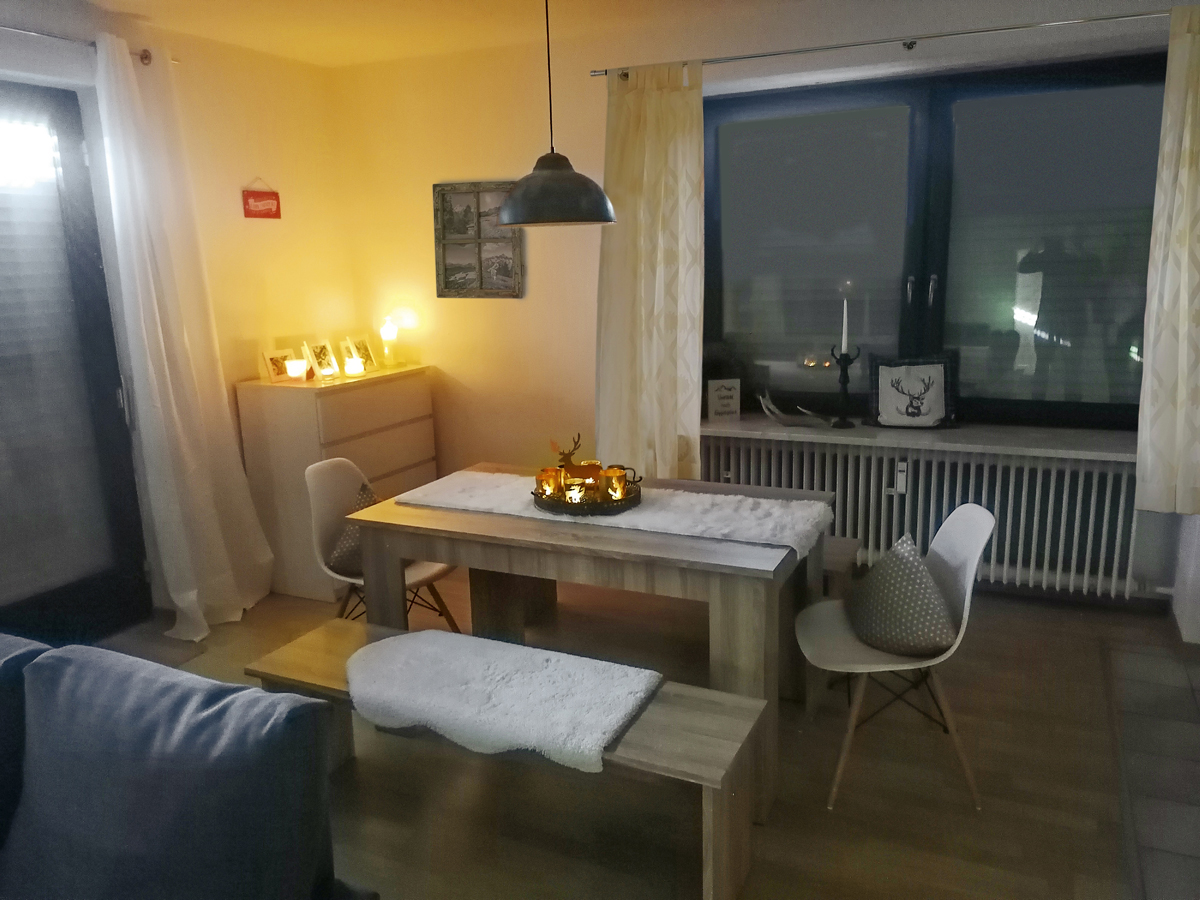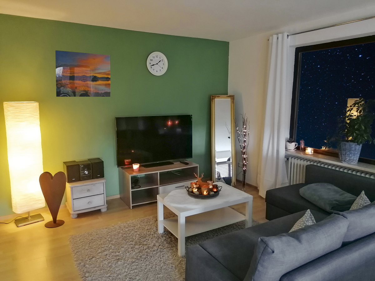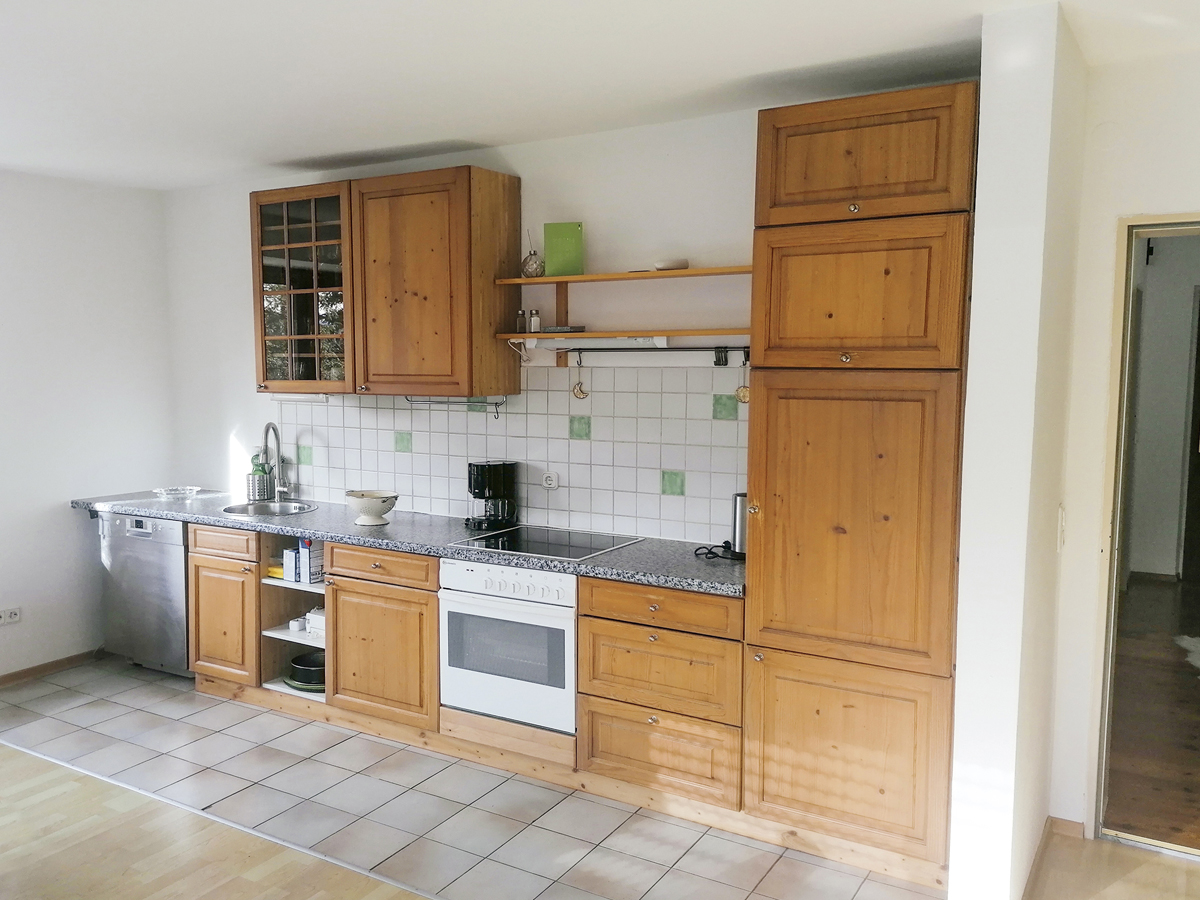 Wohnküche: Backofen - Kühlschrank - Spülmaschine, Essecke - Sofa ausziehbar (Bettfunktion), Fernseher - Netflix - Wlan-Router, Südbalkon mit Bergblick