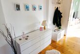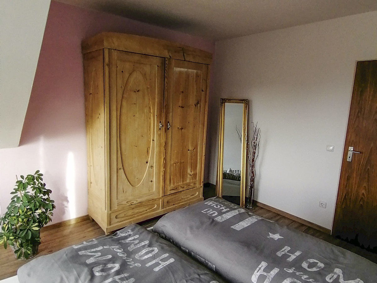 Schlafzimmer: Doppelbett 160 x 200 cm, Schrank, Kommode, Bettwäsche