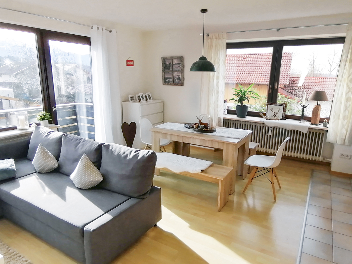 Unsere Ferienwohnung Lechner liegt ruhig und trotzdem zentral gelegen mitten in Grabenstätt im Haus Bittmann, 1. Stock. Gaststätten und Geschäfte können ohne Auto erreicht werden. Auf 55 qm gibt´s ein Schlafzimmer, ein Bad und eine große, helle Wohnküche mit Südbalkon inklusiv Bergblick. Gerne können Sie auch unseren Garten benutzen. Parkplatz direkt vorm Haus.