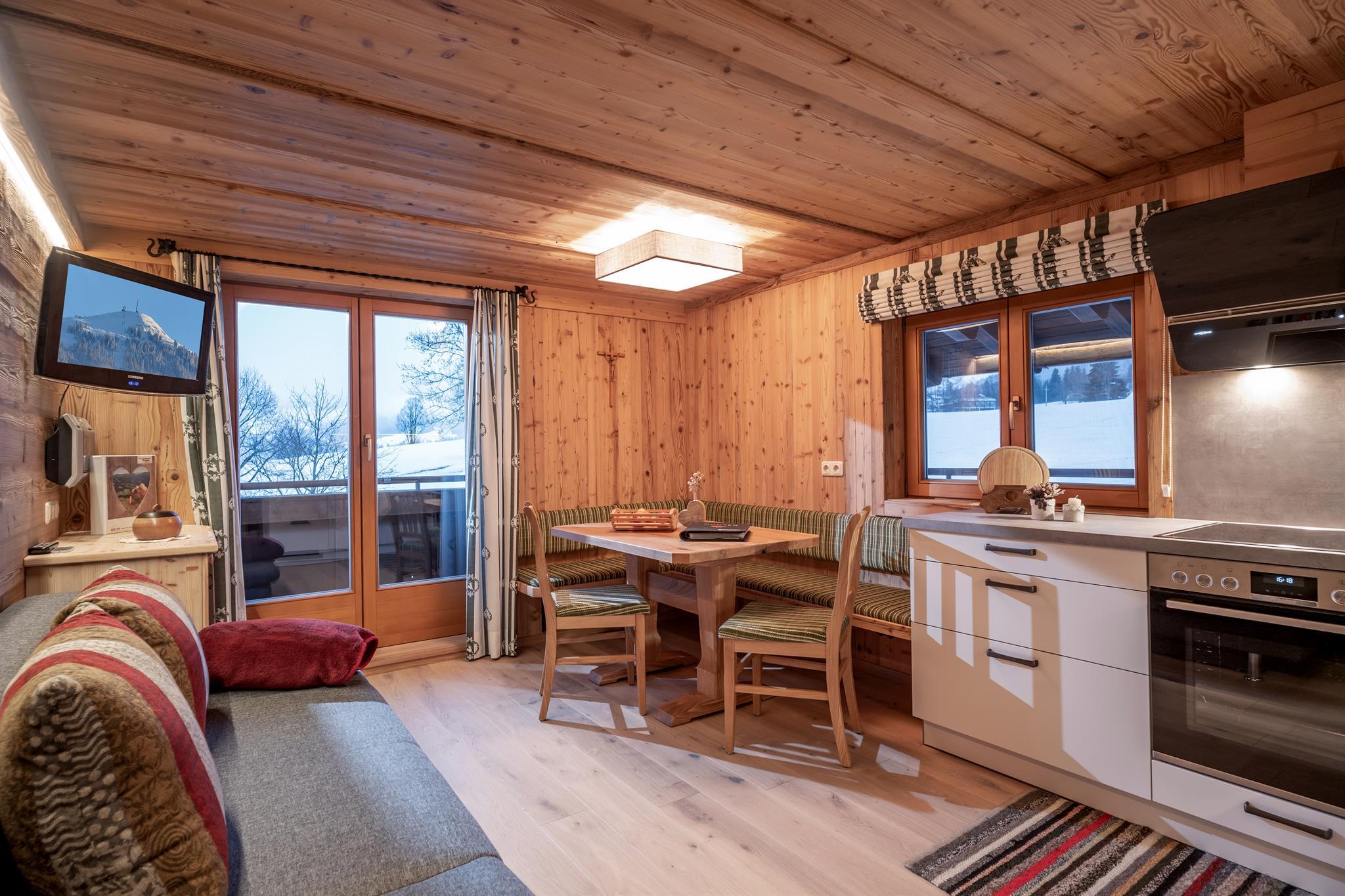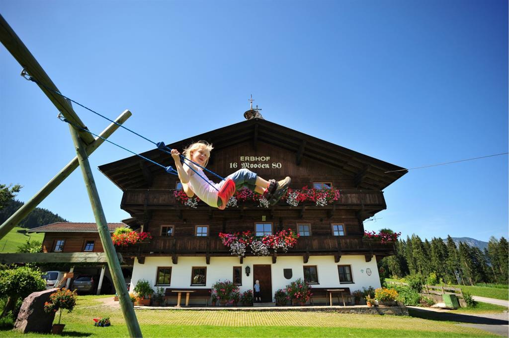 Ruhige, verkehrsarme Lage - Sonnenplateau mit herrlicher Aussicht ins Brixental. Holzmöbel im ländlichen Stil, großer Balkon. Komfortabel eingerichtete Appartements für einen Urlaub zum Wohlfühlen. Im Sommer Ausflüge auf die Alm mit Käseerzeugung. Hofeigene Bio-Produkte. Miterleben des bäuerlichen, familiären Lebens. Erbhof seit über 400 Jahren. Großer Spielplatz mit Liegewiese - einfach Ruhen und die Seele baumeln lassen - Urlauben und Erhohlen