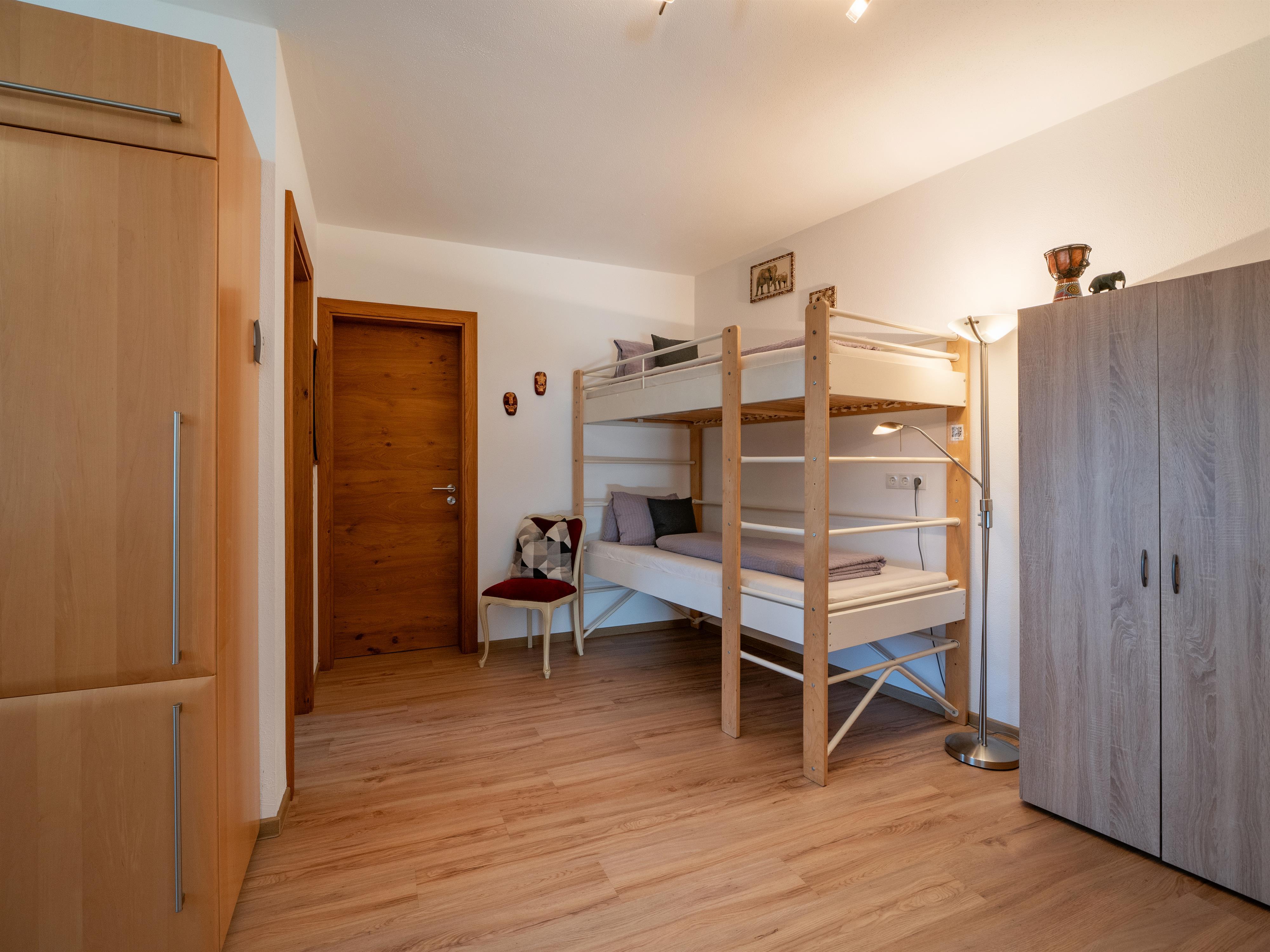 Die helle 65 m² Wohnung bietet ein Schlafzimmer mit Doppelbett, ein Schlafzimmer mit Stockbett und eine ausziehbare Couch für 1 Erwachsenen oder 2 Kinder. Das Appartement verfügt außerdem über eine sehr großzügige, voll ausgestattete Küche und ein Bad mit Dusche und WC.