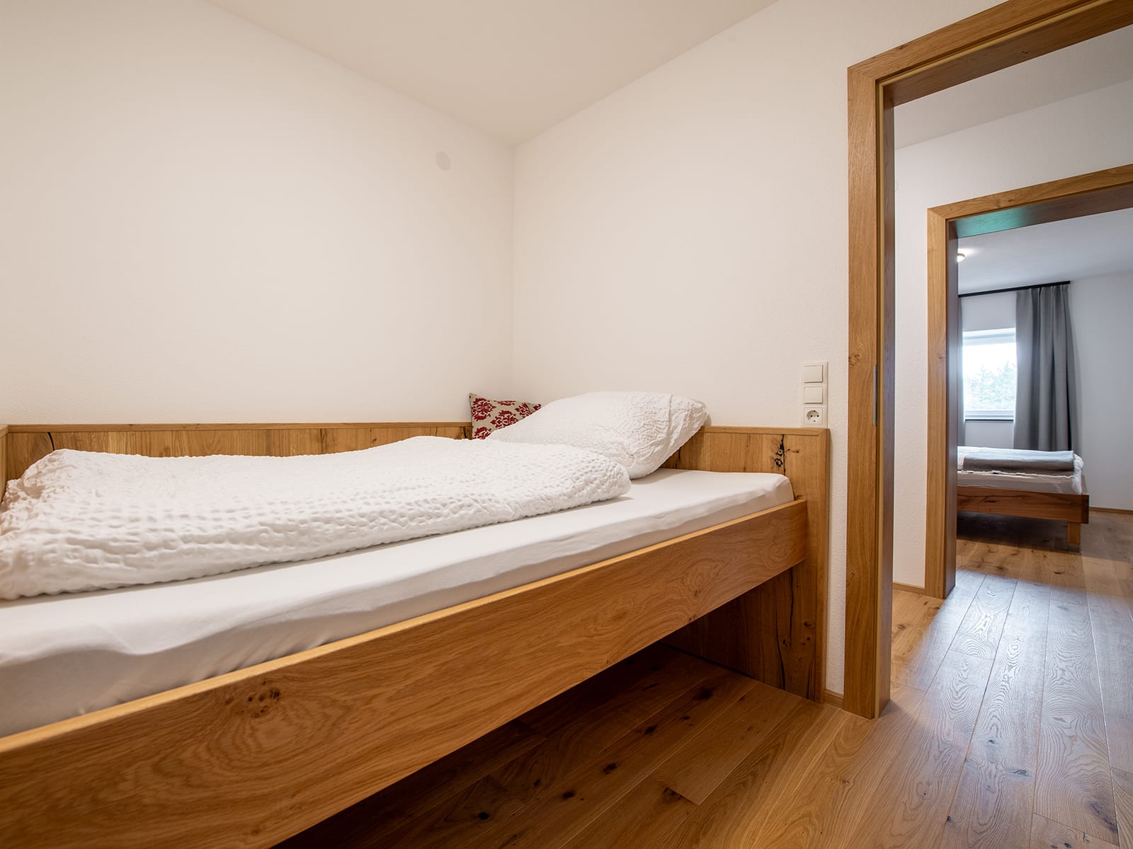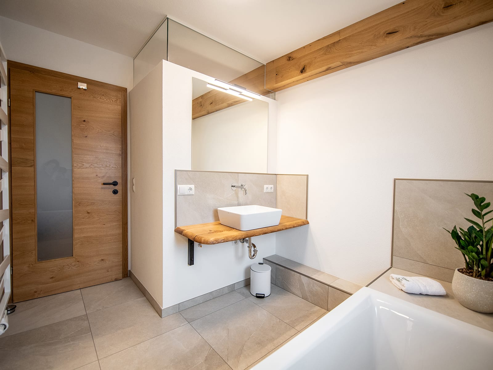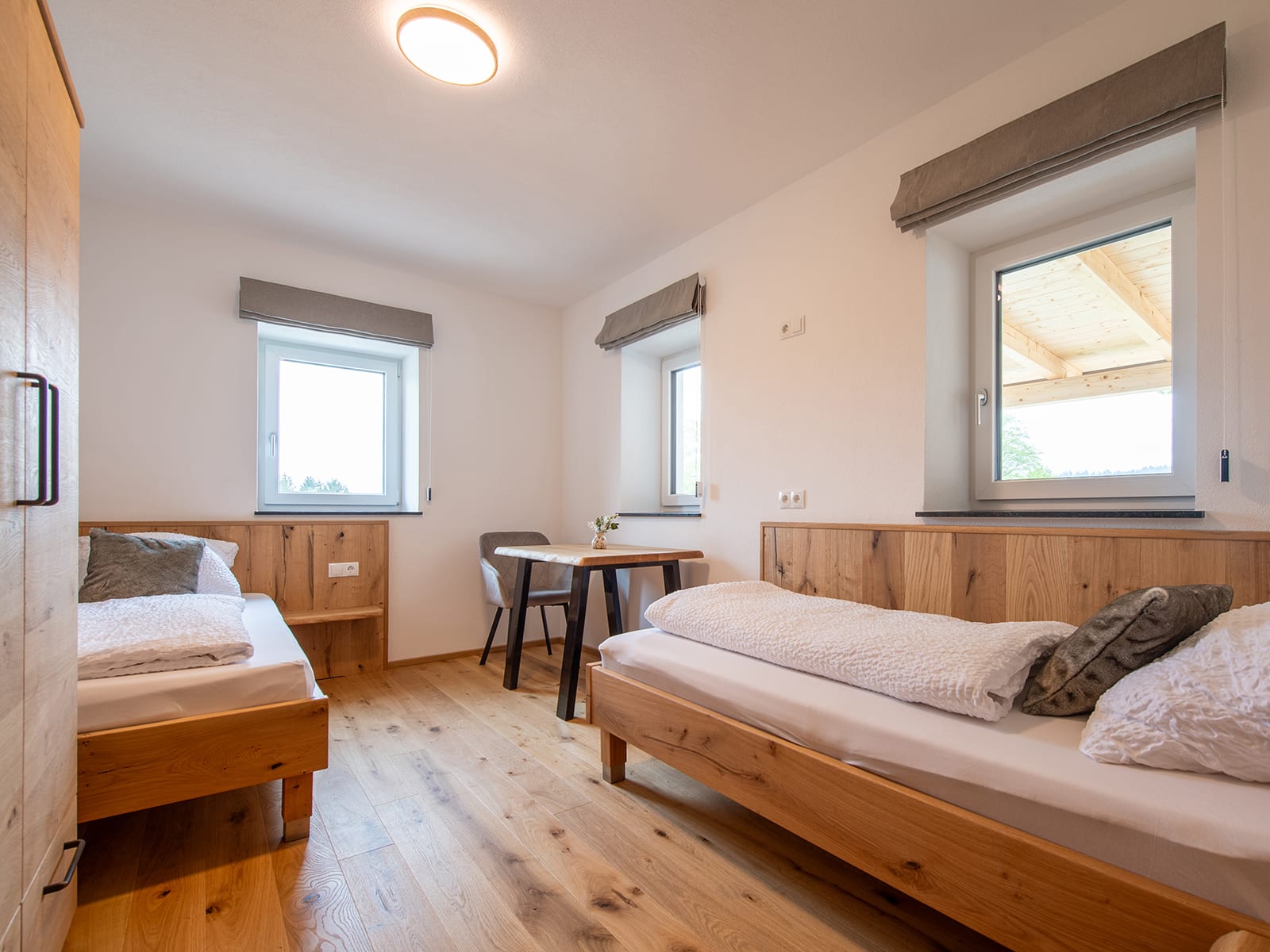 In unserem Bauernhaus, das auf eine 200-jährige Geschichte zurückblickt, haben wir mit viel Liebe zum Detail und Leidenschaft für natürliche Materialien drei ganz neue Ferienwohnungen eingerichtet. Nachhaltigkeit trifft Handwerkskunst: Echte Holzböden sorgen für ein Wohlfühl-Ambiente. Holz, das unser Opa selbst im eigenen Wald geschlägert und Jahrzehnte lang auf dem Dachboden gelagert hat - wir haben diesen Schatz gehoben. Die Waschtische im Bad wurden beispielsweise daraus vom Tischler in Handarbeit gefertigt. Es sind echte Unikate! Das Holz aus unserem Wald versorgt uns mit wohliger Wärme - dank unserer neuen Hackschnitzelanlage. Mit der PV-Anlage decken wir einen Teil unseres Strombedarfs.