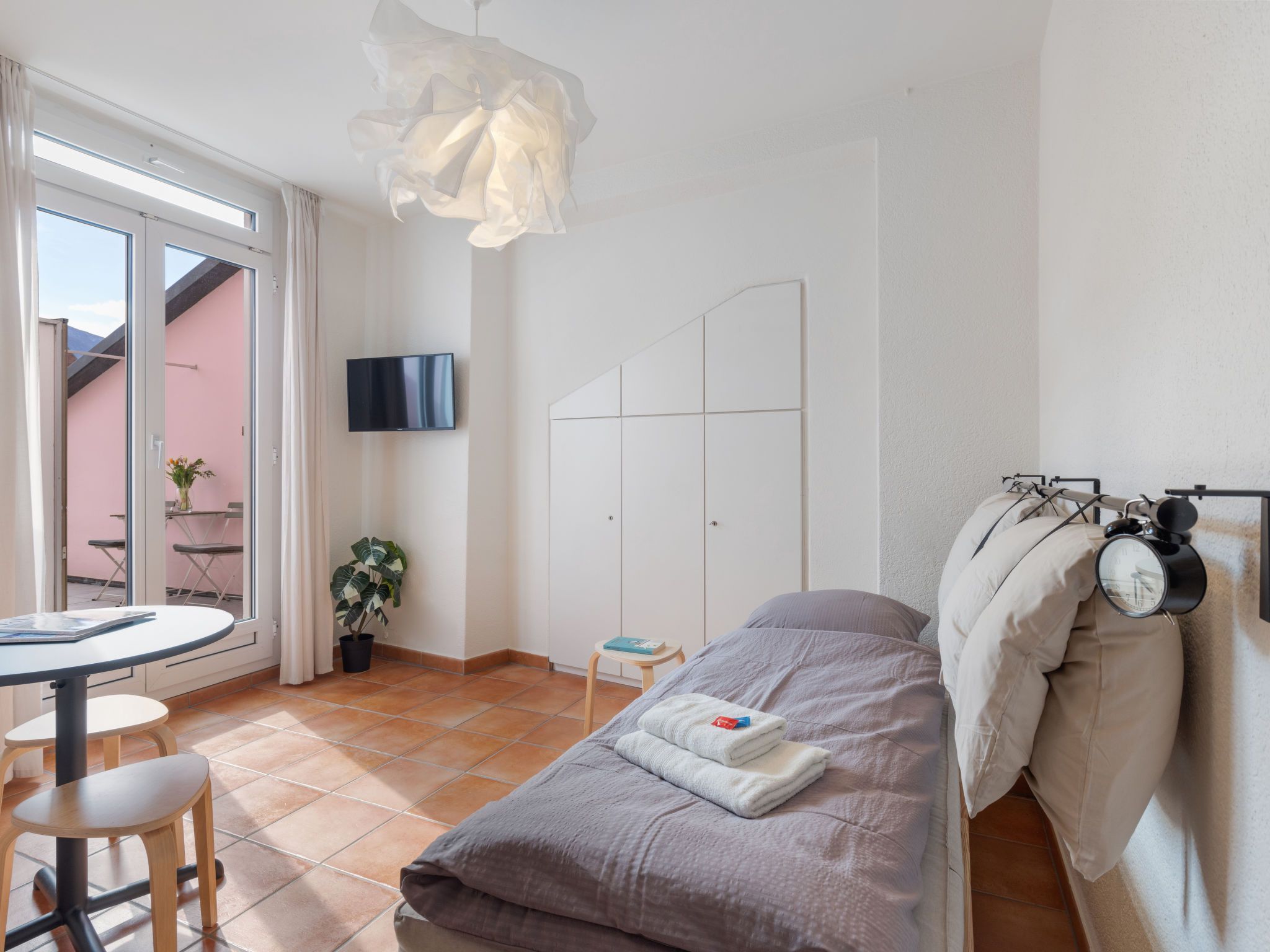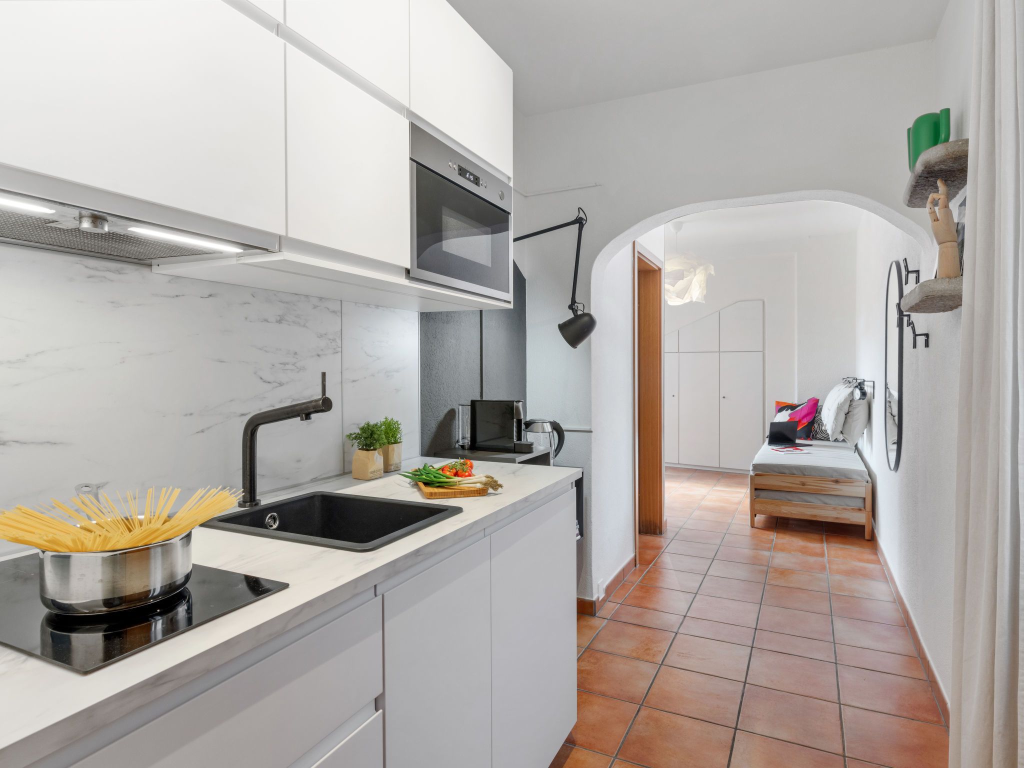 Da Gina Young Ascona, 1-Zimmer-Wohnung 18 m2 im 1. Stock. Objekt geeignet für 2 Erwachsene. Hell im Jahre 2024, modern und gemütlich eingerichtet: offenes Studio mit 2 Betten (90 cm, Länge 200 cm), Flachbildschirm. Ausgang zur Terrasse. Offene Küche (2 Induktionskochplatten, Toaster, Wasserkocher, elektrische Kaffeemaschine, Kapseln für die Kaffeemaschine (Nespresso (extra)) extra, Kombinationsmikrowelle). Dusche/WC. Natursteinboden. Kleine Terrasse 6 m2, Südlage und Ostlage. Terrassenmöbel. Sicht auf die Berge und die Ortschaft. Zur Verfügung: Bügeleisen, Haartrockner. Internet (WLAN, gratis). Bitte beachten: Nichtraucher-Unterkunft. Maximal 1 Haustier/Hund erlaubt. Kein Fahrstuhl. NL-