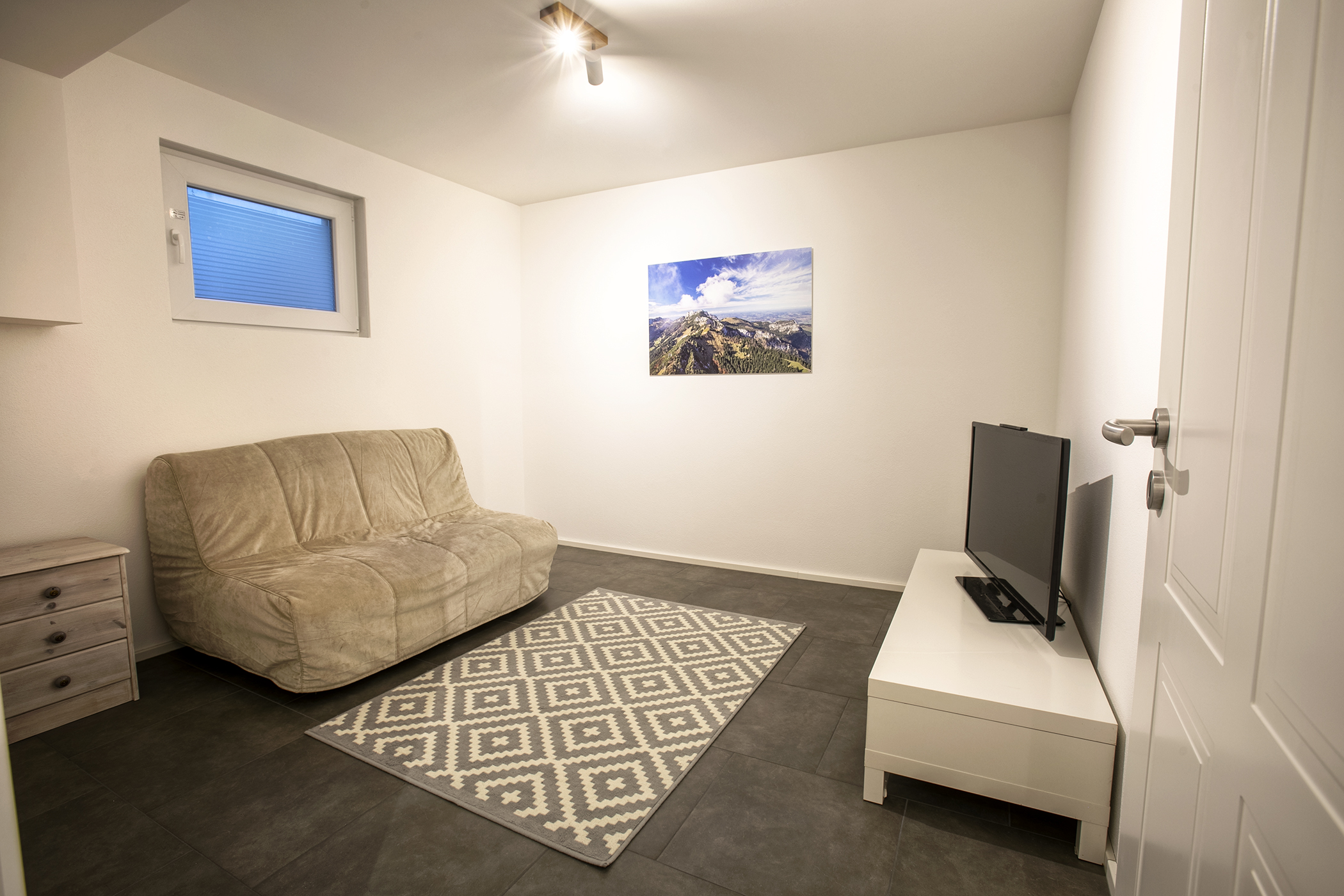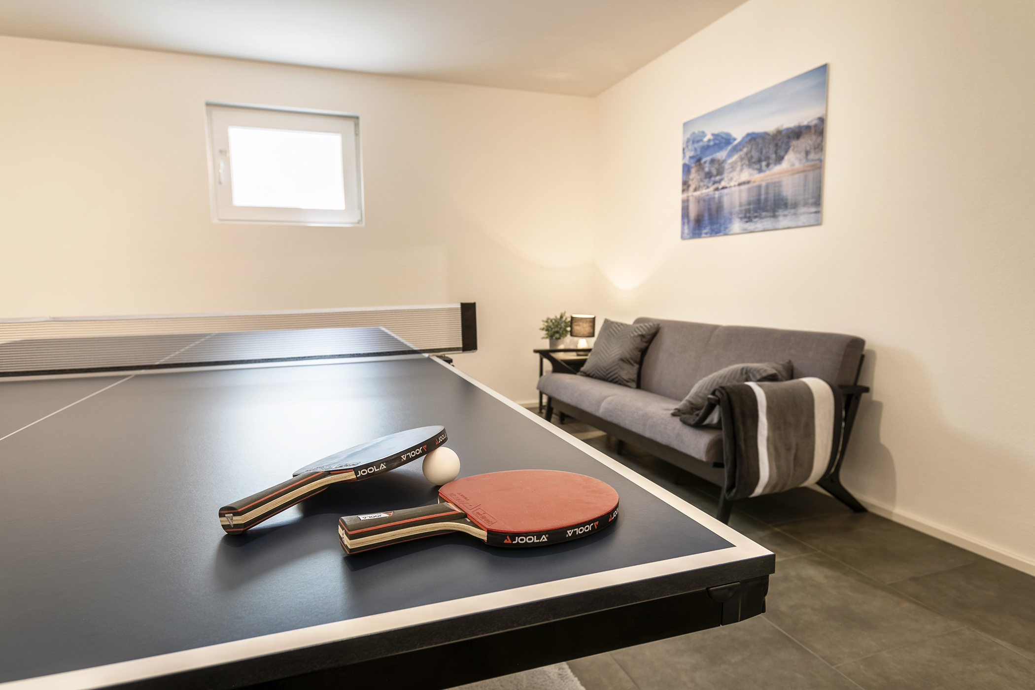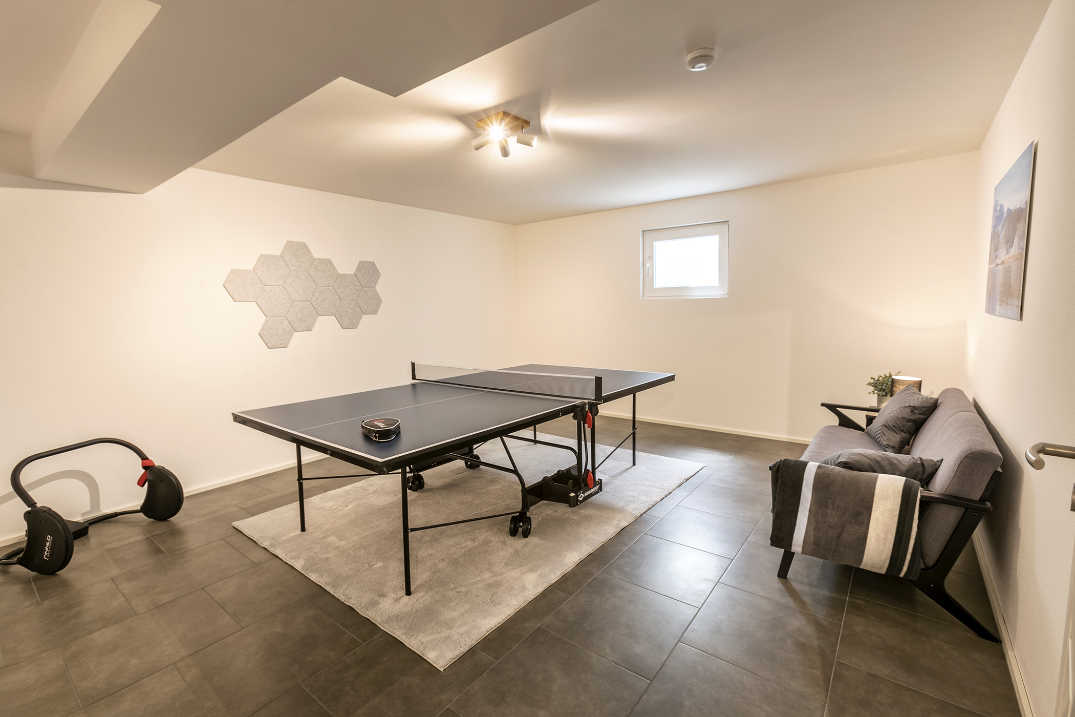Außerdem bietet Ihnen die Wohnung einige Extras im Untergeschoss. Hier im Keller stehen Ihnen eine Tischtennisplatte, ein Leseraum, eine Waschmaschine und ein Fitnesseck zur Verfügung.