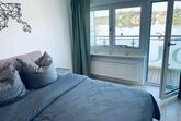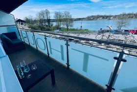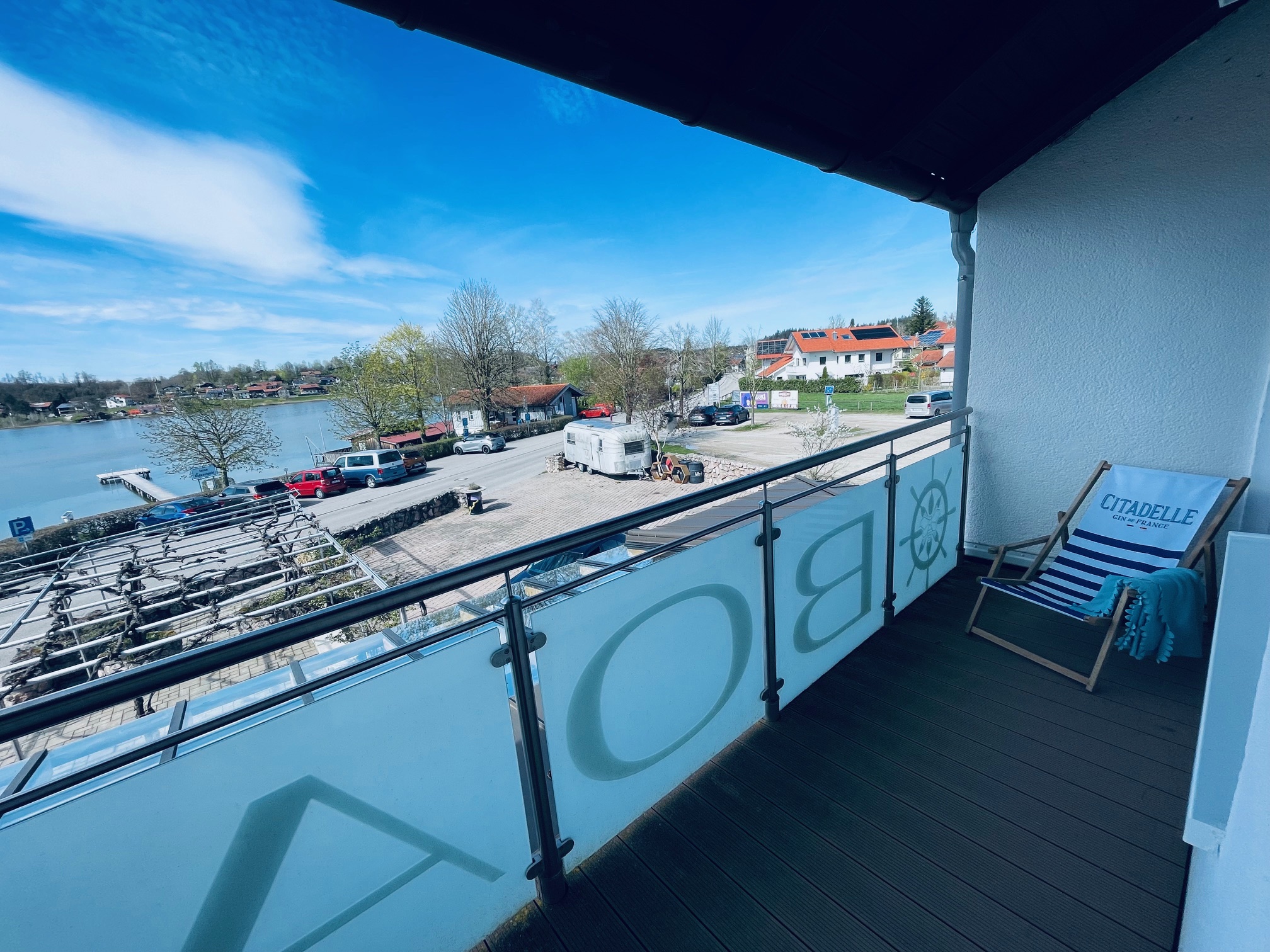 • Balkon: Seeblick mit gemütlicher Sitzecke und Liegestühlen