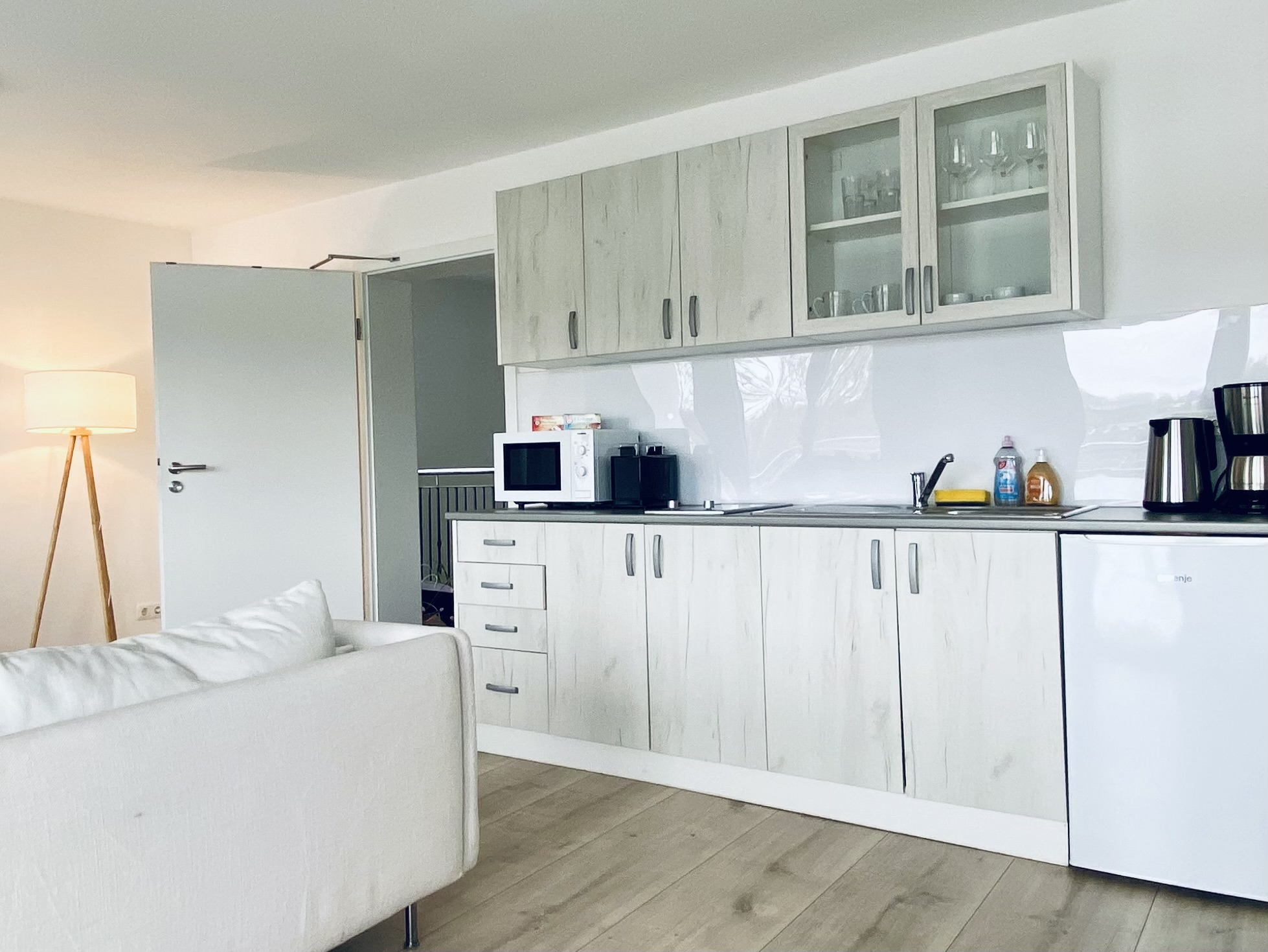 • Kochen: voll ausgestattete Küche mit Toaster, zwei Induktionsplatten, Wasserkocher, Kaffeemaschine und Mikrowelle