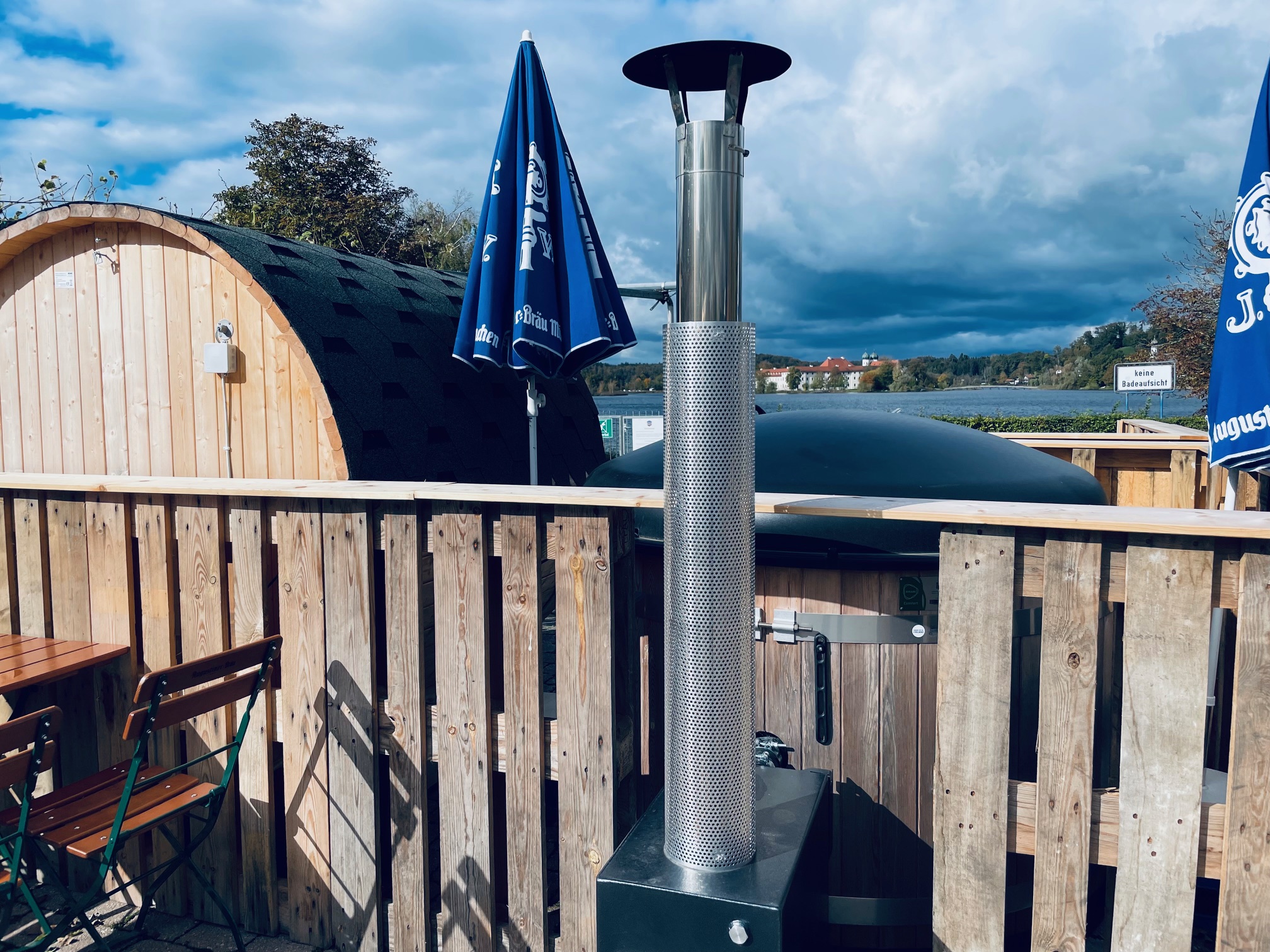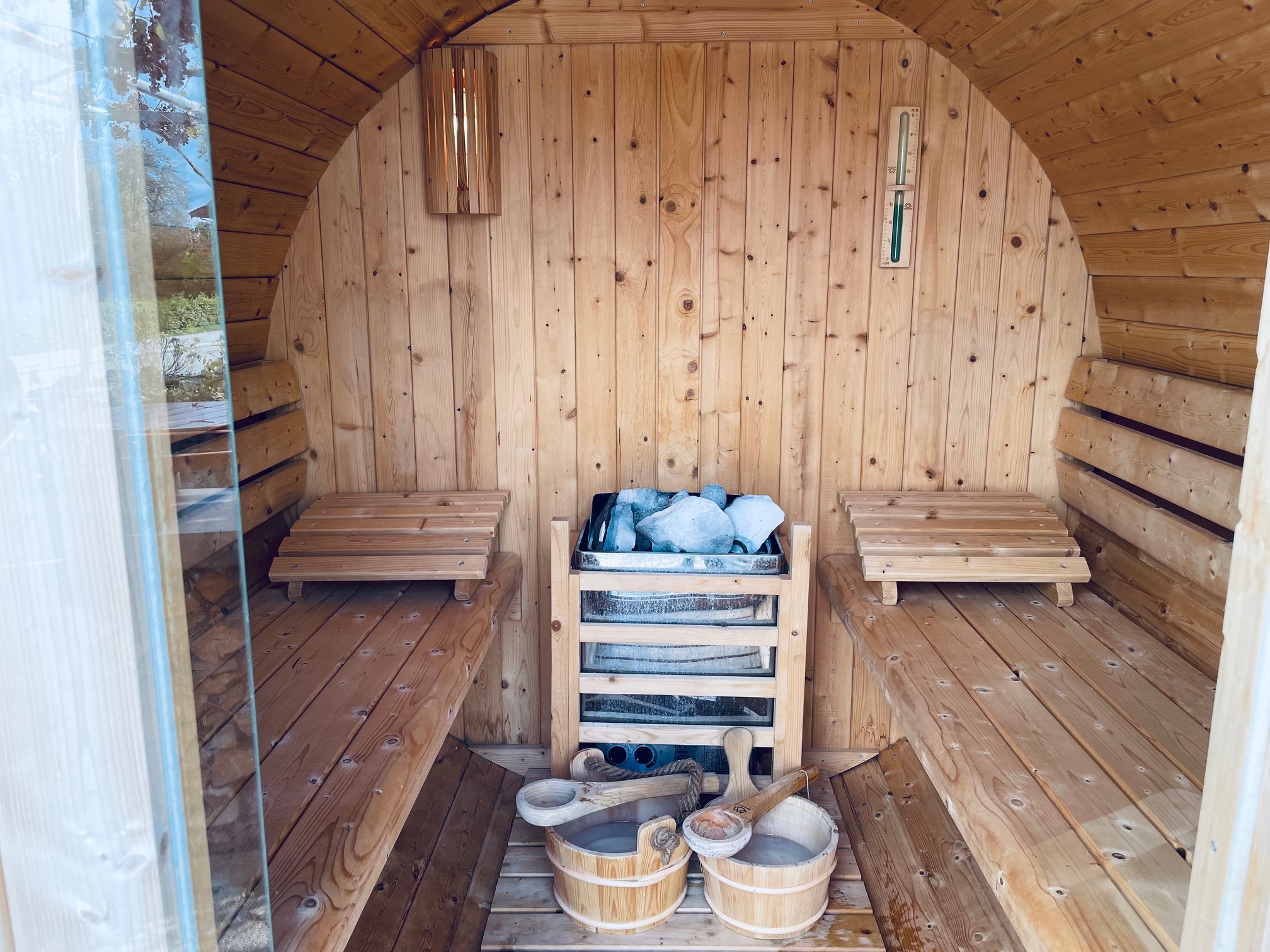 • Sauna für bis zu vier Personen und beheizbarer Badezuber mit Seeblick (gegen Aufpreis).