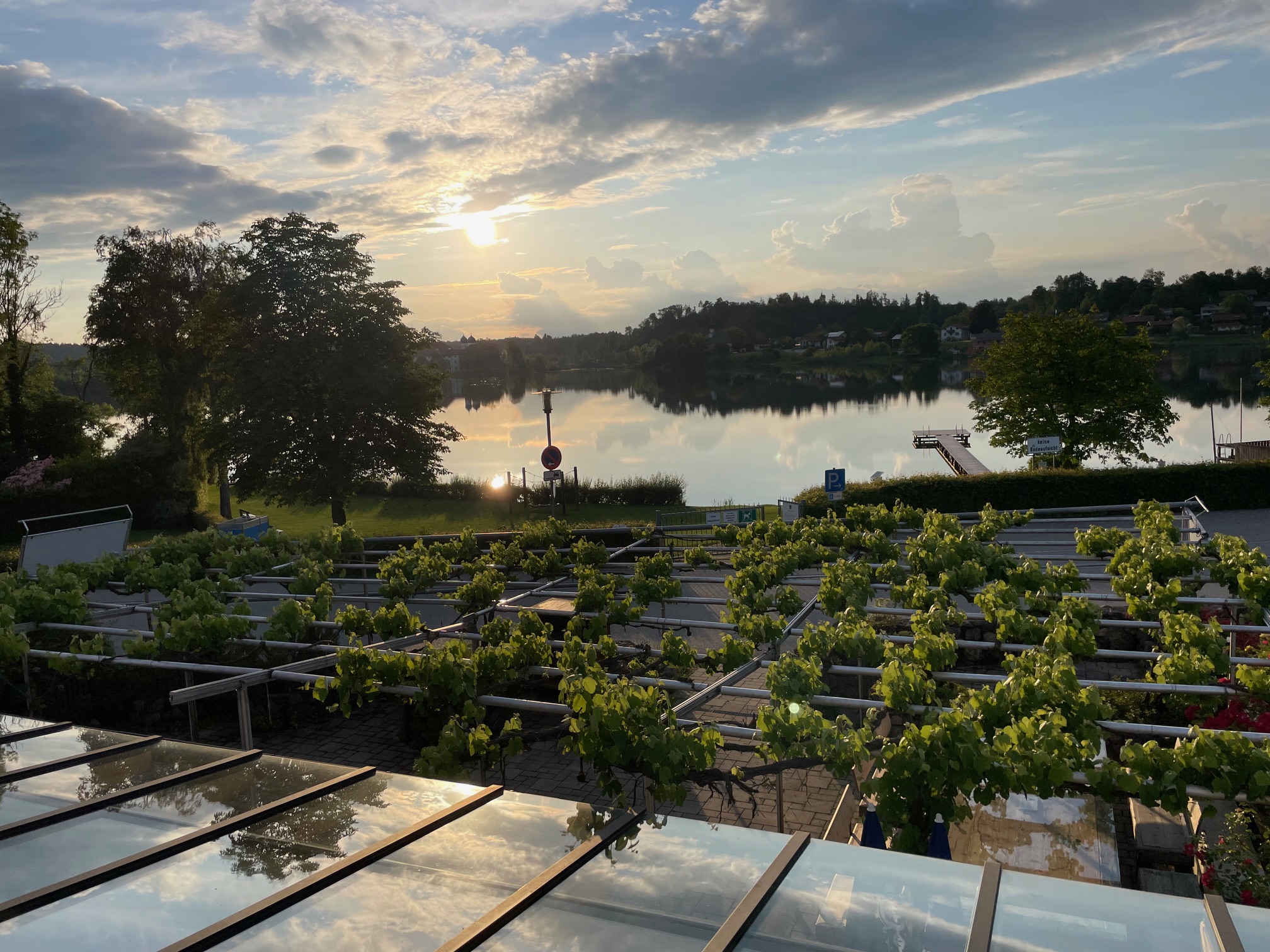 • Beste Aussicht: Blick auf den Klostersee bei abendlichem Sonnenuntergang.