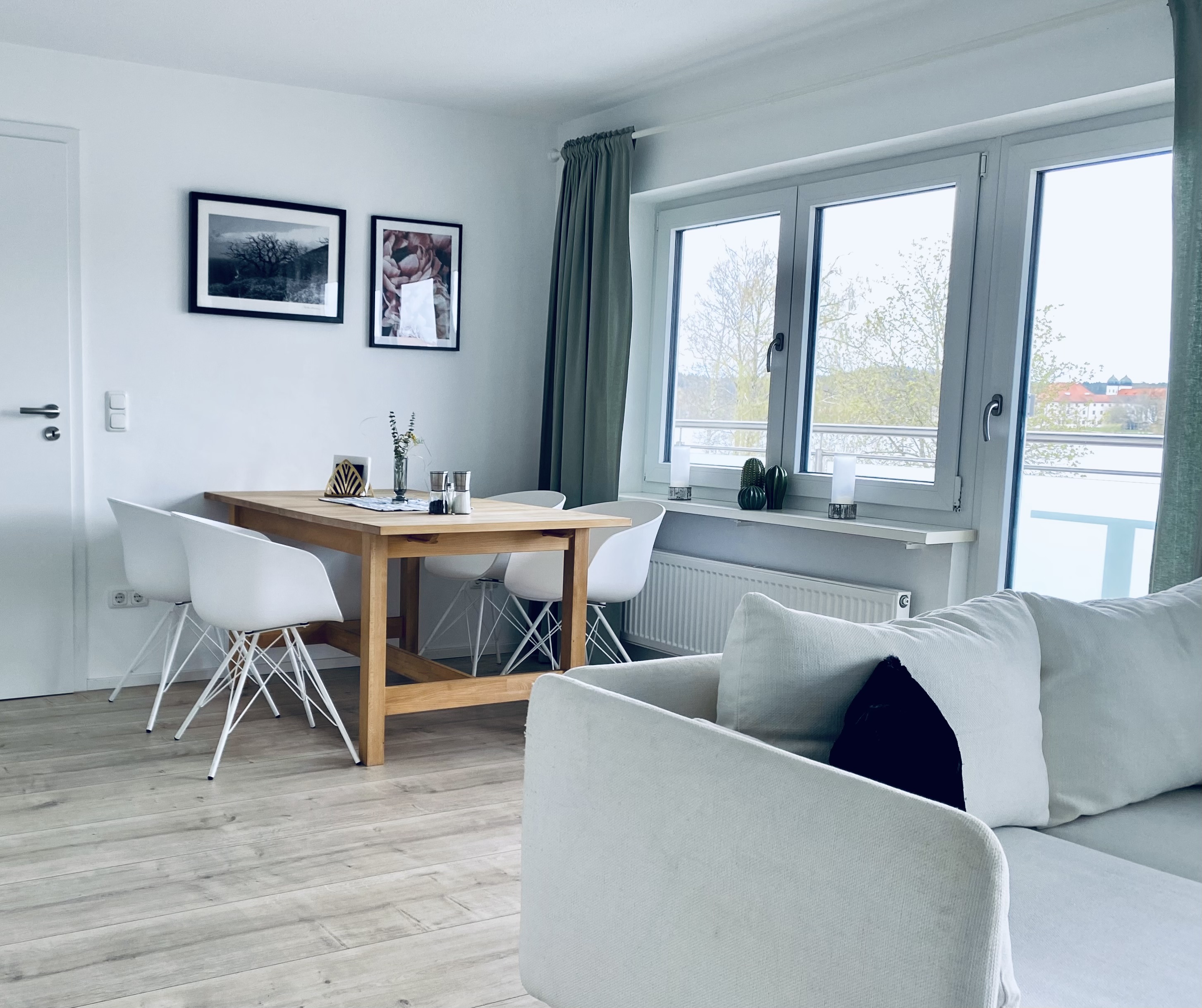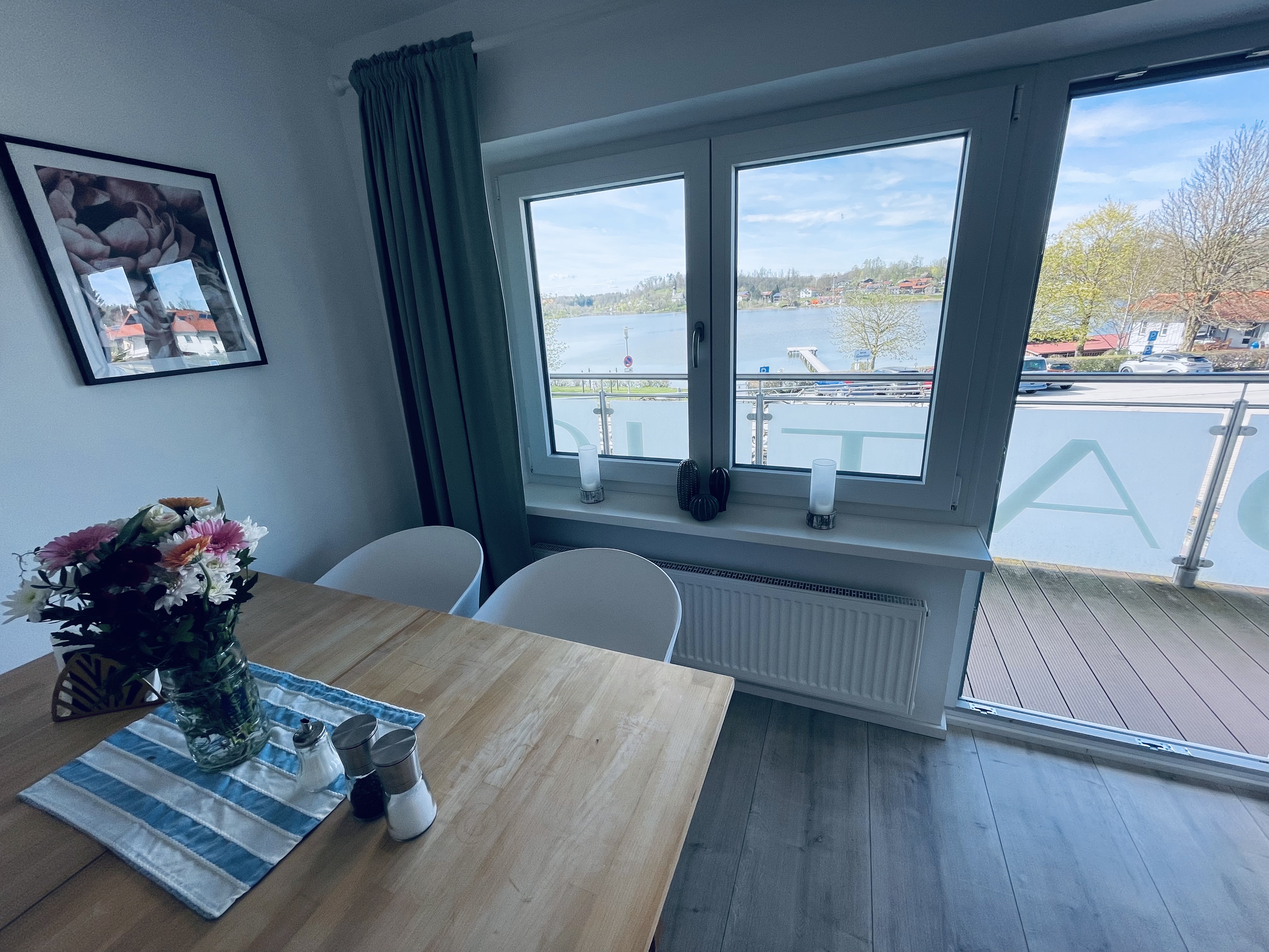 • Essen: gemütlicher Esstisch mit vier Stühlen und Seeblick