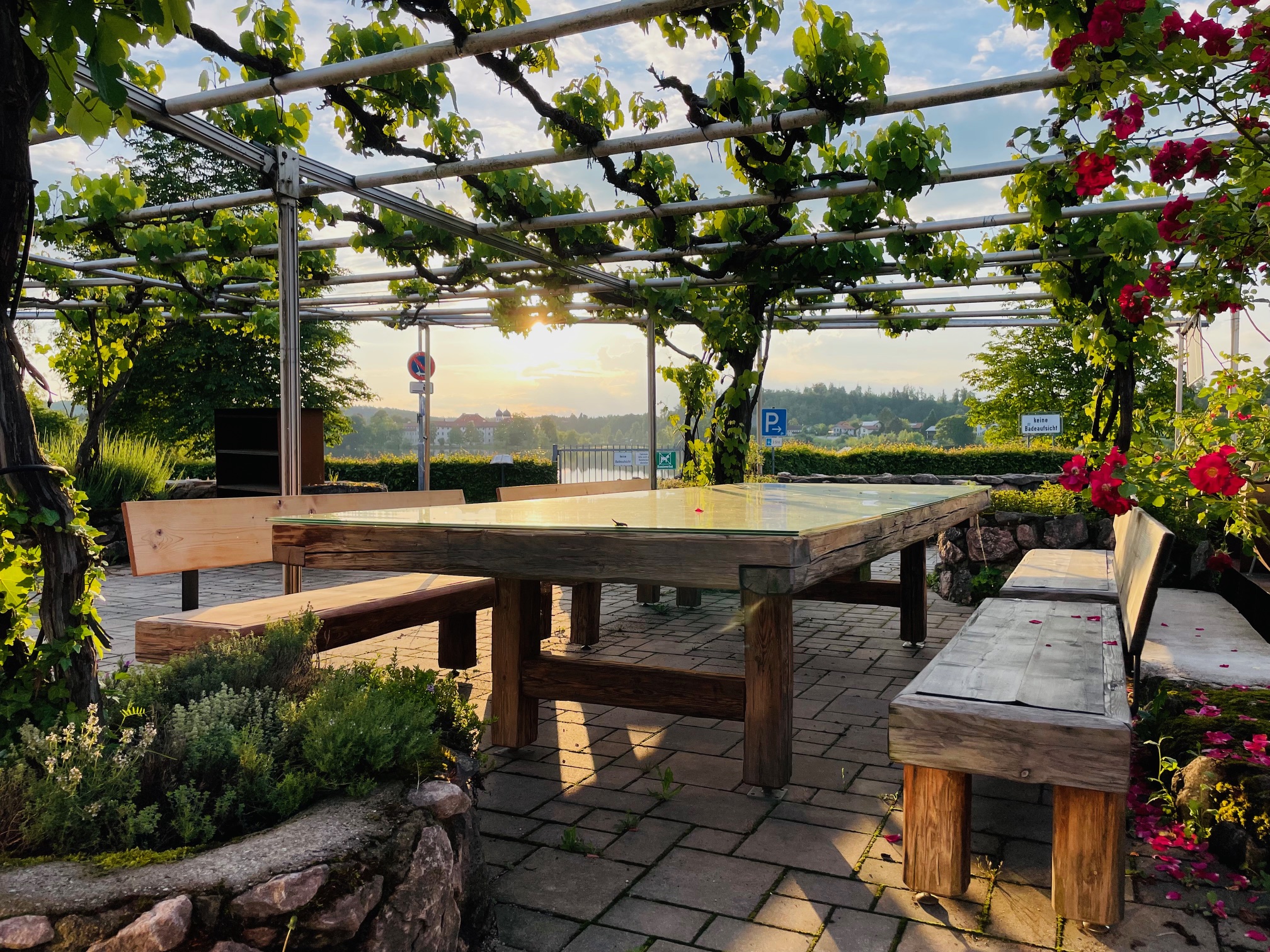 • Essen und Trinken: Biergarten mit Weinreben & Restaurant direkt in der Nähe.