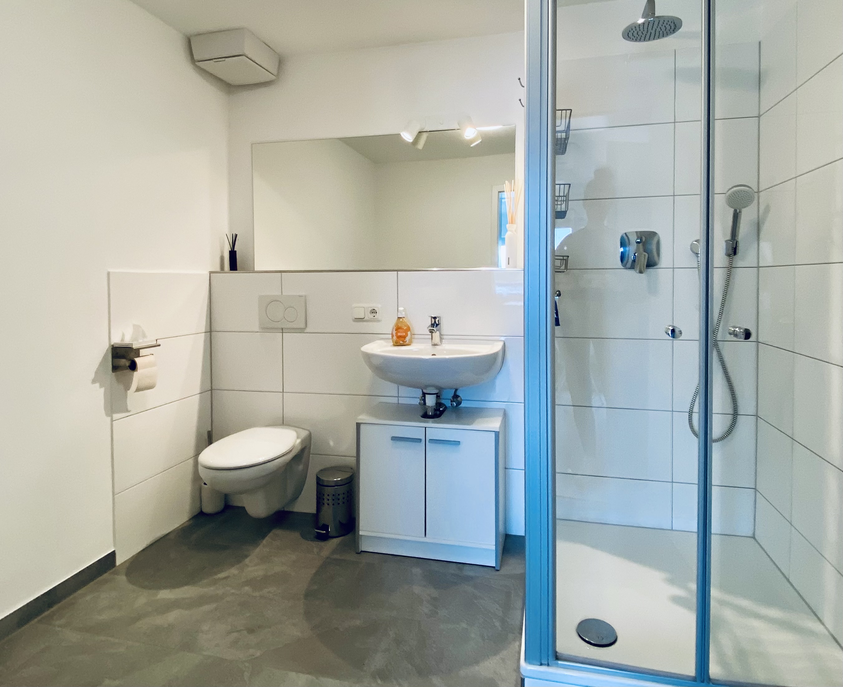 • Badezimmer: große, ebenerdige Dusche; Fußbodenheizung; Fön.