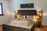 Die Obergeschoss-Suite Kraftort (65 qm) bietet Platz für bis zu 4 Personen. Sie besticht durch ihren herrlichen Blick auf die Natur und die beeindruckende Berglandschaft.