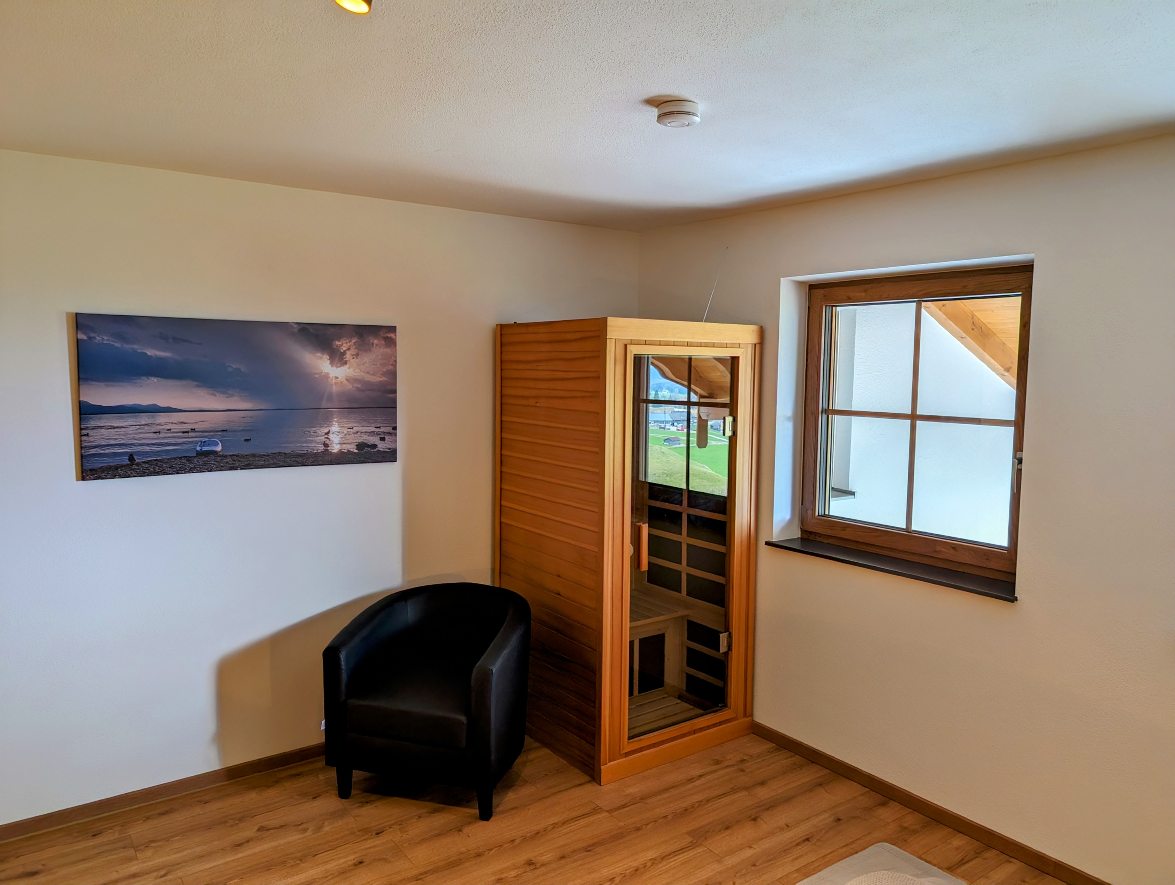 Zur weiteren Ausstattung gehört eine eigene Infrarotkabine für entspannende Momente sowie ein Französischer Balkon, der den Blick auf die umliegende Natur ermöglicht.