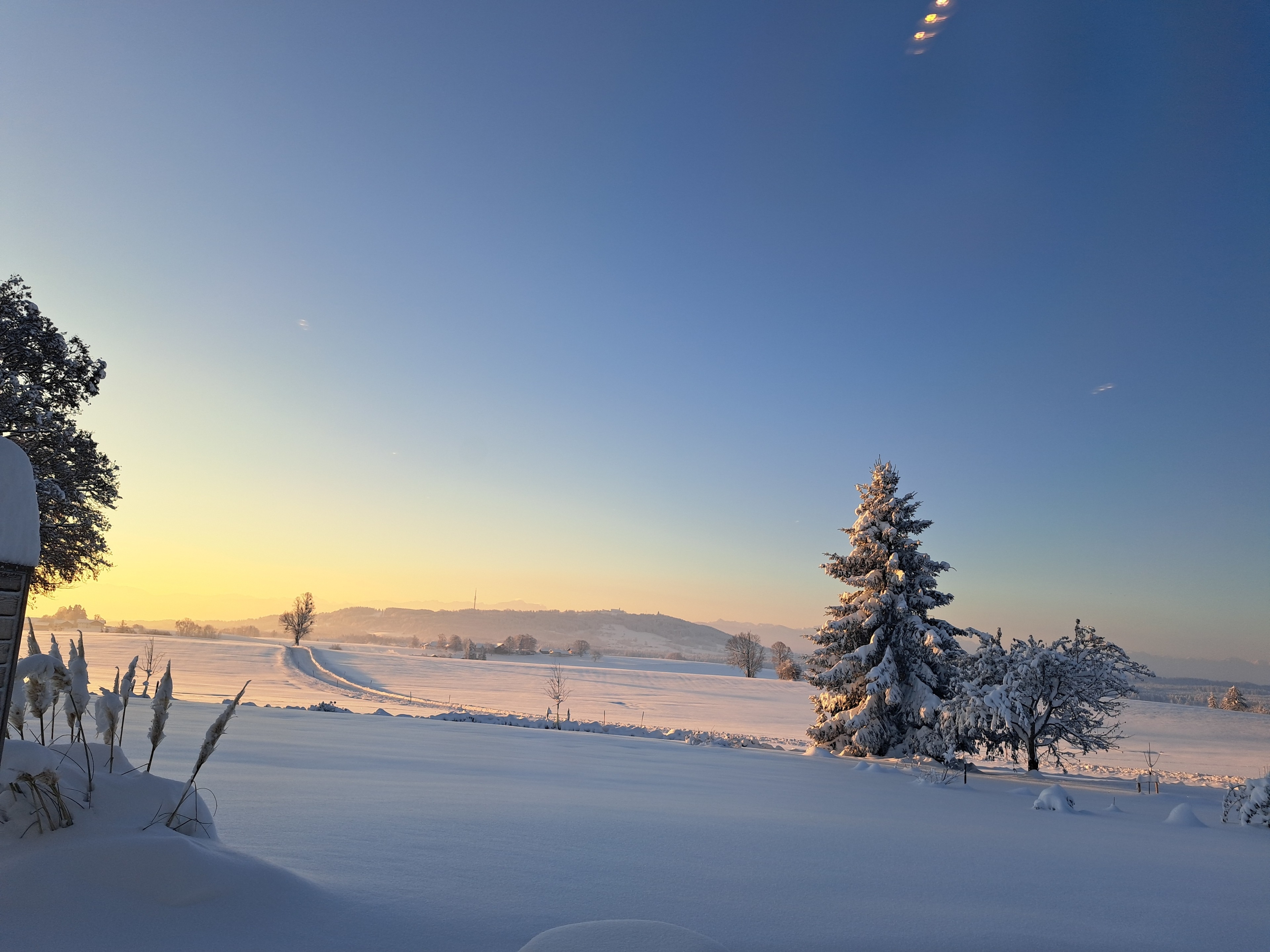 Hier kräht morgens noch der Hahn, während vom gästeeigenen Garten aus die Sonne den Blick auf die Alpen freigibt. Von hier aus gelangt man in weniger als einer Autostunde zu allen bekannten Sehenswürdigkeiten des Bayrischen Oberlandes.